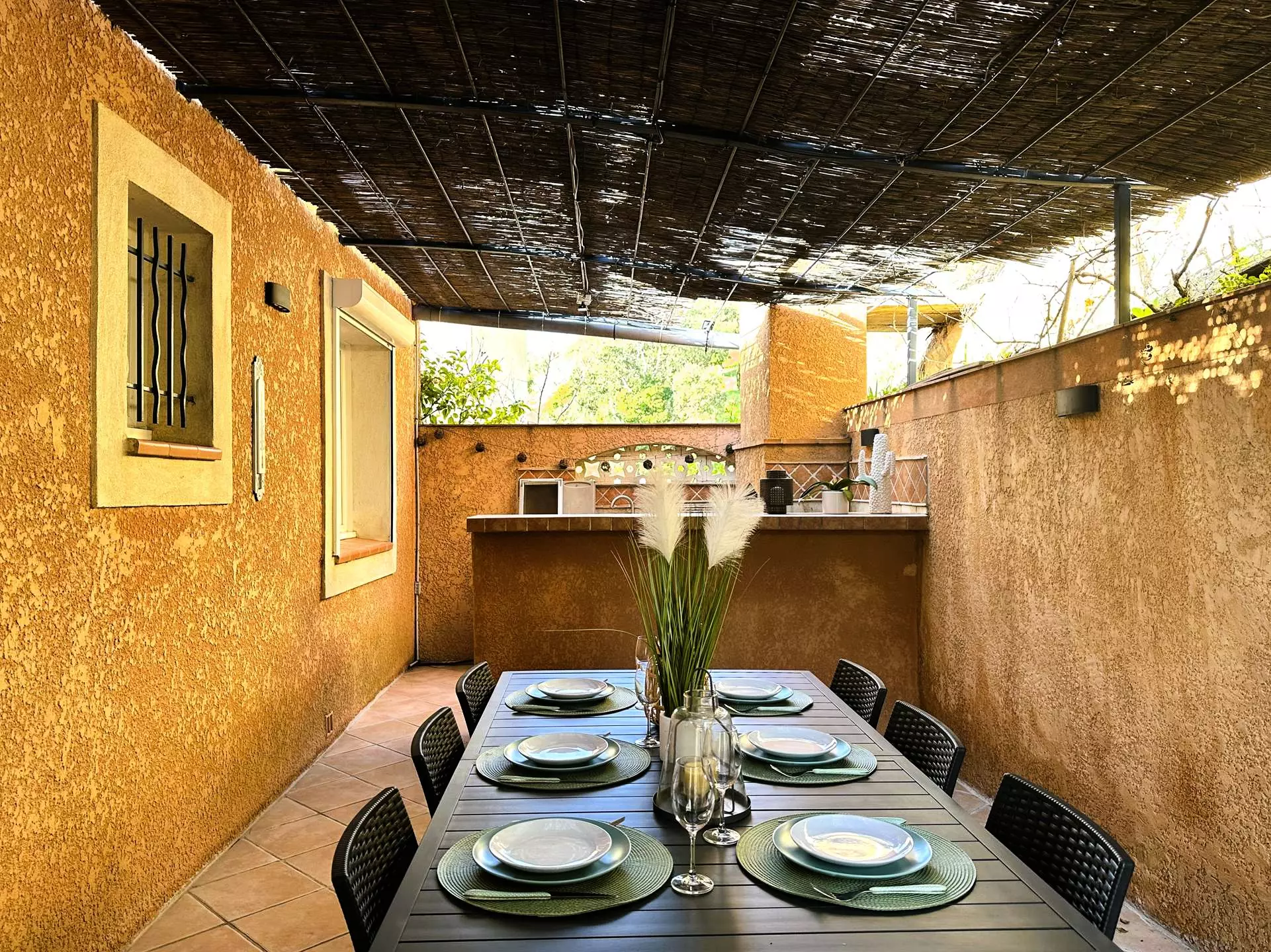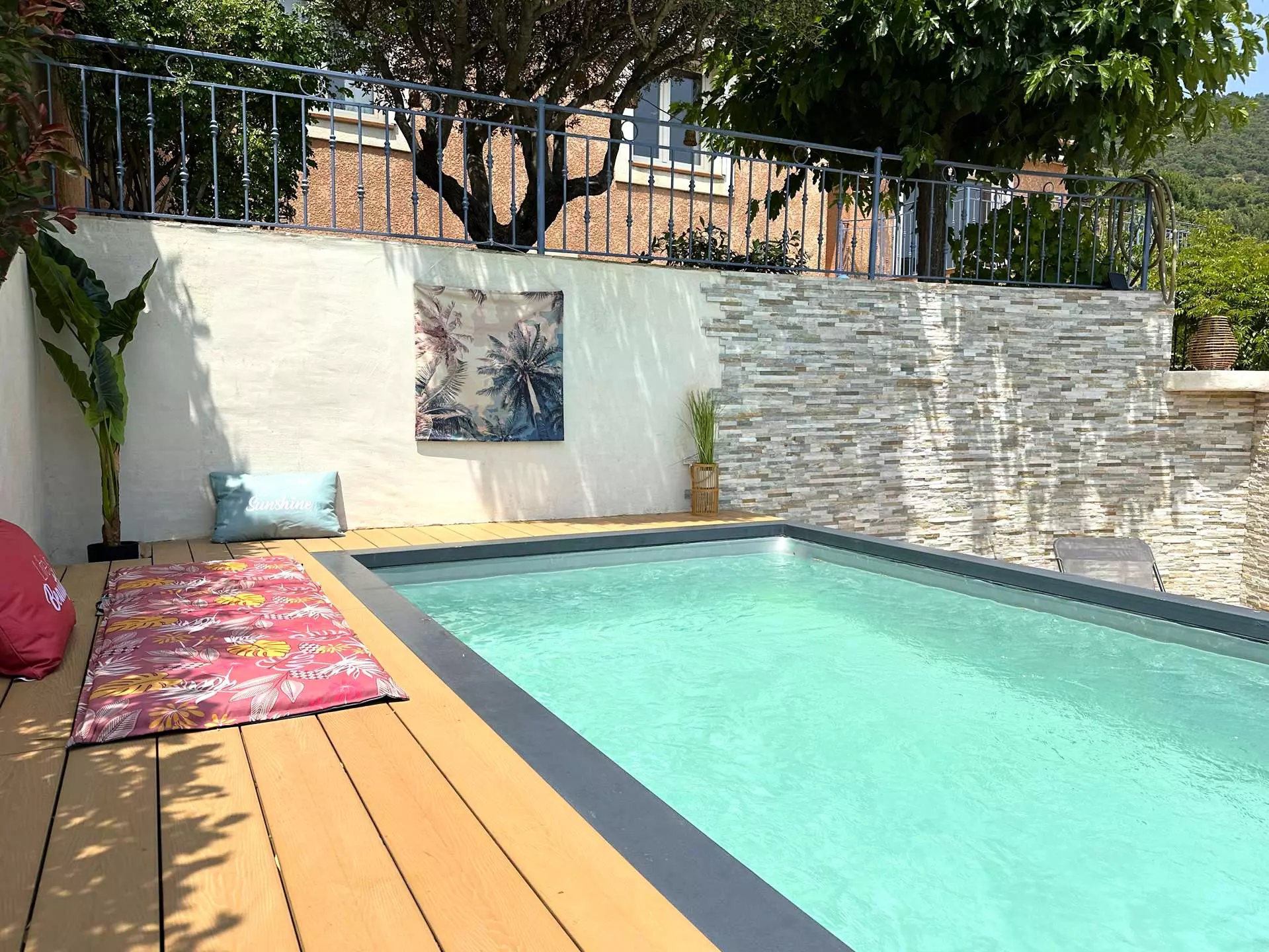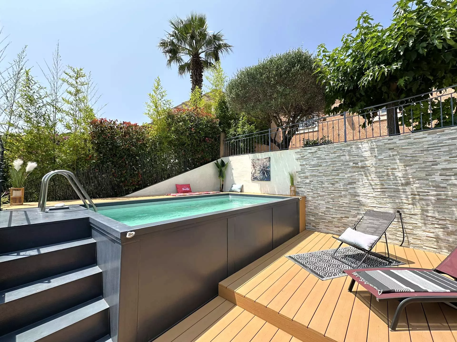 This cozy villa benefits from air conditioning, a terraced garden offering several terraces and a swimming pool (secured by an alarm), the villa, fully fenced, is closed by an automatic gate for your security.