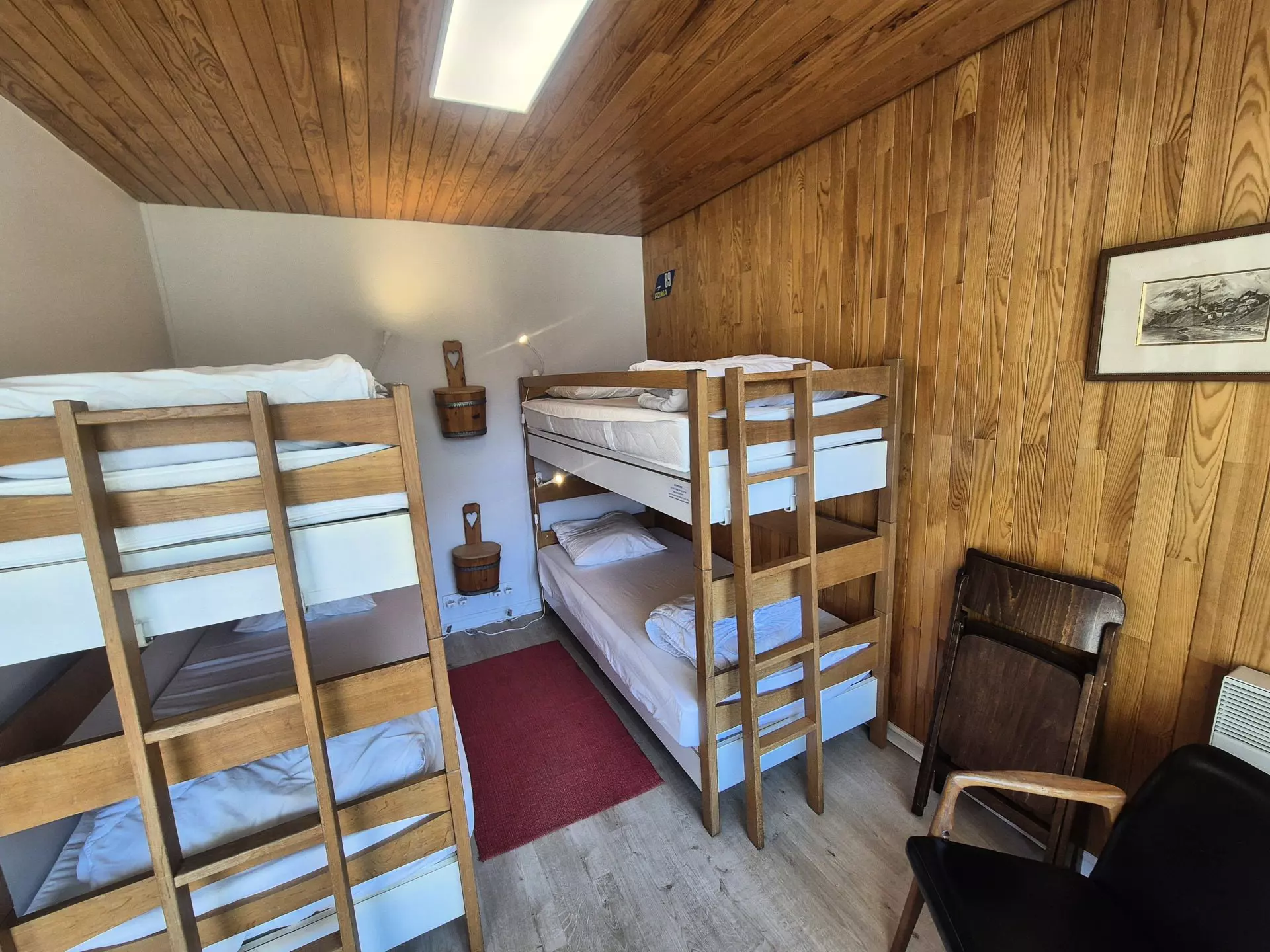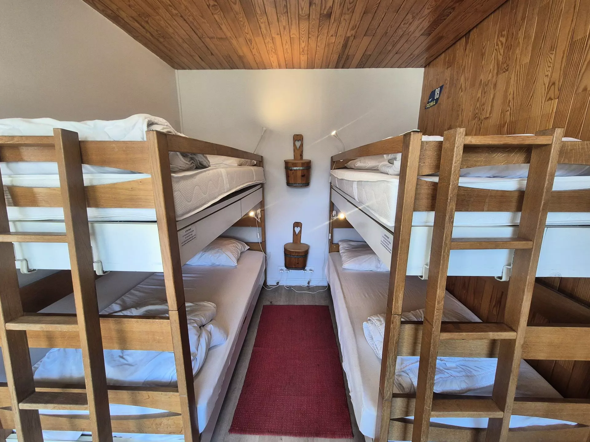 A room separated by a curtain, consisting of 2 bunk beds (4 single beds)