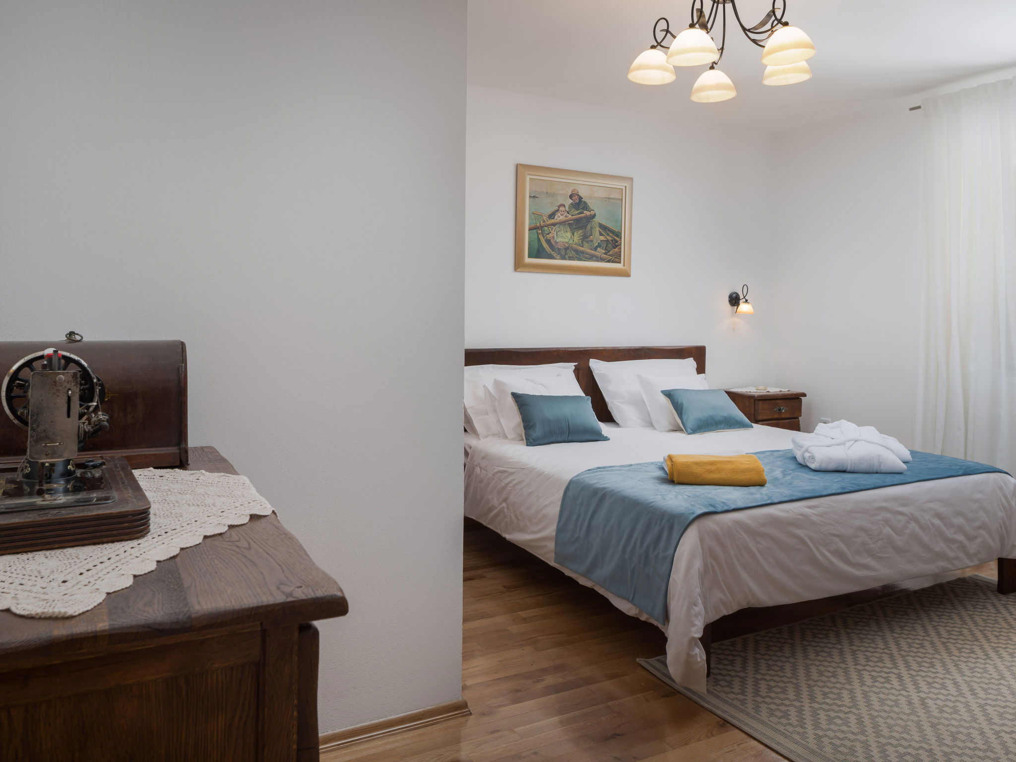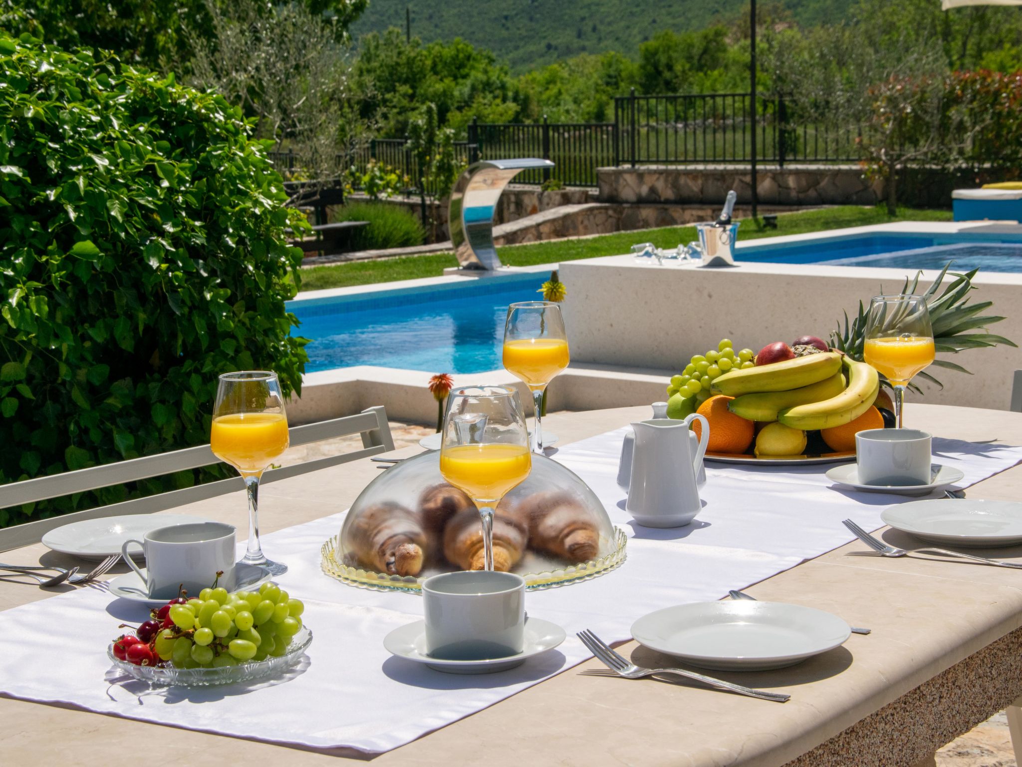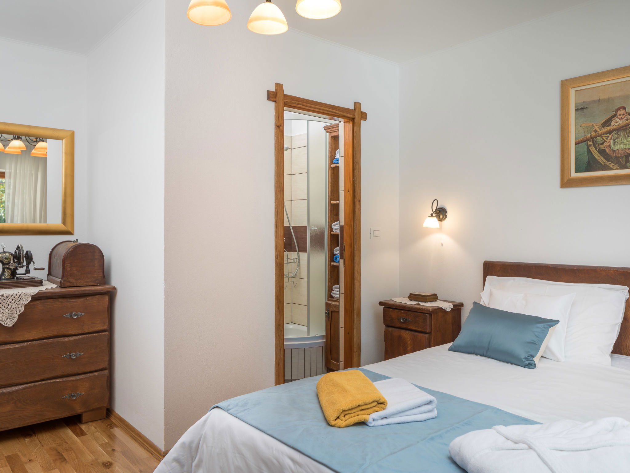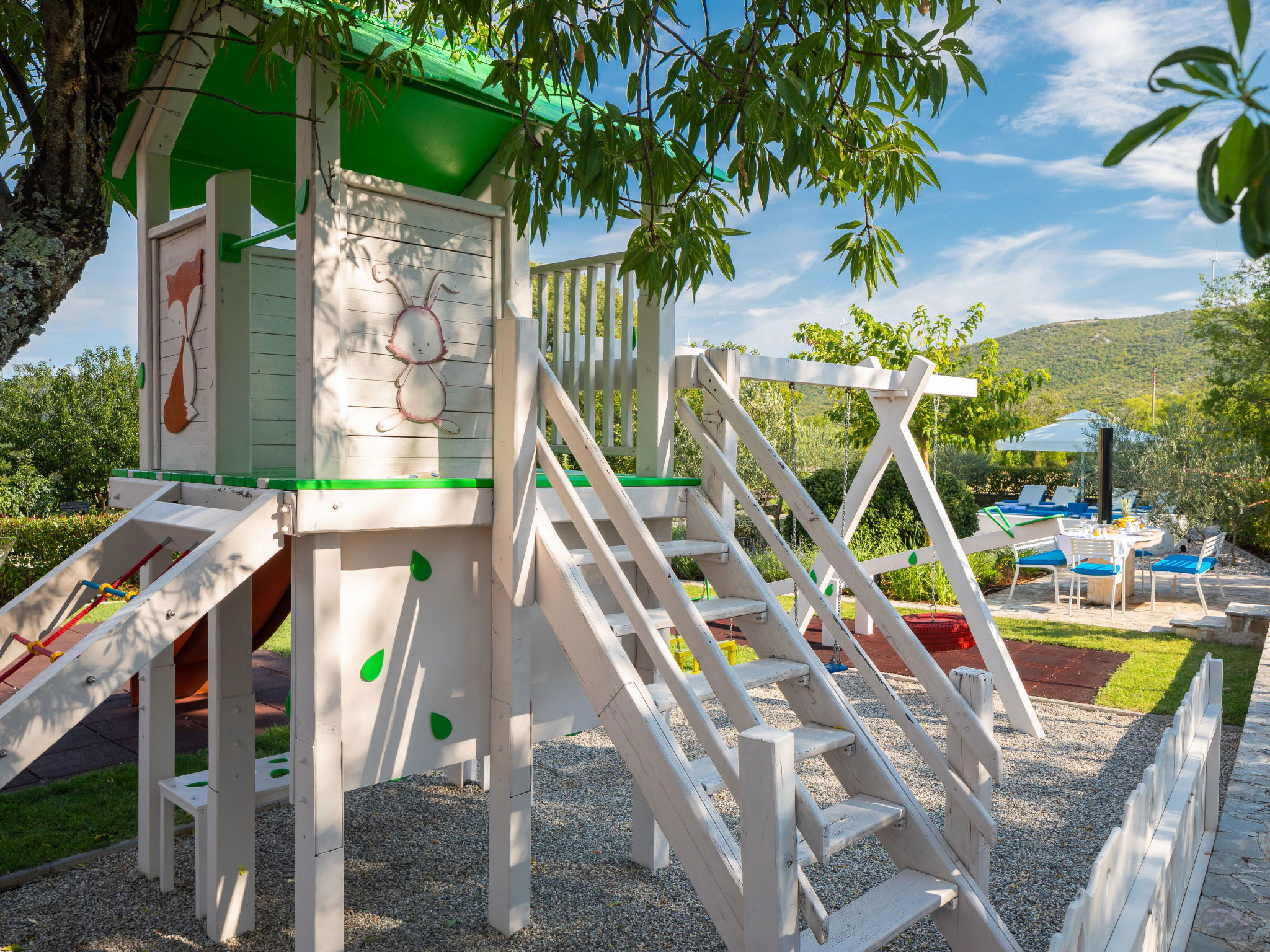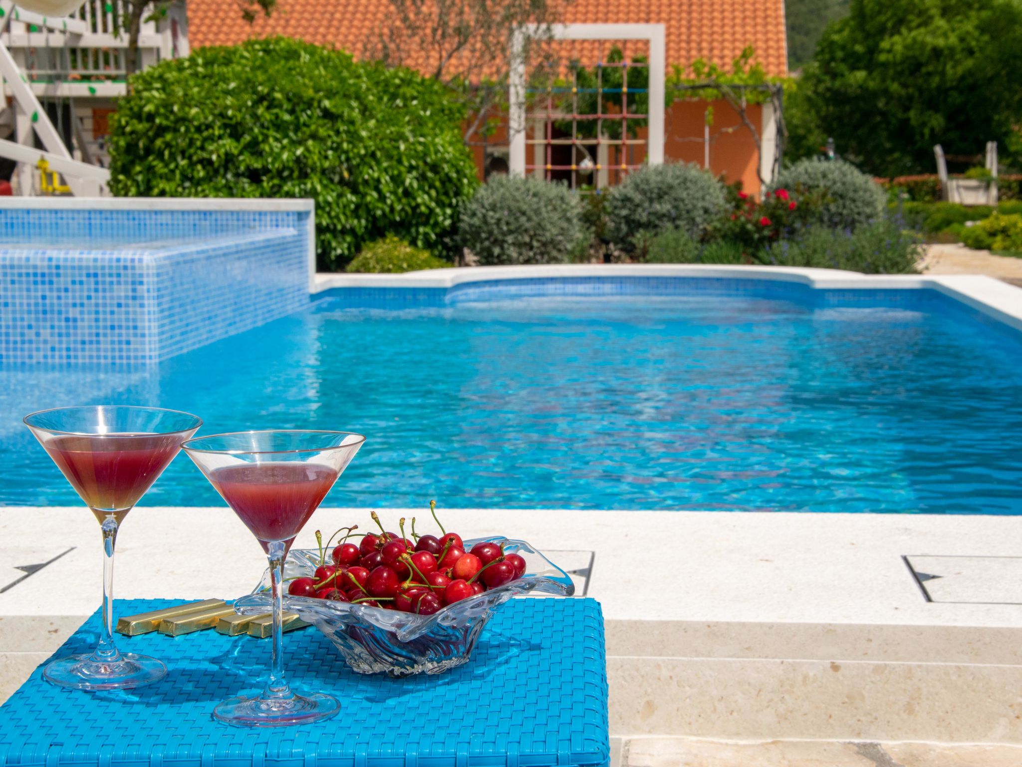 Child friendly single-family house "Villa Dalmatica moderna". In the hamlet Žuvani 13 km from the centre of Trogir, 24 km from the centre of Primošten, in a quiet, sunny position, 13 km from the sea. Private: property 1'600 m2 (fenced), well-kept garden, swimming pool heated (32 m2, depth 35 - 155 cm, seasonal availability: 02.May. - 26.Sep.) with internal staircase and salt-electrolysis pool-cleaning system. Unconventional pool shape. Shower/WC in the pool area, boules, terrace (10 m2), garden furniture, barbecue, children's playground (slide, swing, sandbox). In the house: internet access, sauna, central heating system, washing machine, tumble dryer. Parking (for 3 cars) at the house on the premises. Shop 13 km, restaurant 13 km, bus stop 750 m, pebble beach 13 km, public bathing area 13 km. Swimming pool with hydromassage and waterfall.