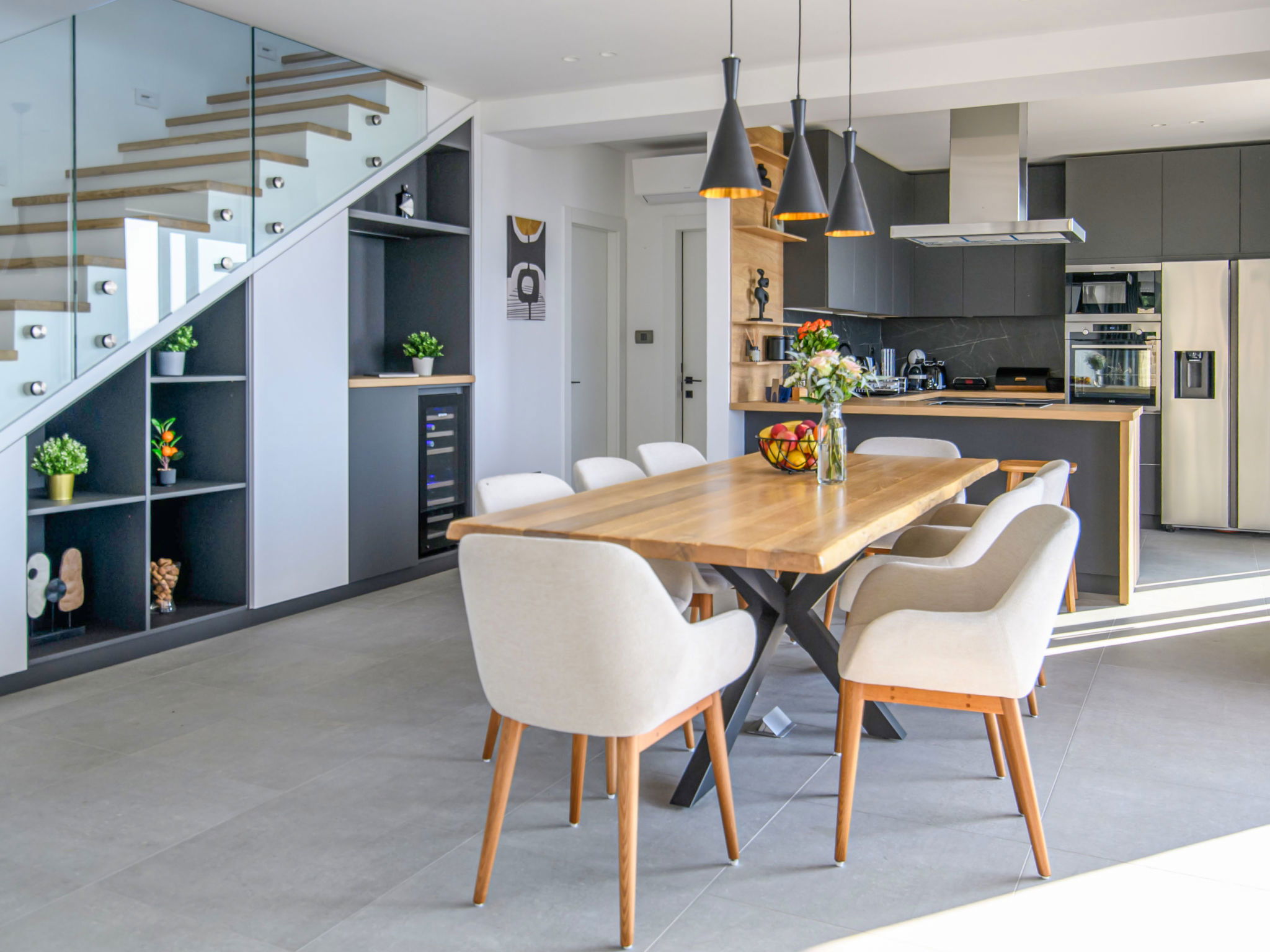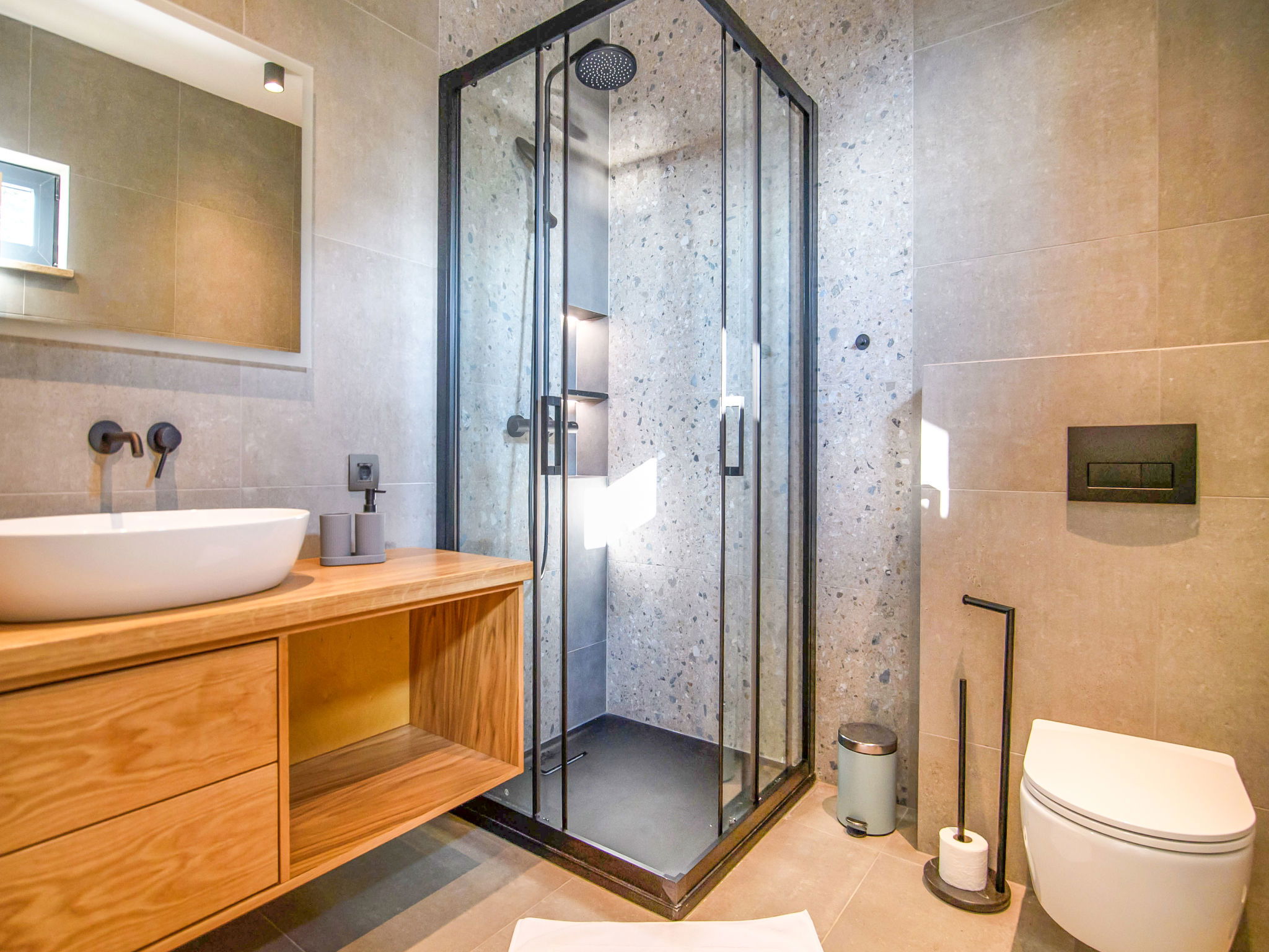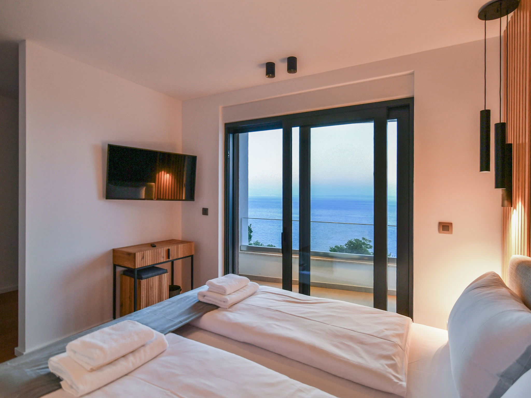 Medveja 3 km from Lovran: Very modern villa "Marmonte", 2 storeys, built in 2025. In a quiet, sunny, elevated position, 950 m from the sea, 950 m from the beach. Private: property 525 m2, swimming pool angular (7 x 3 m, depth 150 cm, seasonal availability: 01.May. - 30.Oct.) with internal staircase. Outdoor shower, terrace (50 m2), garden furniture, barbecue. In the house: internet access, central heating system, air conditioning, washing machine, tumble dryer. Steep motor access to the house. Parking at the house on the premises. Shop 950 m, supermarket 4 km, restaurant 150 m, bar, café, bus stop 950 m, pebble beach "Medveja" 950 m, shingle beach "Medveja" 950 m. Sports harbour 950 m.
