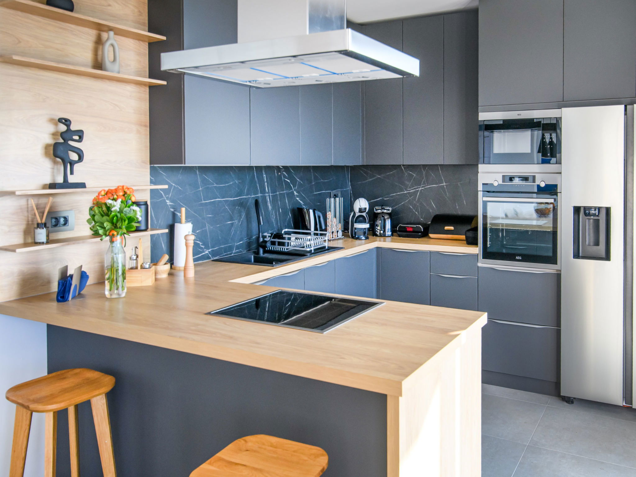 4-room villa 200 m2 on 2 levels, south facing position. Beautiful and modern furnishings: living/dining room with panoramic window with 1 double sofabed (140 cm, length 200 cm), satellite TV (flat screen), air conditioning. Exit to the terrace, to the swimming pool. Open kitchen (oven, dishwasher, 4 induction hot plates, toaster, kettle, freezer, electric coffee machine). Exit to the terrace. Sep. WC. Upper floor: 1 room with 1 french bed (180 cm, length 200 cm), shower/WC and satellite TV (flat screen), air conditioning. Exit to the balcony. 1 room with panoramic window with 1 french bed (180 cm, length 200 cm), shower/WC and satellite TV (flat screen), air conditioning. 1 room with panoramic window with 1 french bed (180 cm, length 200 cm), shower/WC and satellite TV (flat screen), air conditioning. Floor heating, forced-air heating. Balcony 10 m2, large terrace 50 m2 partly roofed terrace 30 m2. Terrace furniture, barbecue (portable), deck chairs (6). Marvellous panoramic view of the sea and the resort. Facilities: hair dryer. Internet (WiFi, free). Please note: non-smoking house. Fire extinguisher.
