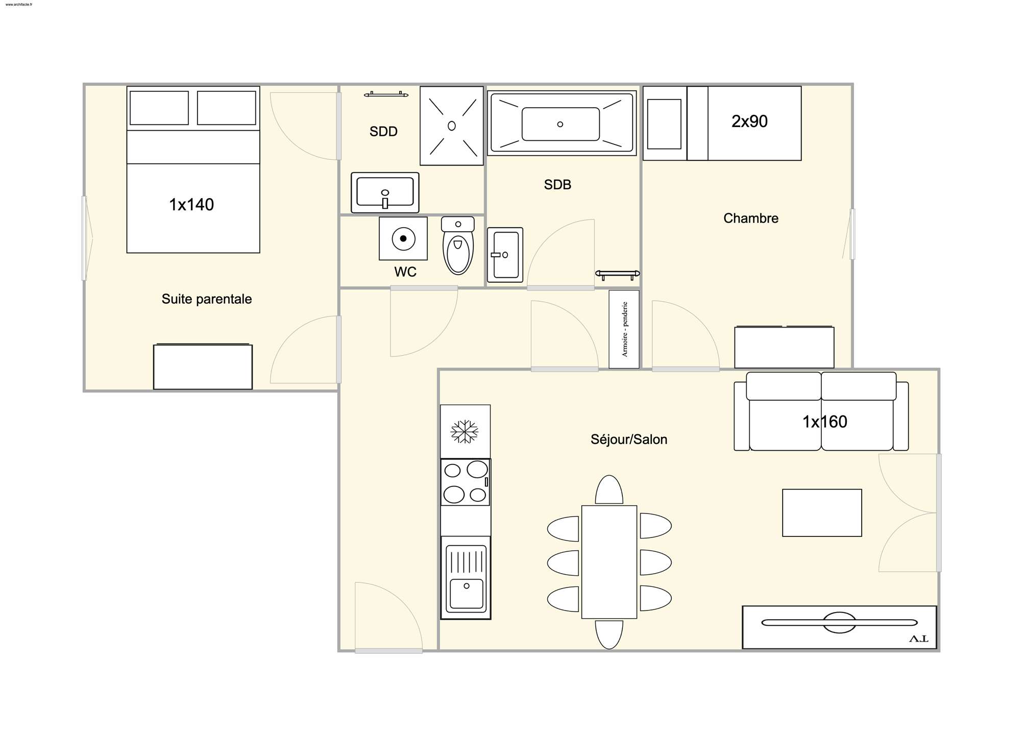The apartment has a living room with a 160cm sofa bed, a master suite with 160cm bed and en-suite shower room, a bedroom with two single beds, a bathroom and separate WC.