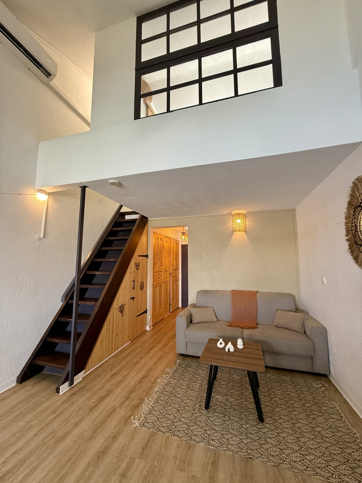 An enchanting apartment nestled in the heart of Saint-François, where comfort and elegance meet. With its magnificent high ceilings, this two-level apartment welcomes you into a breezy, light-filled atmosphere.