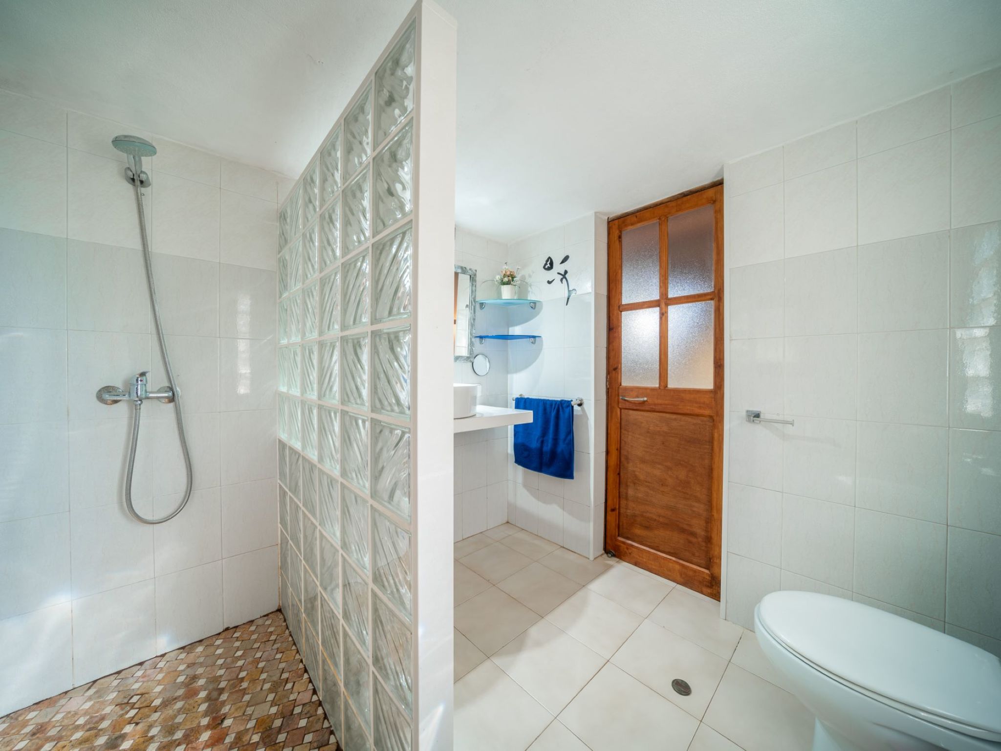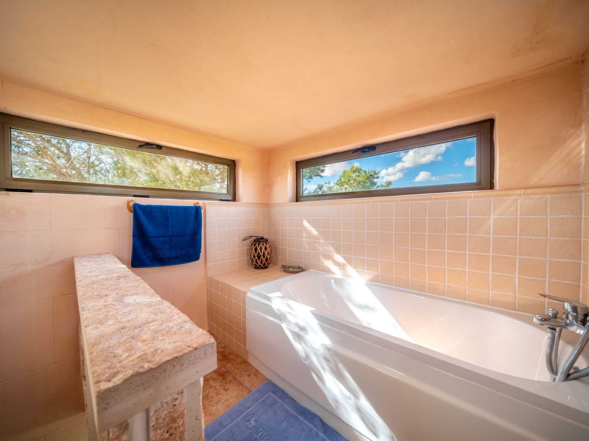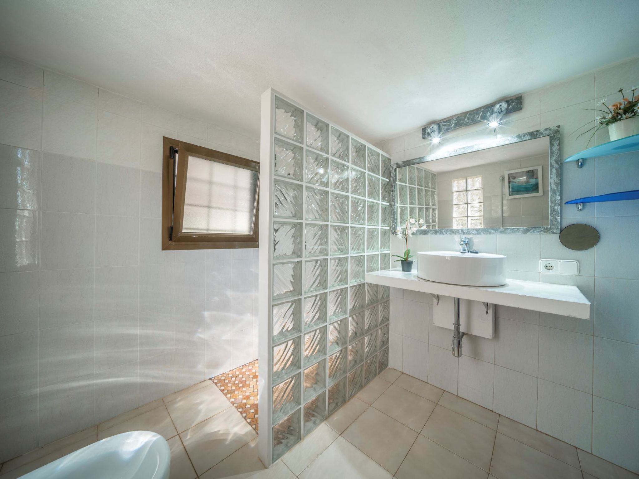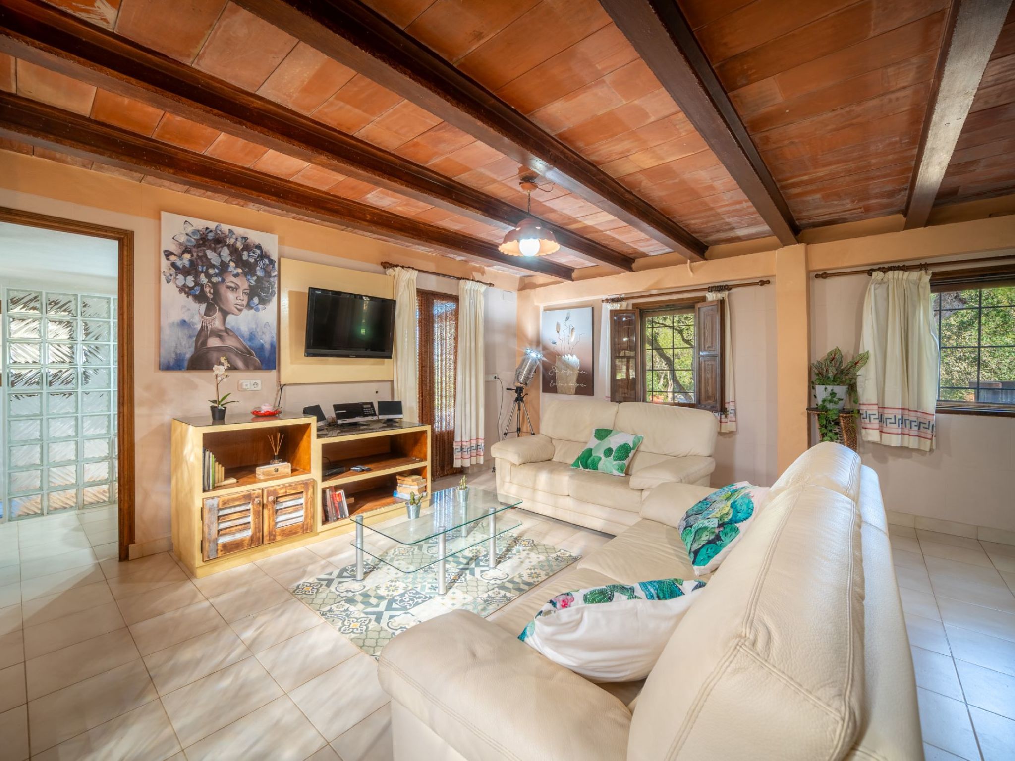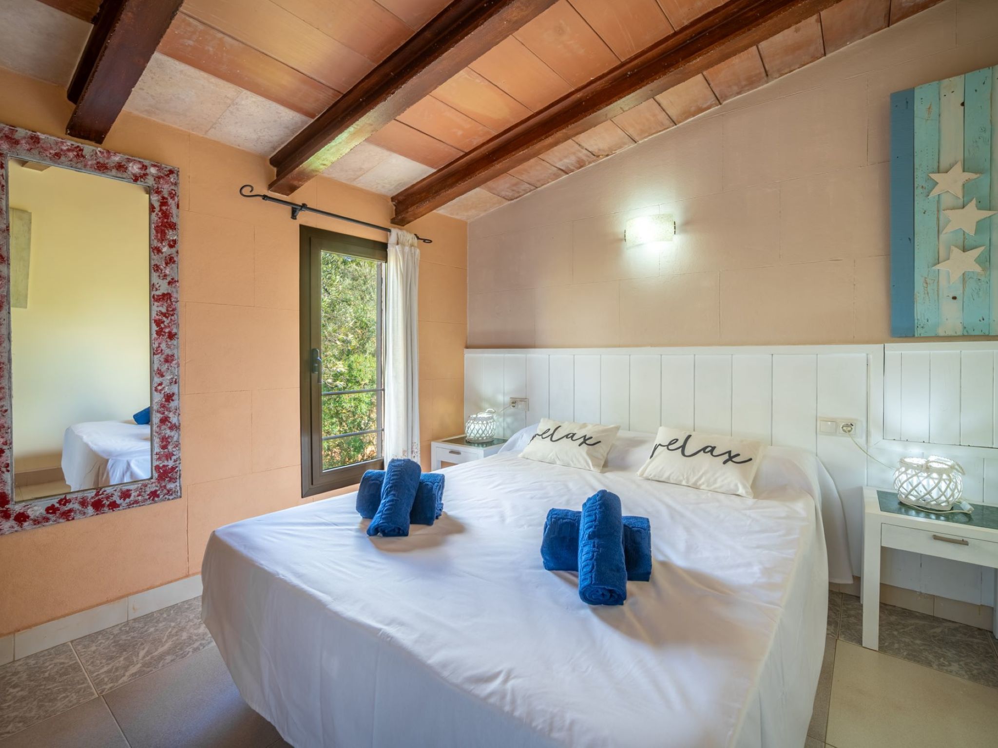 "Sa Torreta", 3-room house 120 m2. Partly with sloping ceilings, simple and rustic furnishings: living/dining room with open-hearth fireplace. Exit to the patio. Small kitchen (dishwasher, 4 ceramic glass hob hotplates, toaster, kettle, microwave, electric coffee machine). Exit to the patio. Shower/WC. Upper floor: 1 double bedroom with 2 beds (90 cm, length 190 cm), fan. 1 double bedroom with 1 french bed (1 x 150 cm, length 190 cm), fan. Bath/WC. Natural stone floors. Patio. Terrace furniture, balcony furniture, barbecue, deck chairs, covered balcony. View of the mountains. Facilities: washing machine, iron, children's high chair, baby cot for up to 2 year olds, hair dryer. Internet (WiFi, free). Parking at the house. ETV/5186 // Reg. Nr.: ESFCTU00000700800038425300000000000000000000ETV/51868