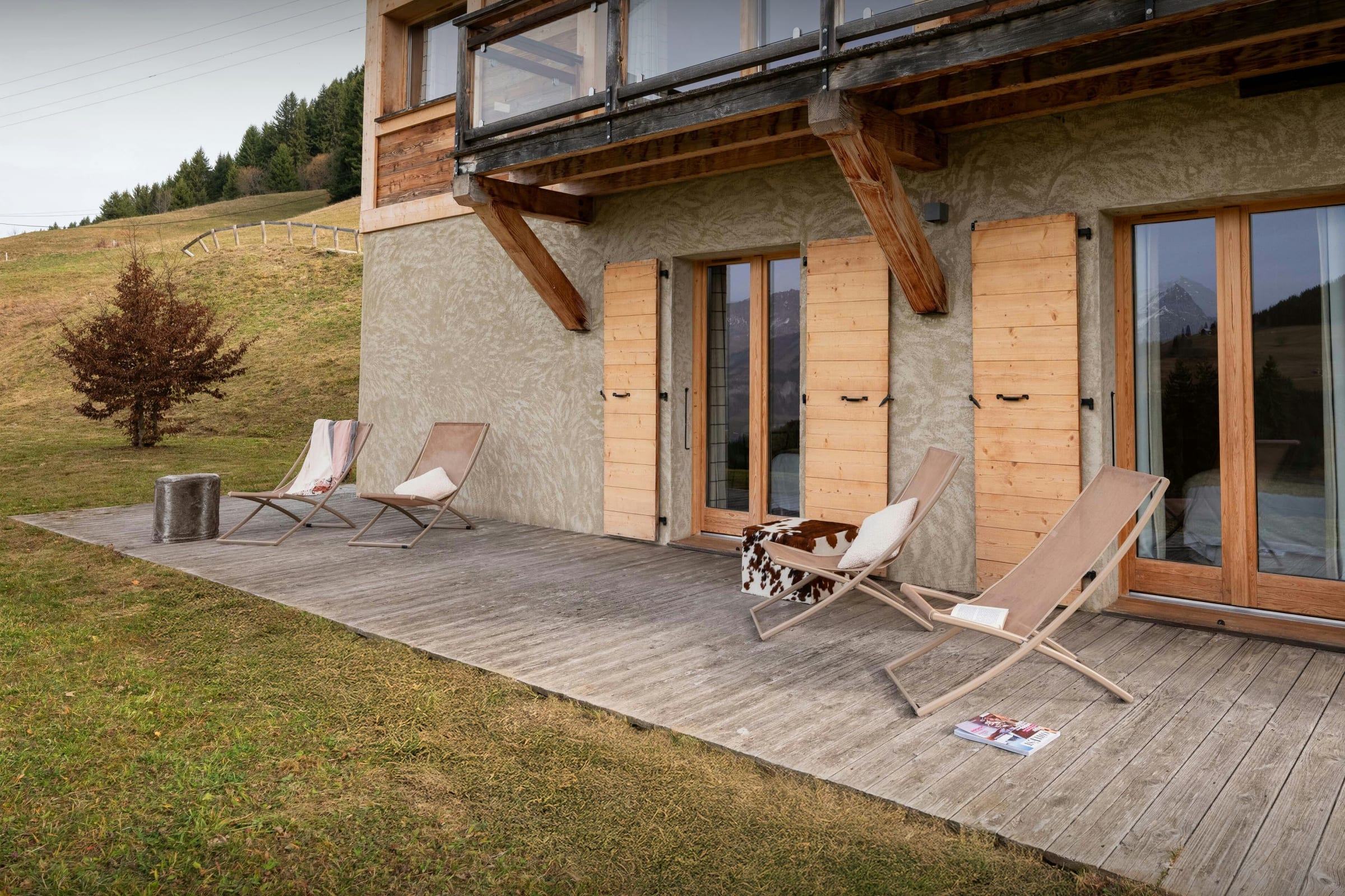 A second terrace on the lower floor offers unobstructed views of the mountains, one of the highlights of Chalet Monte Cinto.