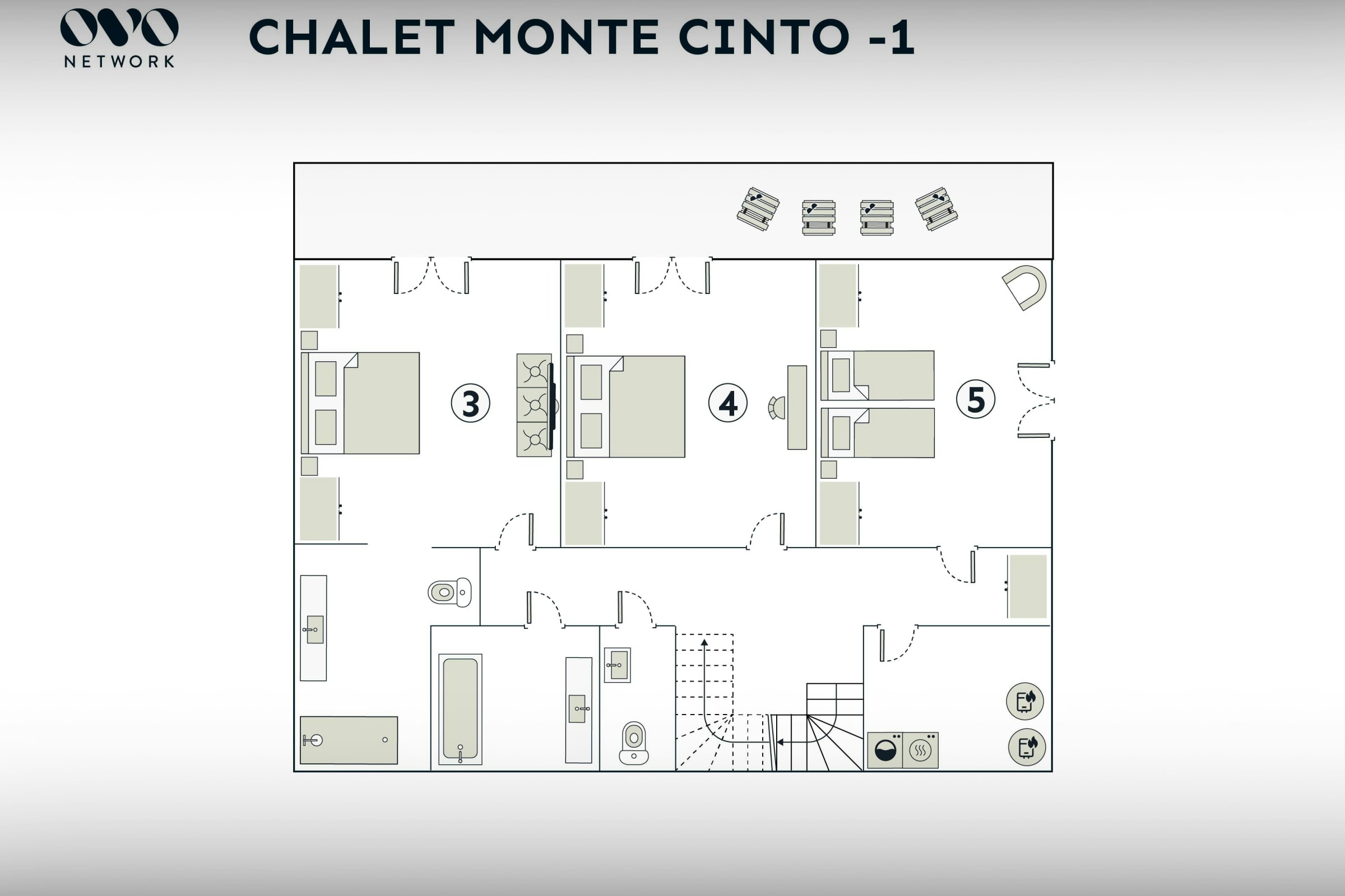 Chalet Monte Cinto allows you to discover a little-known region of the Alps at your own pace. With five bedrooms and four bathrooms spread over three floors, it can accommodate up to 10 guests.