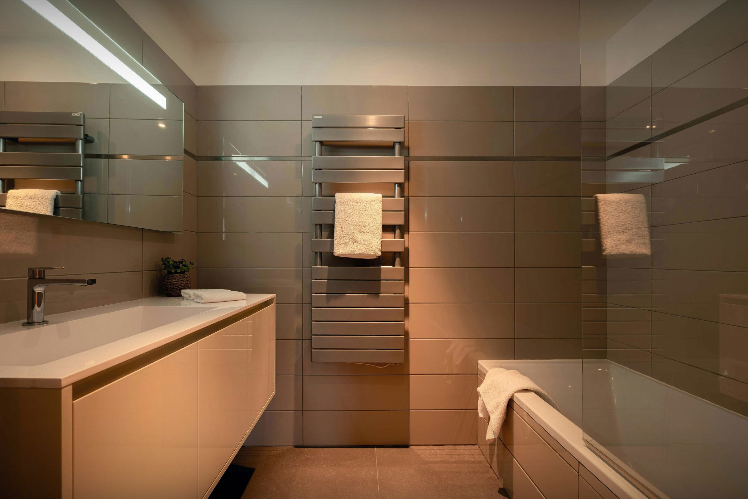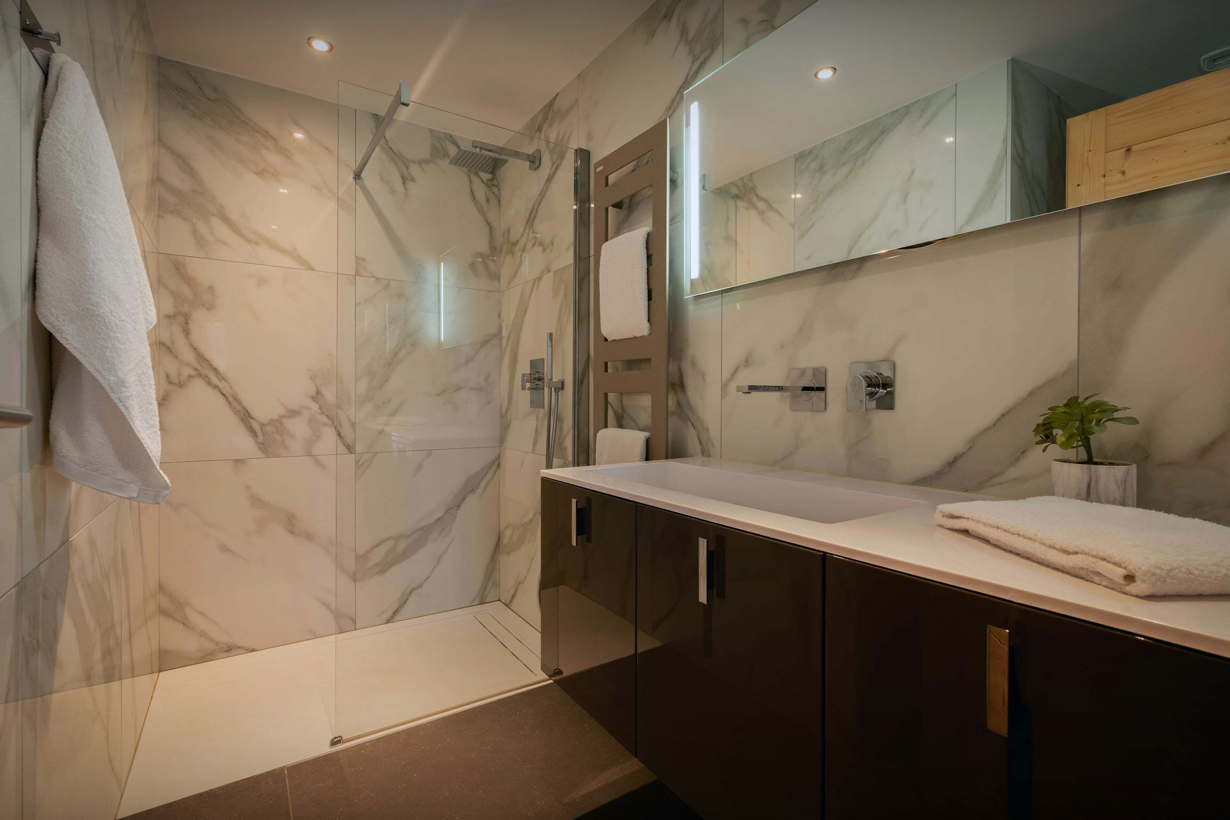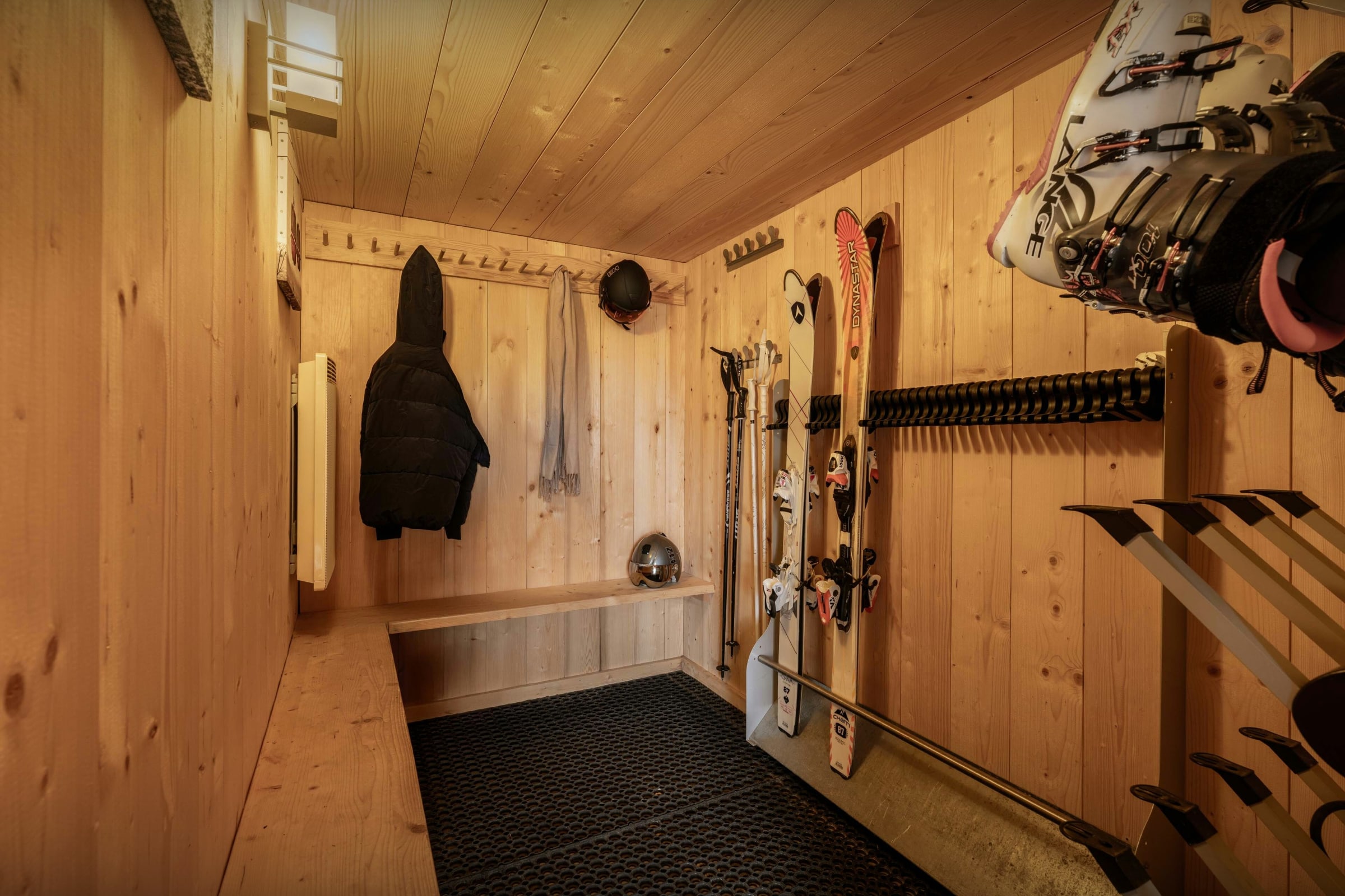 On the practical side, there is a laundry room with a washing machine and tumble dryer, a garage for one car, and a ski room with heated boot dryers.