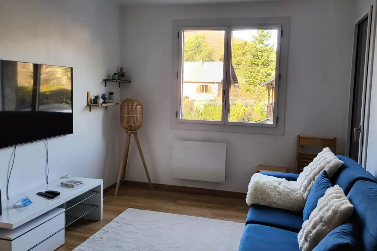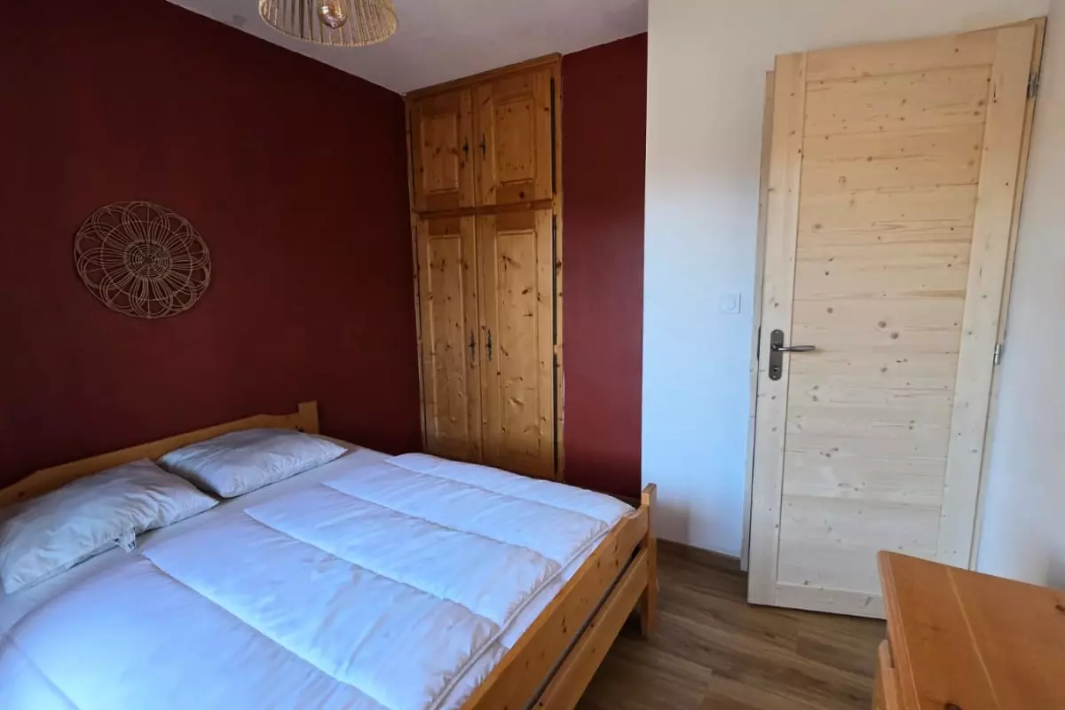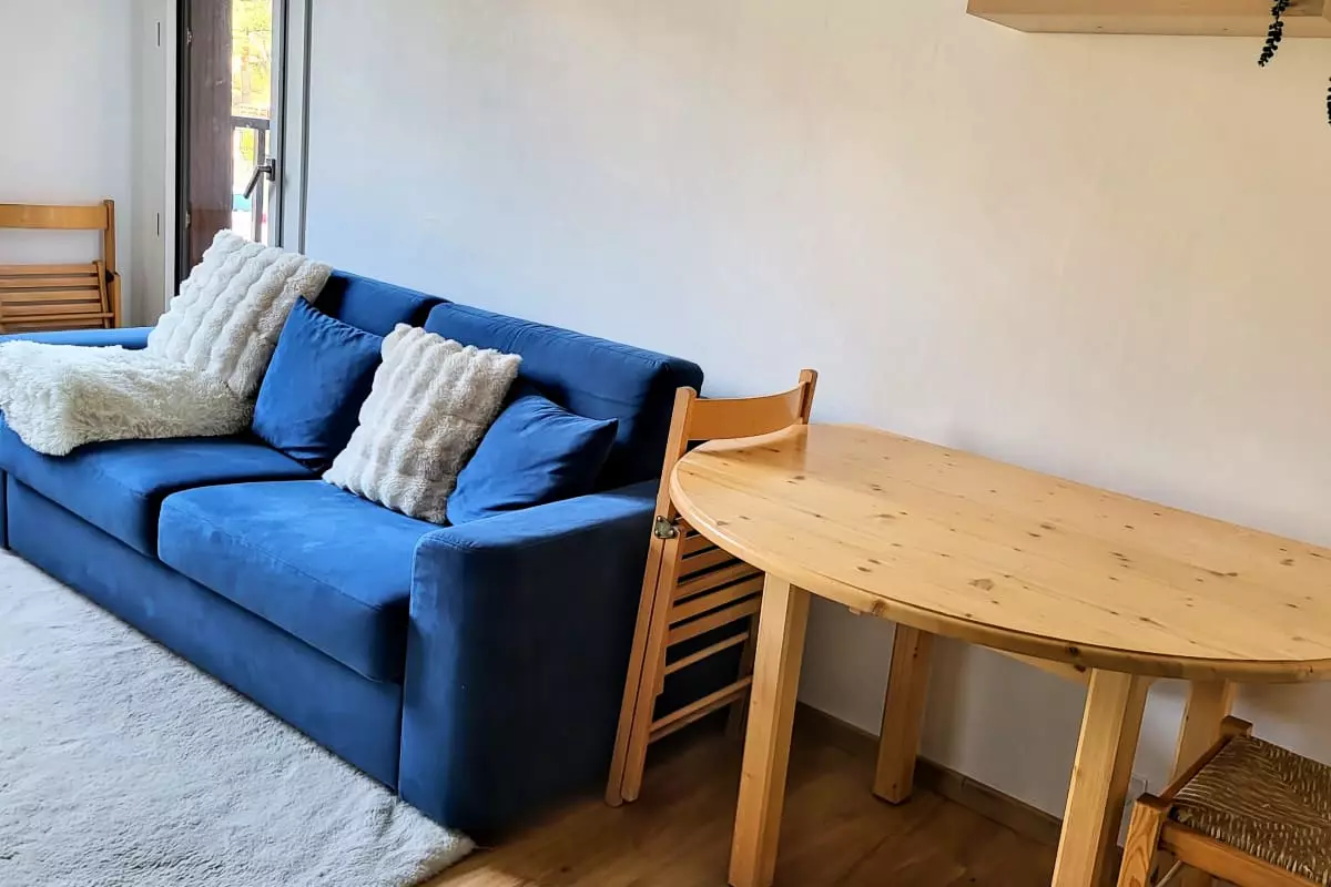 It includes a comfortable bedroom with a double bed (140 x 190 cm), as well as a welcoming living room with a sofa bed (140 x 190 cm), perfect for hosting friends or family. The kitchen is fully equipped to meet all your culinary needs, and the functional bathroom adds to the practicality of this space. You can also enjoy a dining area, as well as a sunny balcony with views over the valley, ideal for fresh air and relaxation.