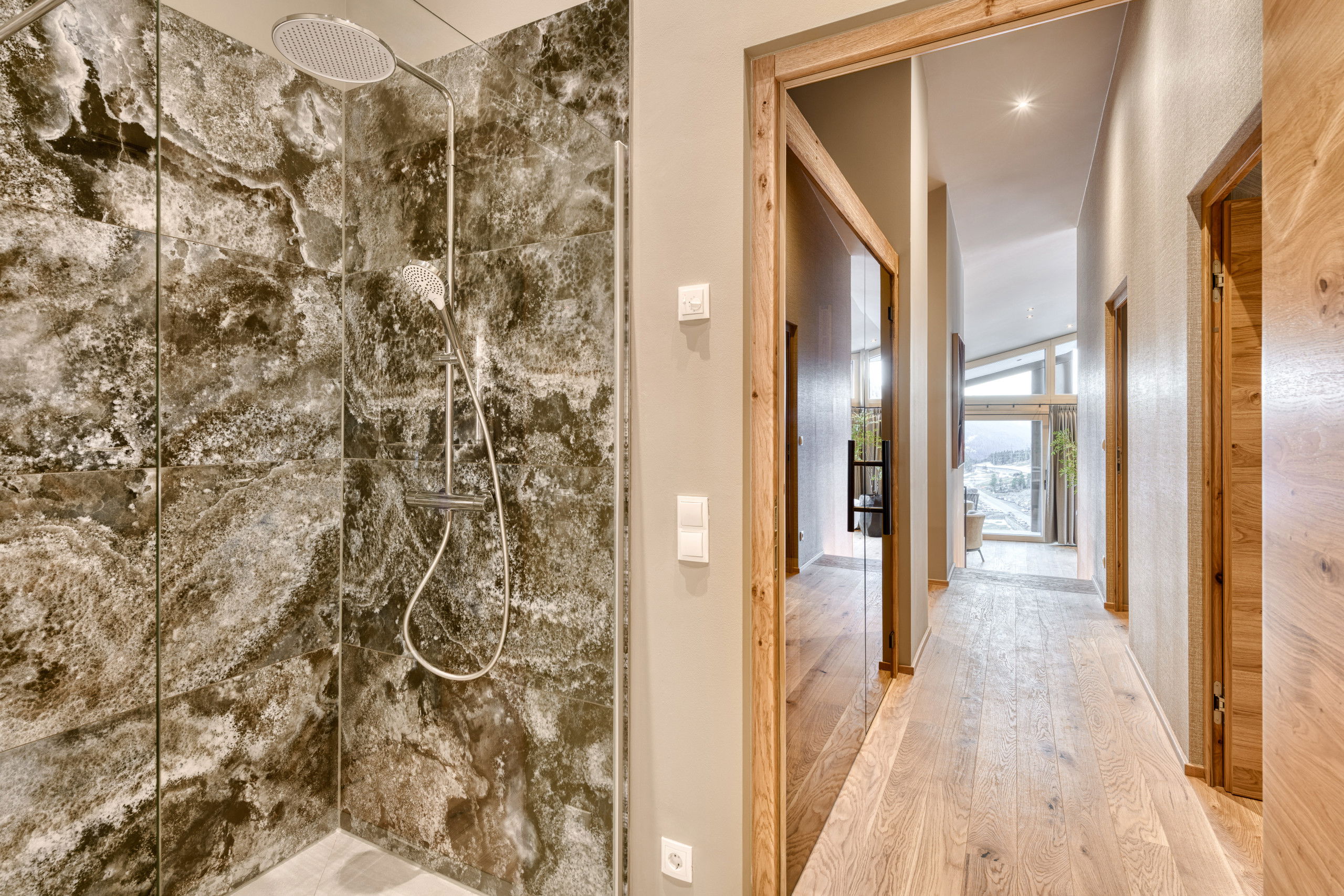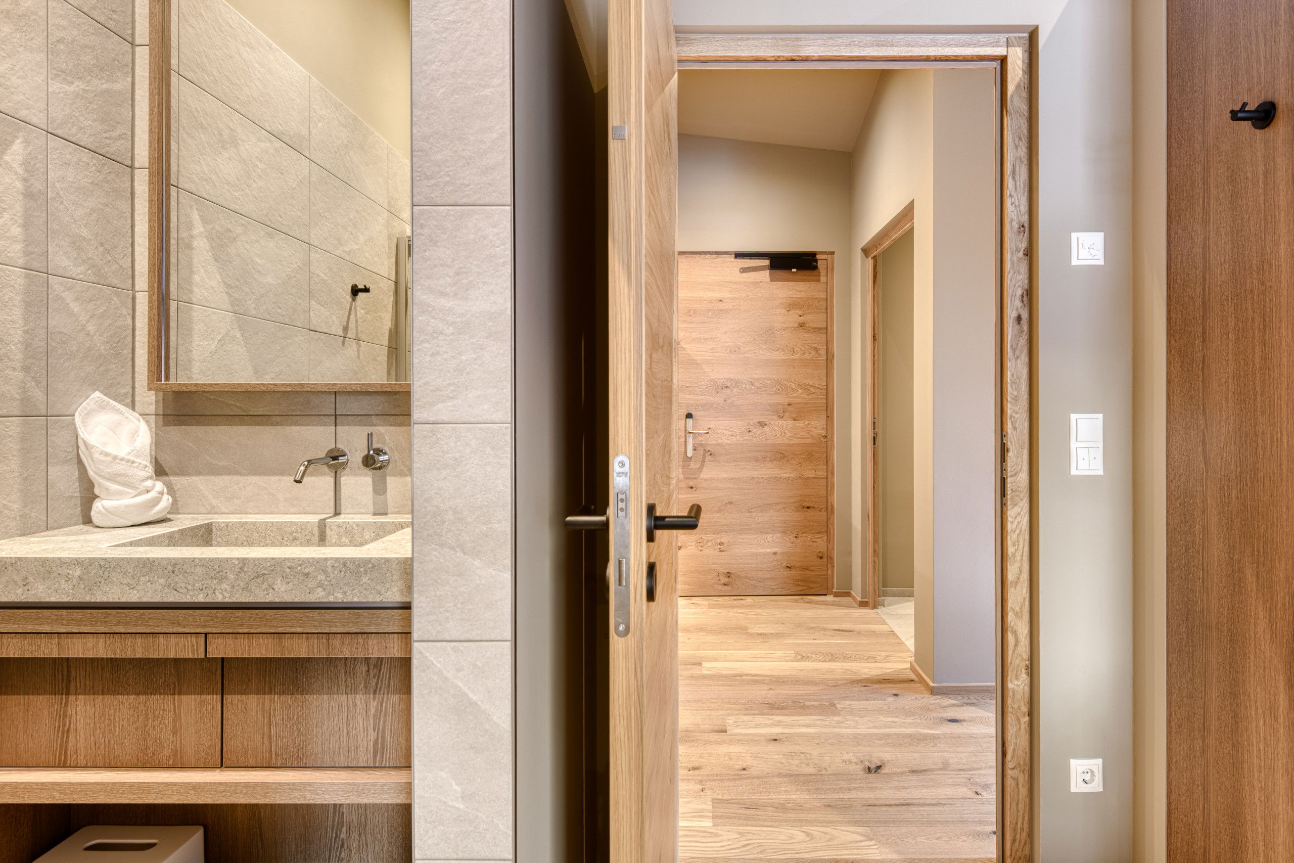 On 87 m², two bedrooms and two bathrooms await you, designed with natural materials and warm, subtle tones. The open living area with high ceilings, a fireplace, and a sofa bed creates a sense of spaciousness and comfort. The fully equipped kitchen invites you to cook and enjoy together, while your private sauna offers relaxation after an active day. An elevator brings you conveniently to the penthouse floor, from which you can access your suite. From the balcony, you can take in a truly unmatched view across the valley and the peaks of the Rätikon.