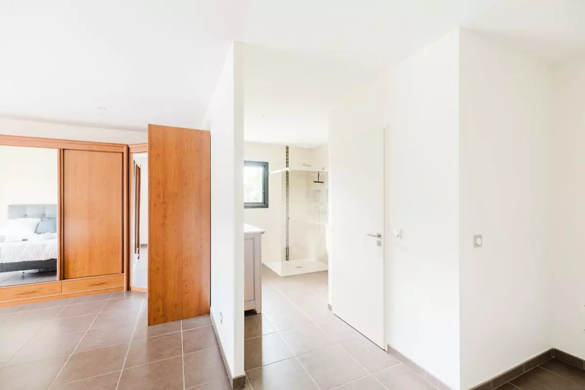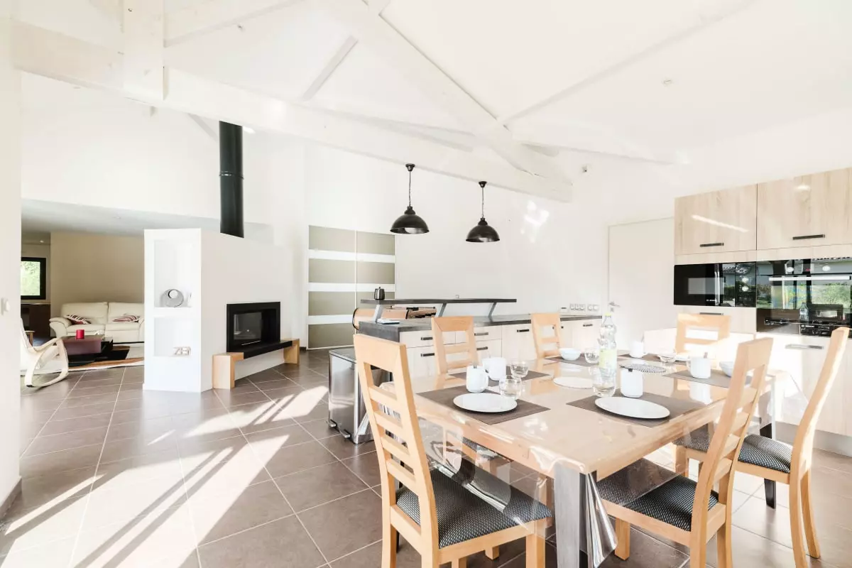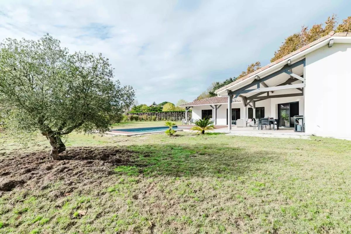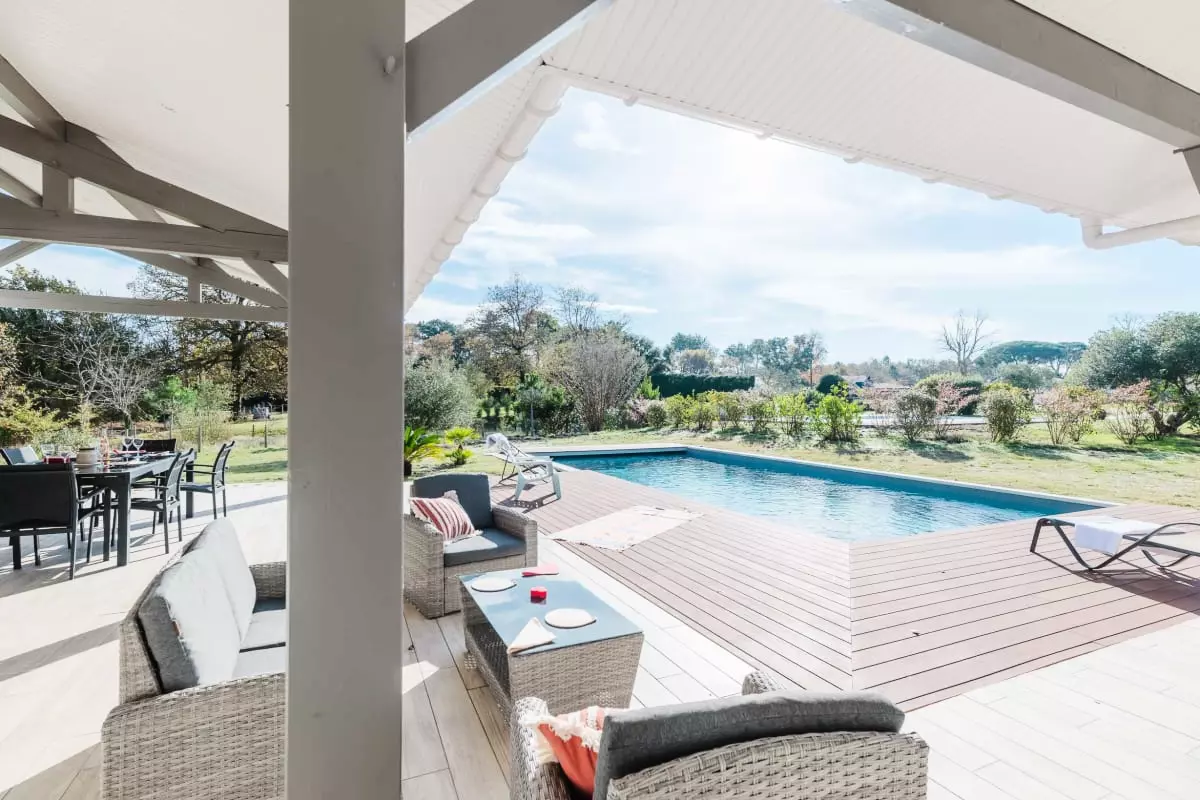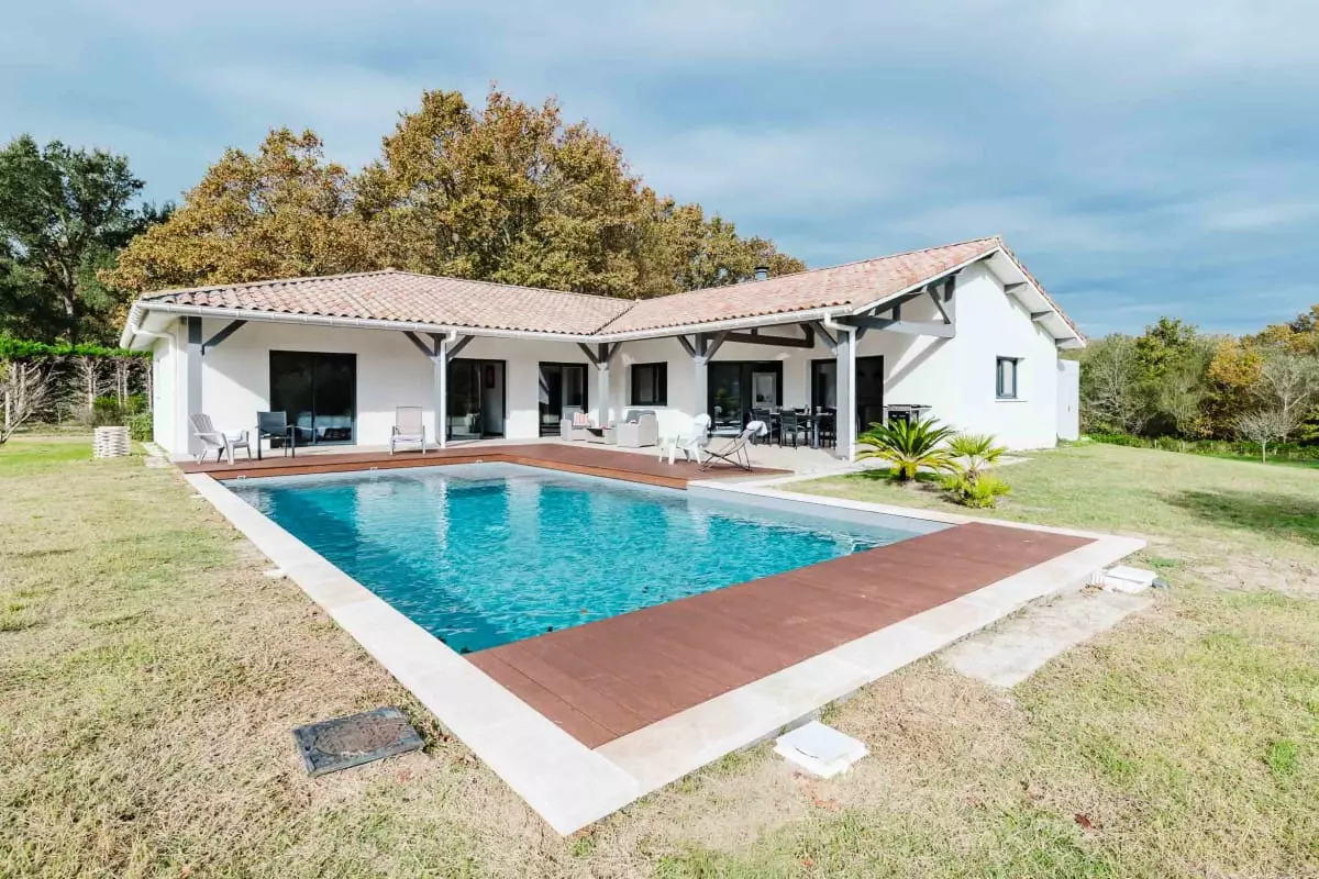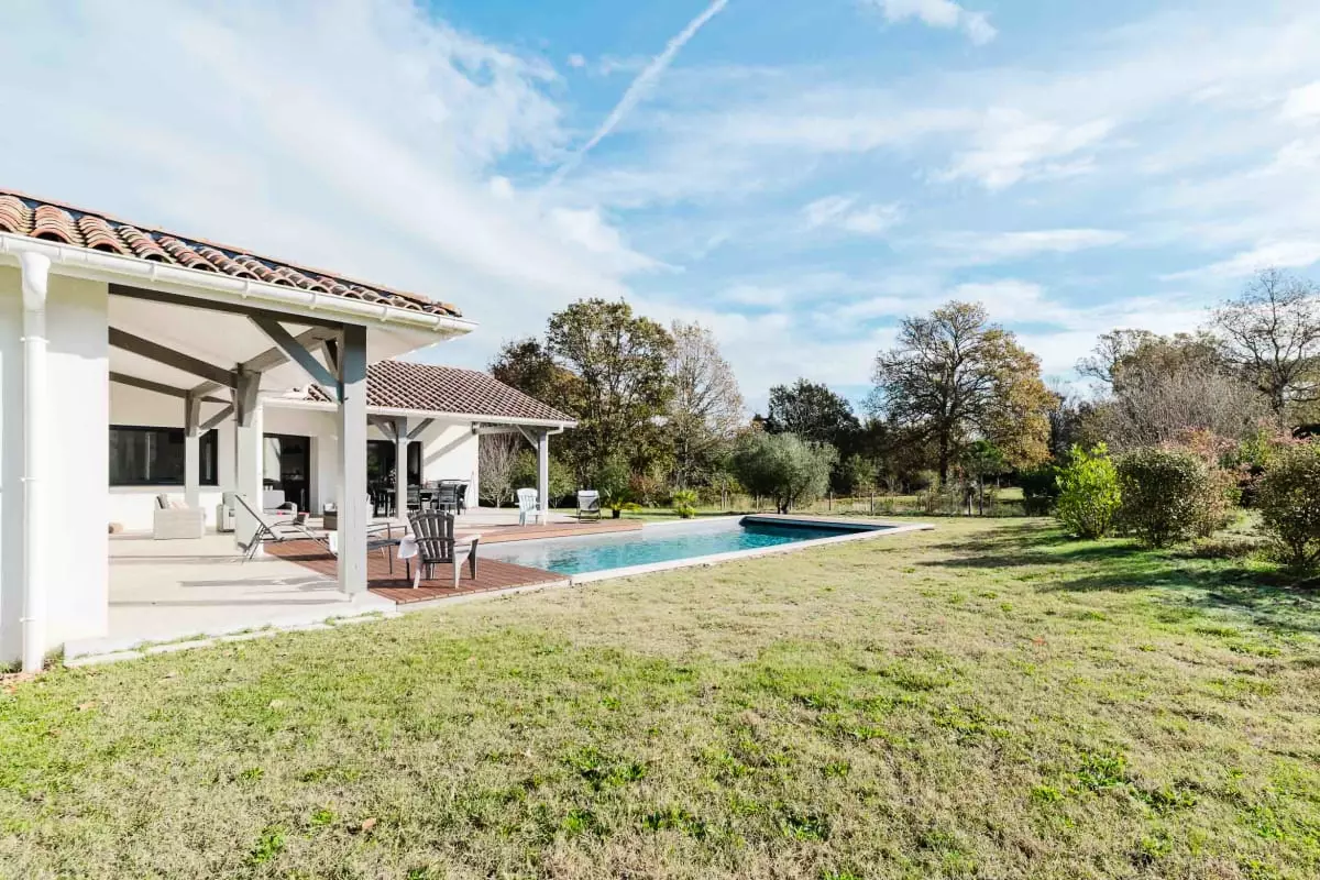The Landes flora is right on your doorstep, and the wildlife sometimes makes an appearance, deer and wild boar, all in complete peace and safety...it's all part of the local landscape! You can walk around the house, and the swimming pool (brand new in 2025) with its tiled and wooden deck is located on the southwest side. Please note: there is a slight overlooking from this side, as the neighboring house's pool is of medium height and still growing. You will particularly appreciate the modern practicality and beautiful contemporary spaces of the house, as well as the tranquility of its garden.