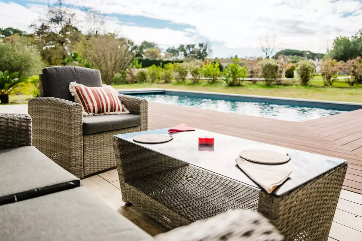 Welcome to "Villa Pitéou". ☀️ Offering every comfort, the villa boasts spacious, modern layouts. All rooms are on the ground floor, with an L-shaped design, and open onto a large tiled and wooden terrace surrounding the swimming pool.