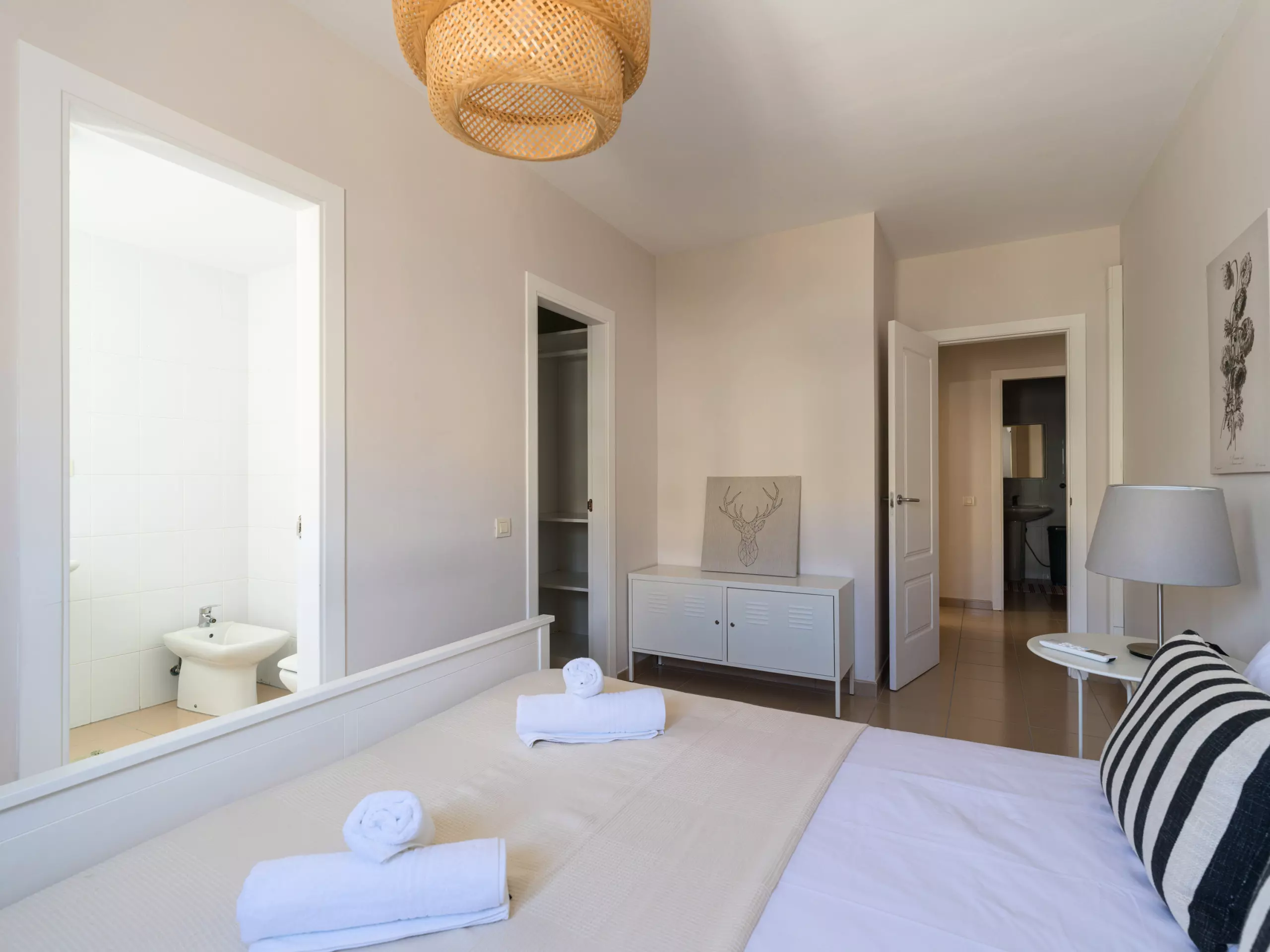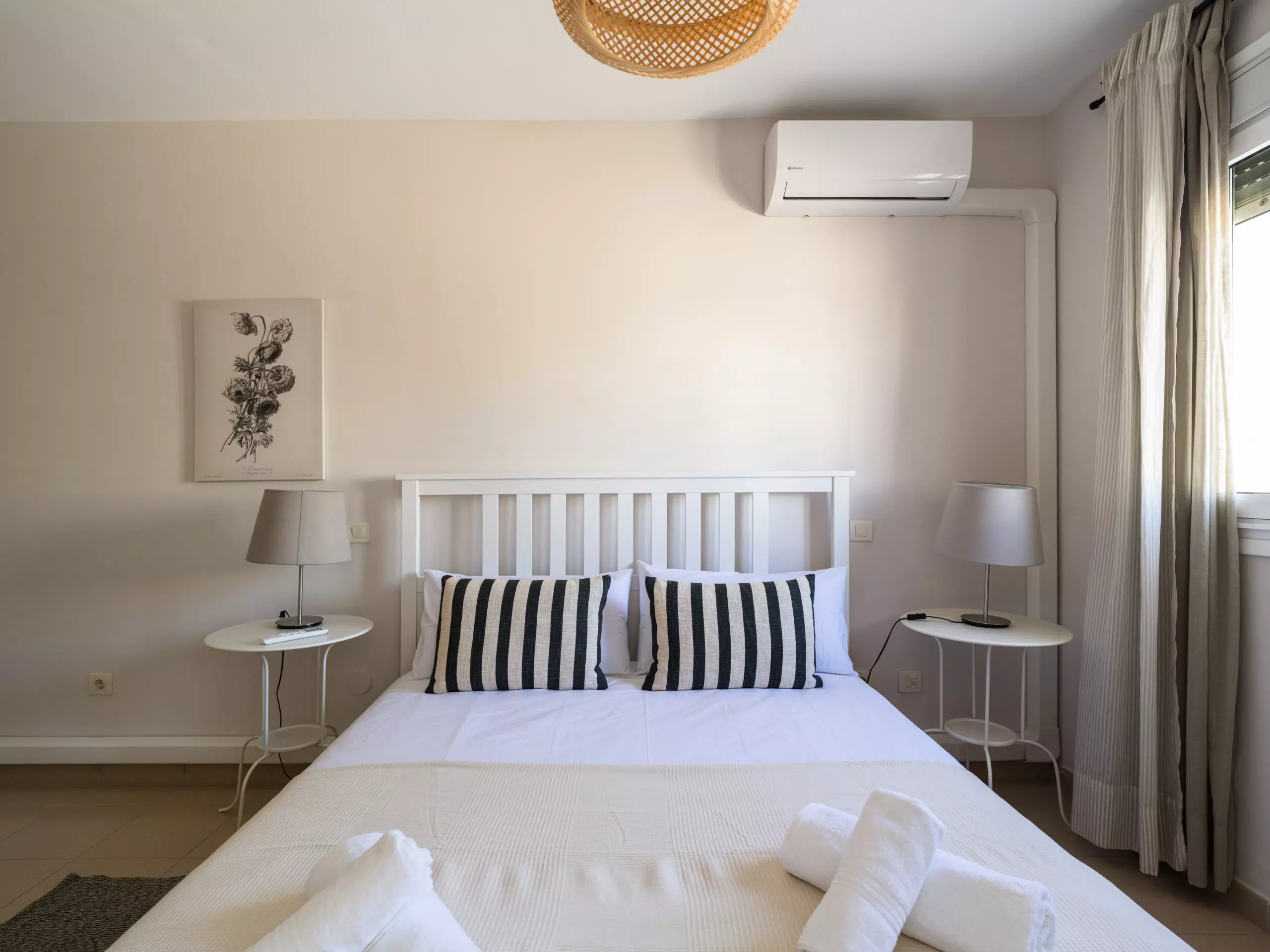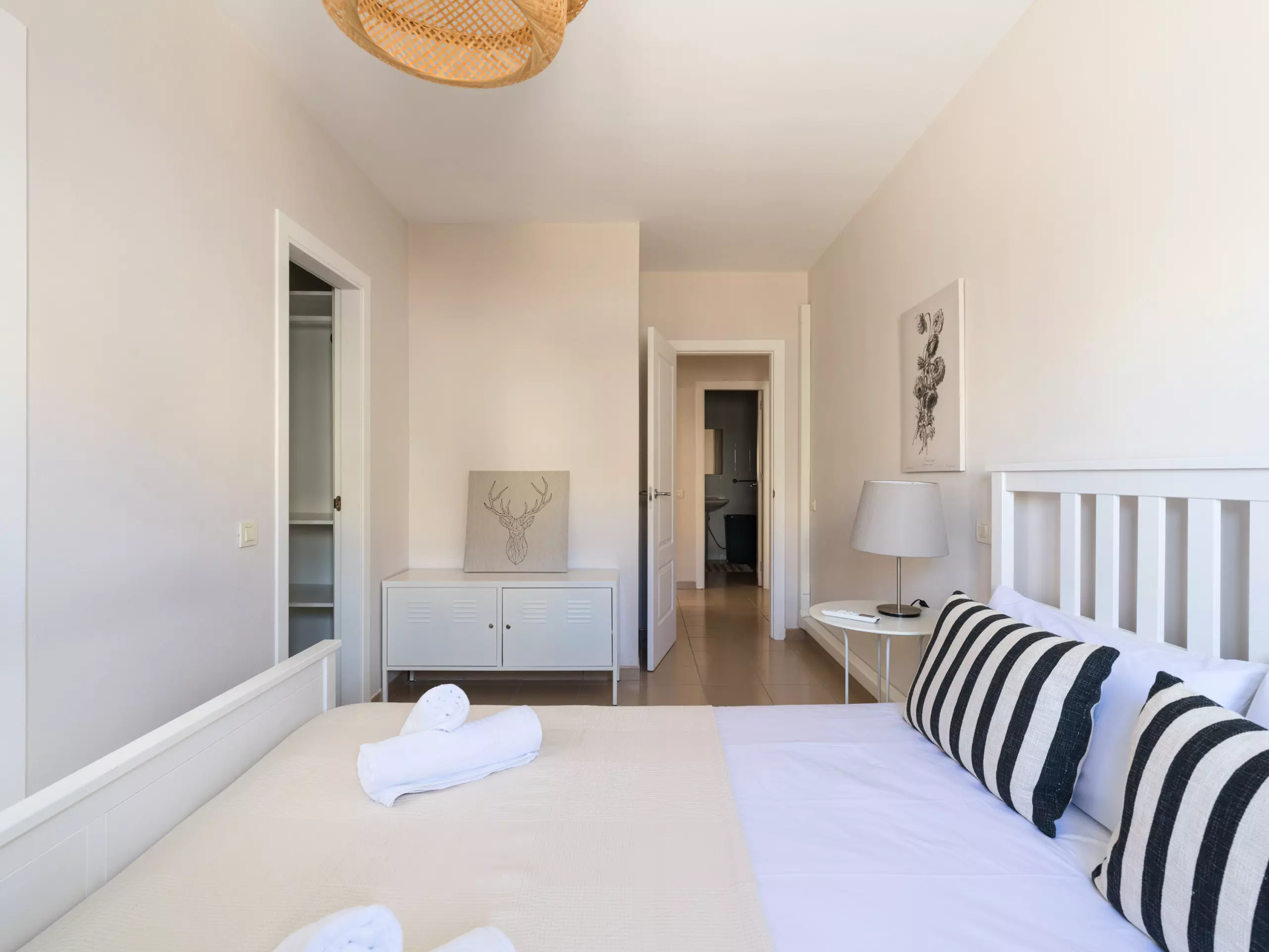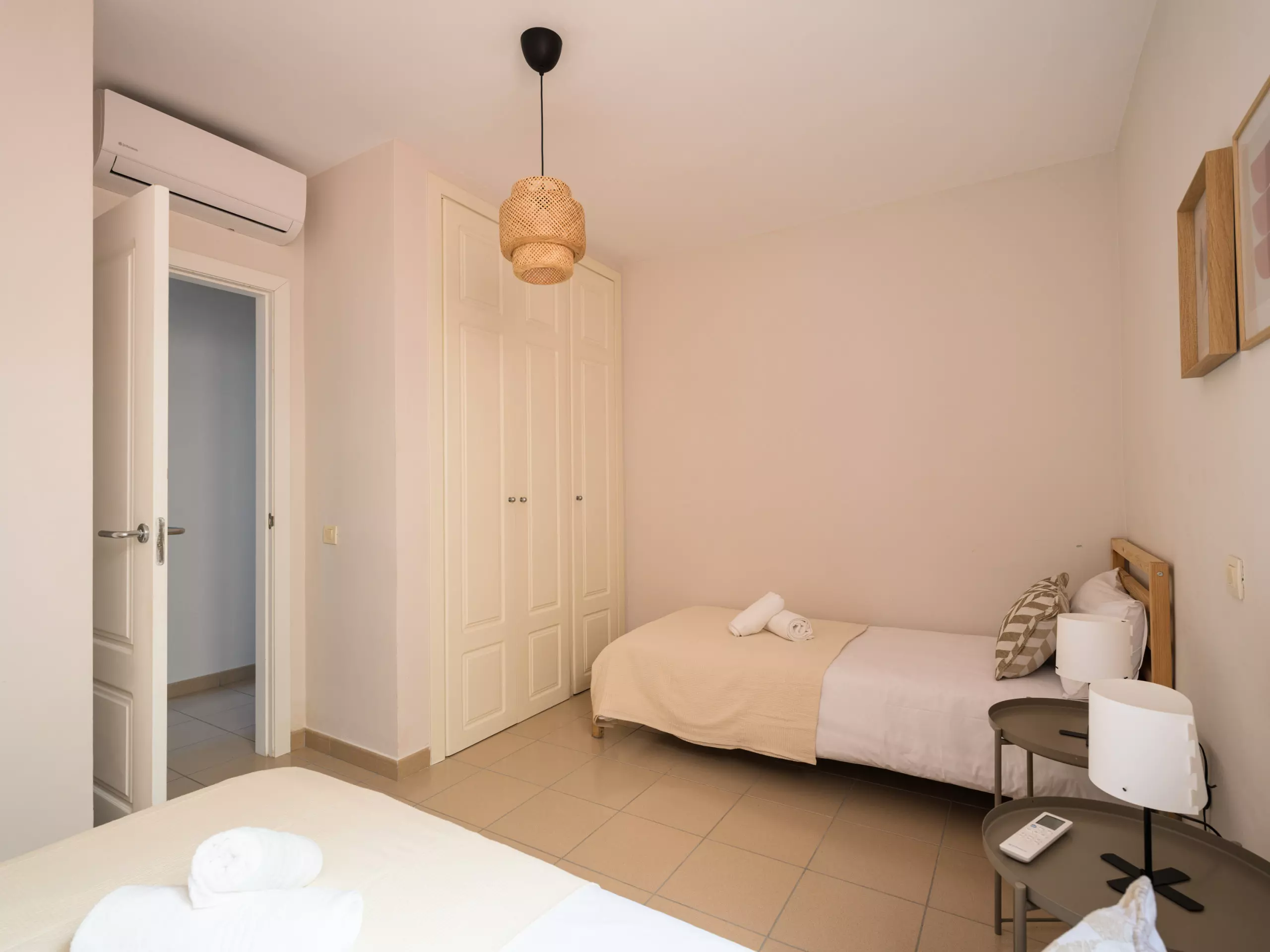 The accommodation features two well-equipped bedrooms: a master bedroom with a double bed and another with two single beds, ensuring a comfortable stay for all guests. The layout allows for a flexible and comfortable stay.