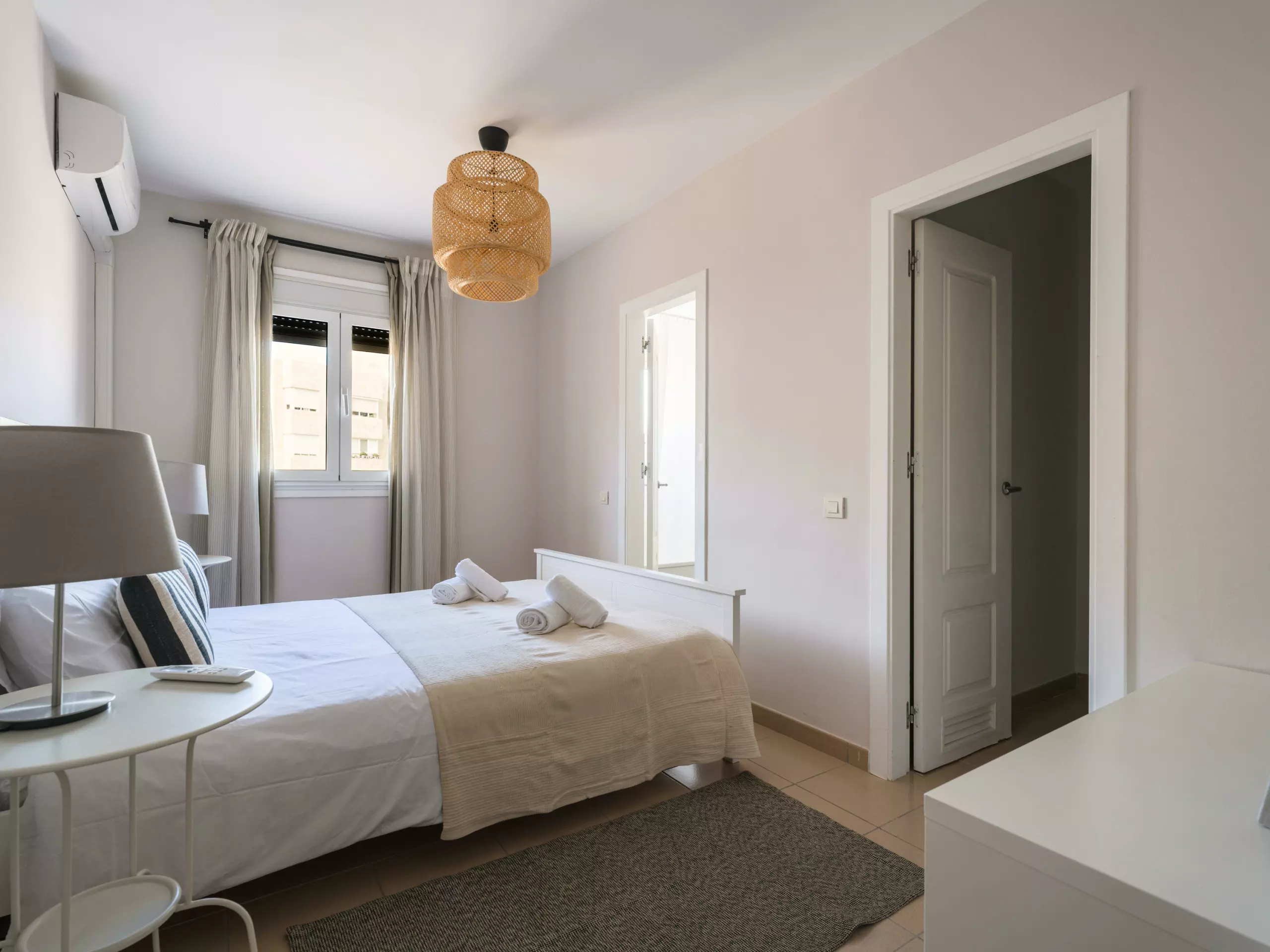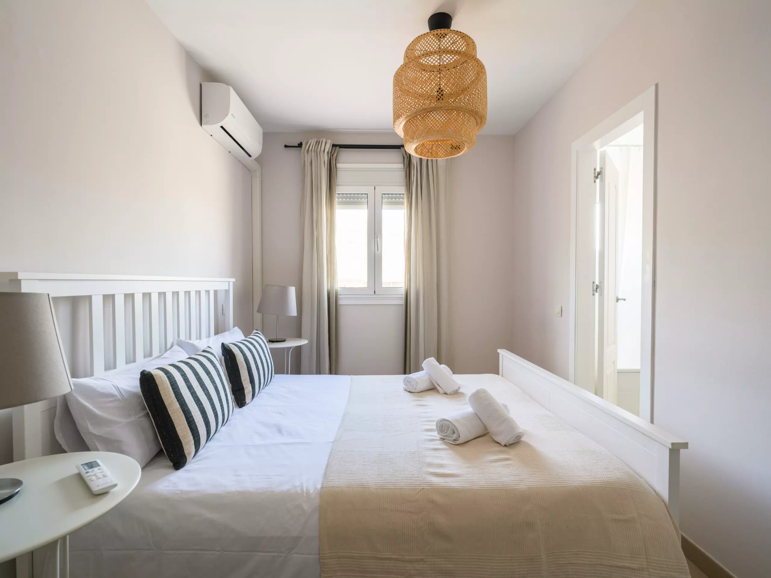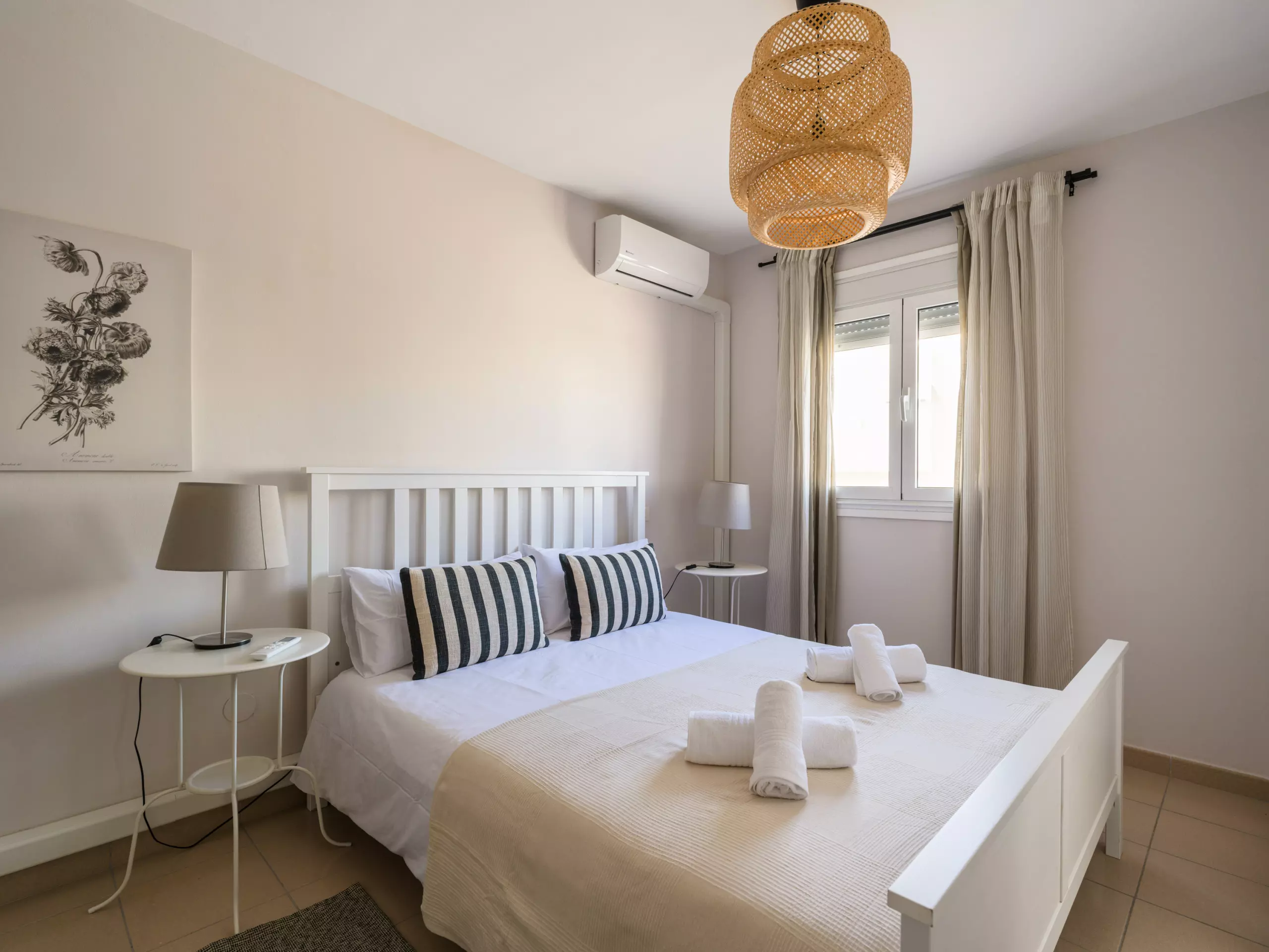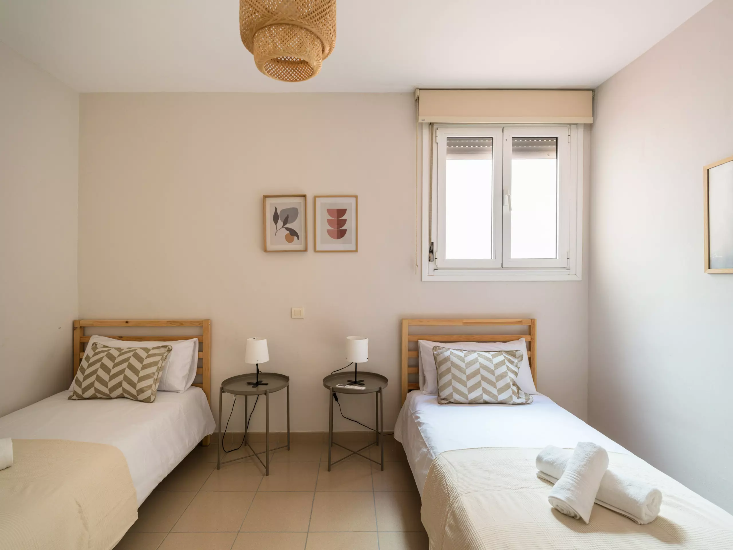 The accommodation features two well-equipped bedrooms: a master bedroom with a double bed and another with two single beds, ensuring a comfortable stay for all guests. The layout allows for a flexible and comfortable stay.
