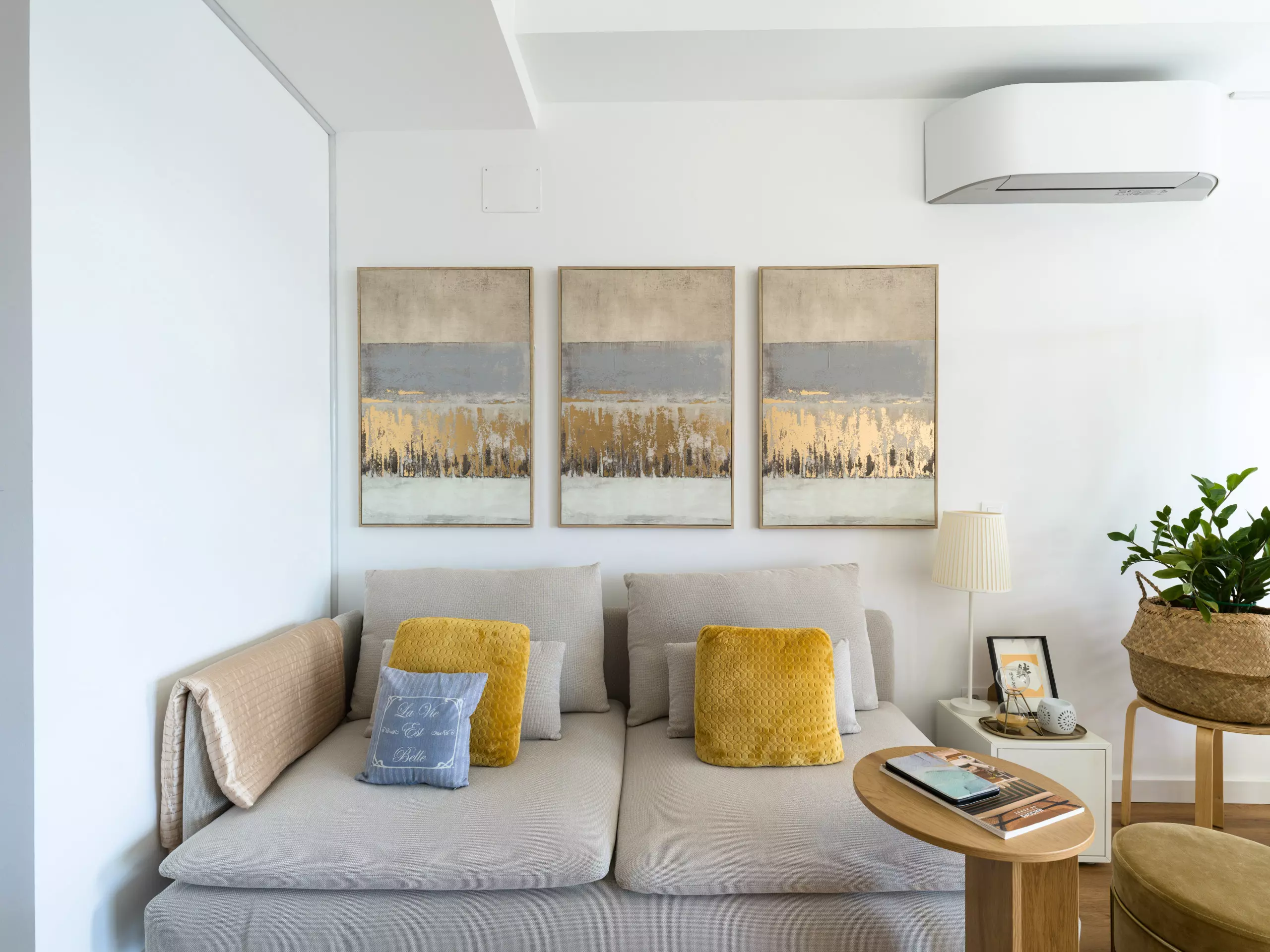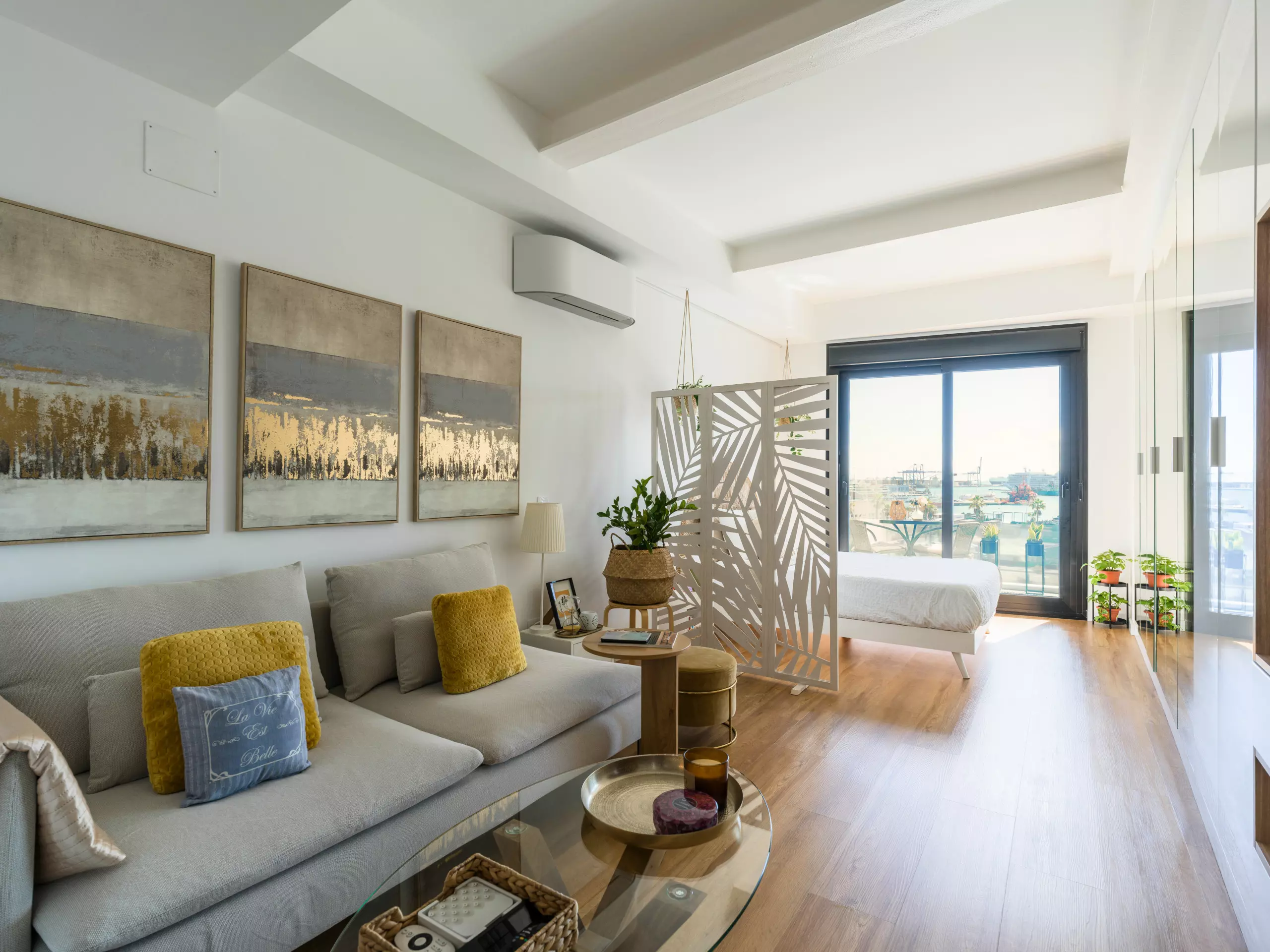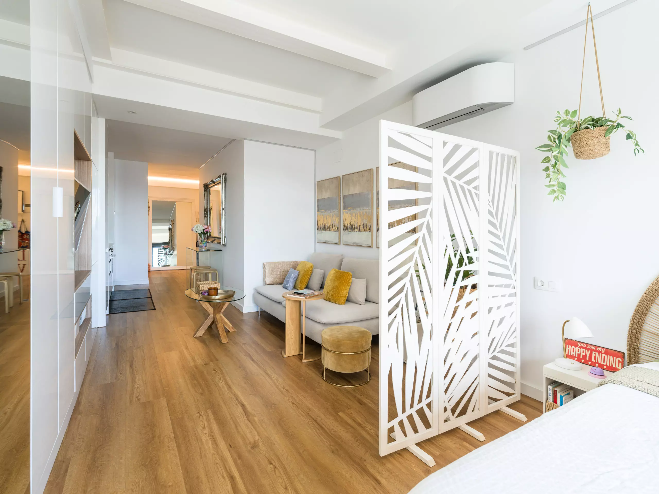 The space features a master bedroom with a double bed (1.35 meters wide) and a pillow-top mattress, ensuring a restful sleep. The carefully selected decor creates an elegant and relaxing atmosphere, ideal for those who value design and comfort.