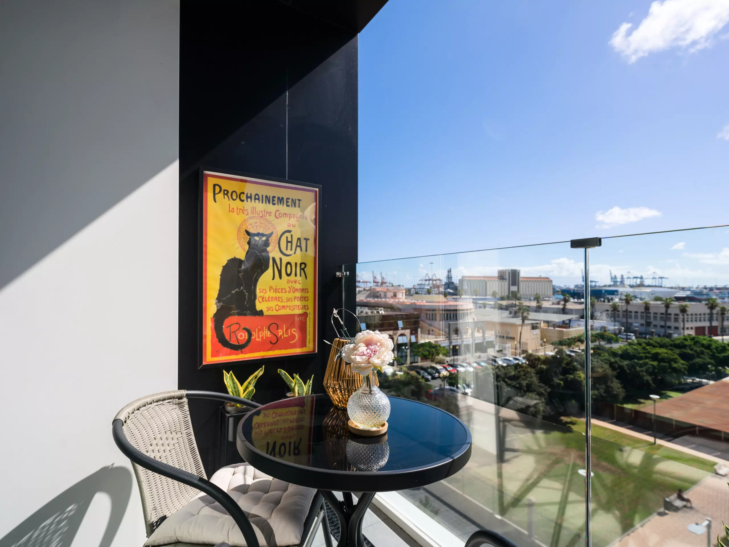 The private balcony offers impressive views of the sea, mountains and surrounding gardens, providing a perfect space to enjoy a morning coffee or a relaxing sunset.