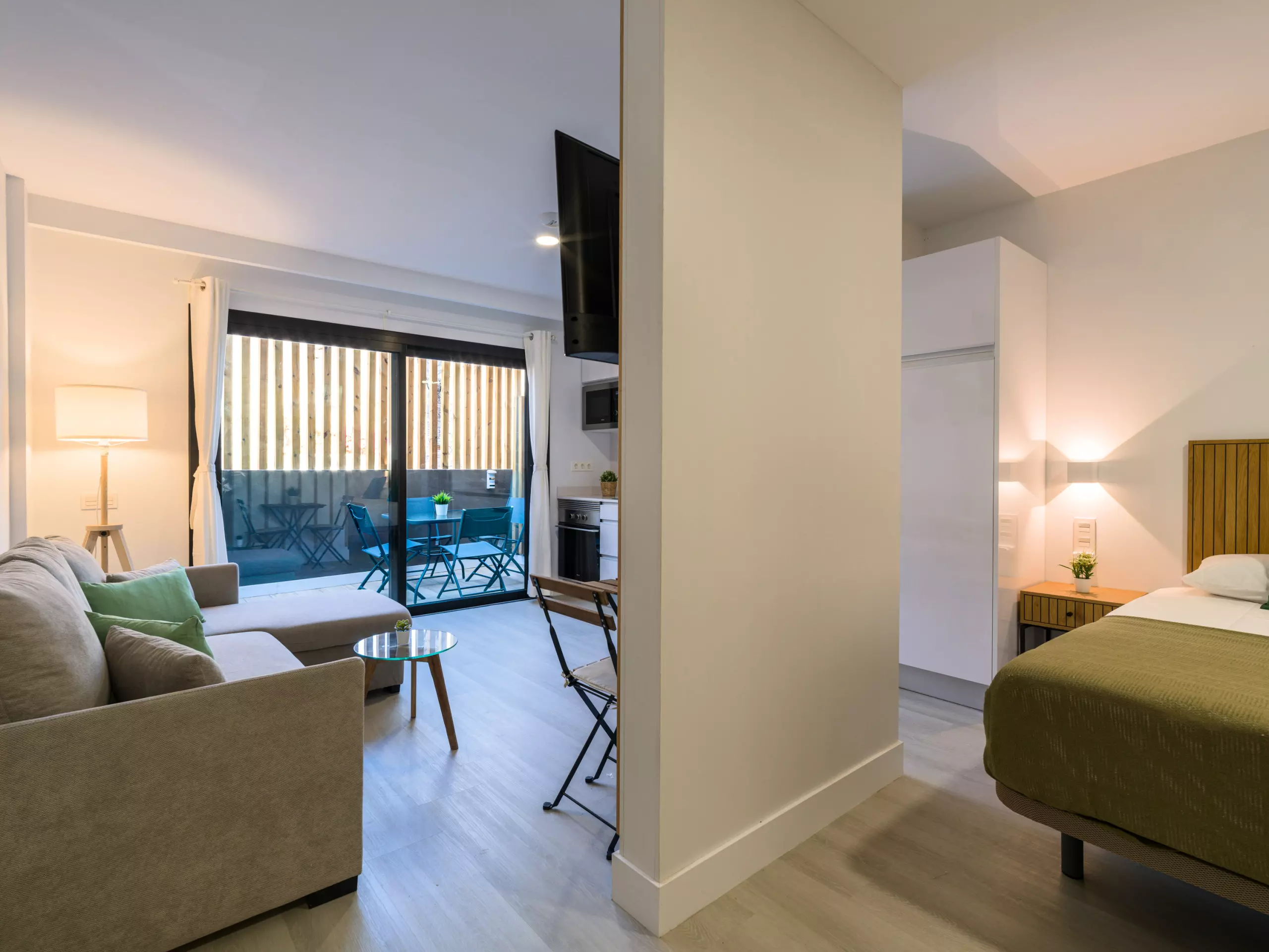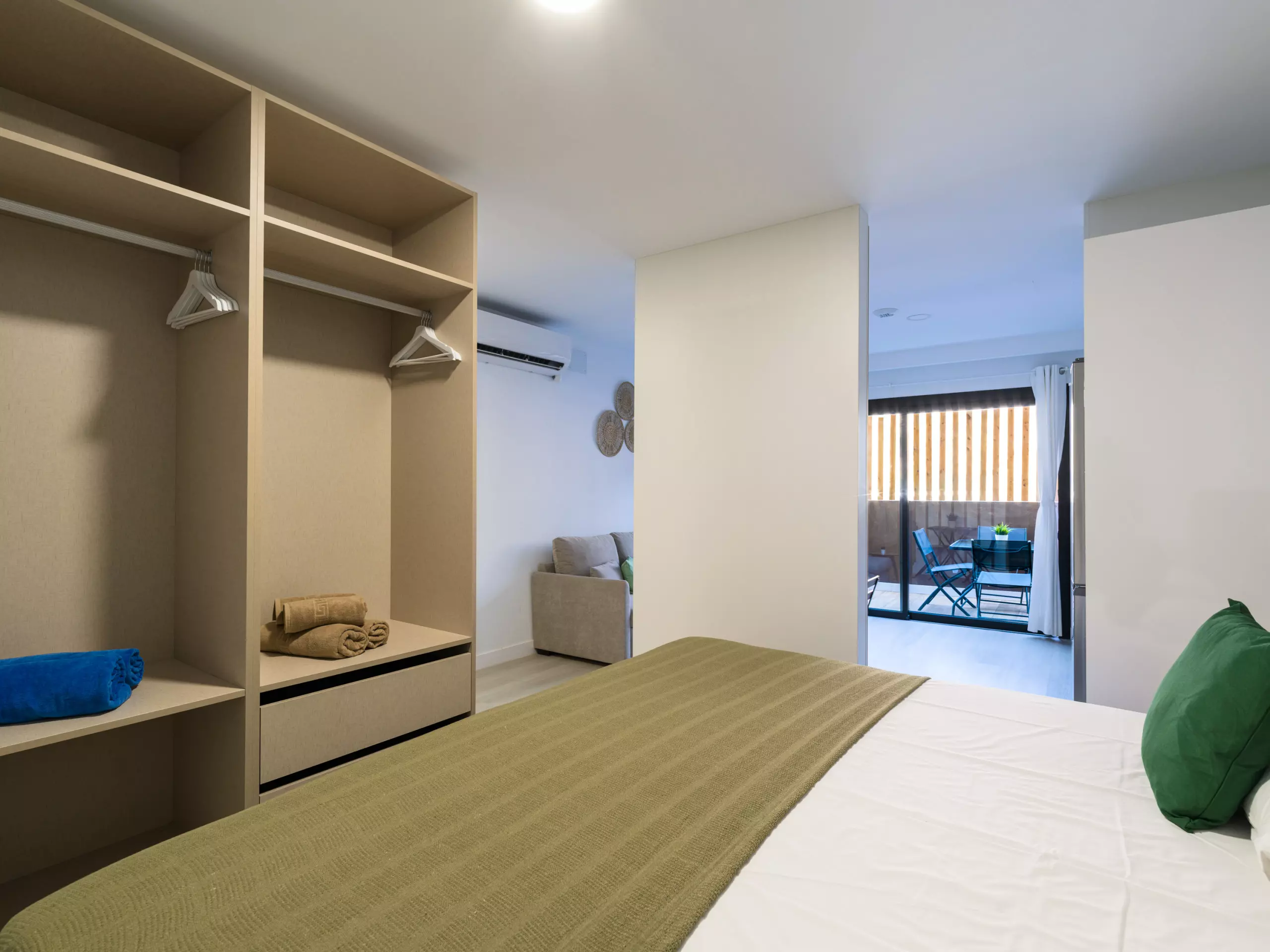 This modern 37-square-meter apartment offers an intimate and well-designed space with a 9-square-meter terrace where you can enjoy relaxing moments with incredible views. It features a king-size bed that guarantees exceptional rest, ideal for one or two people.