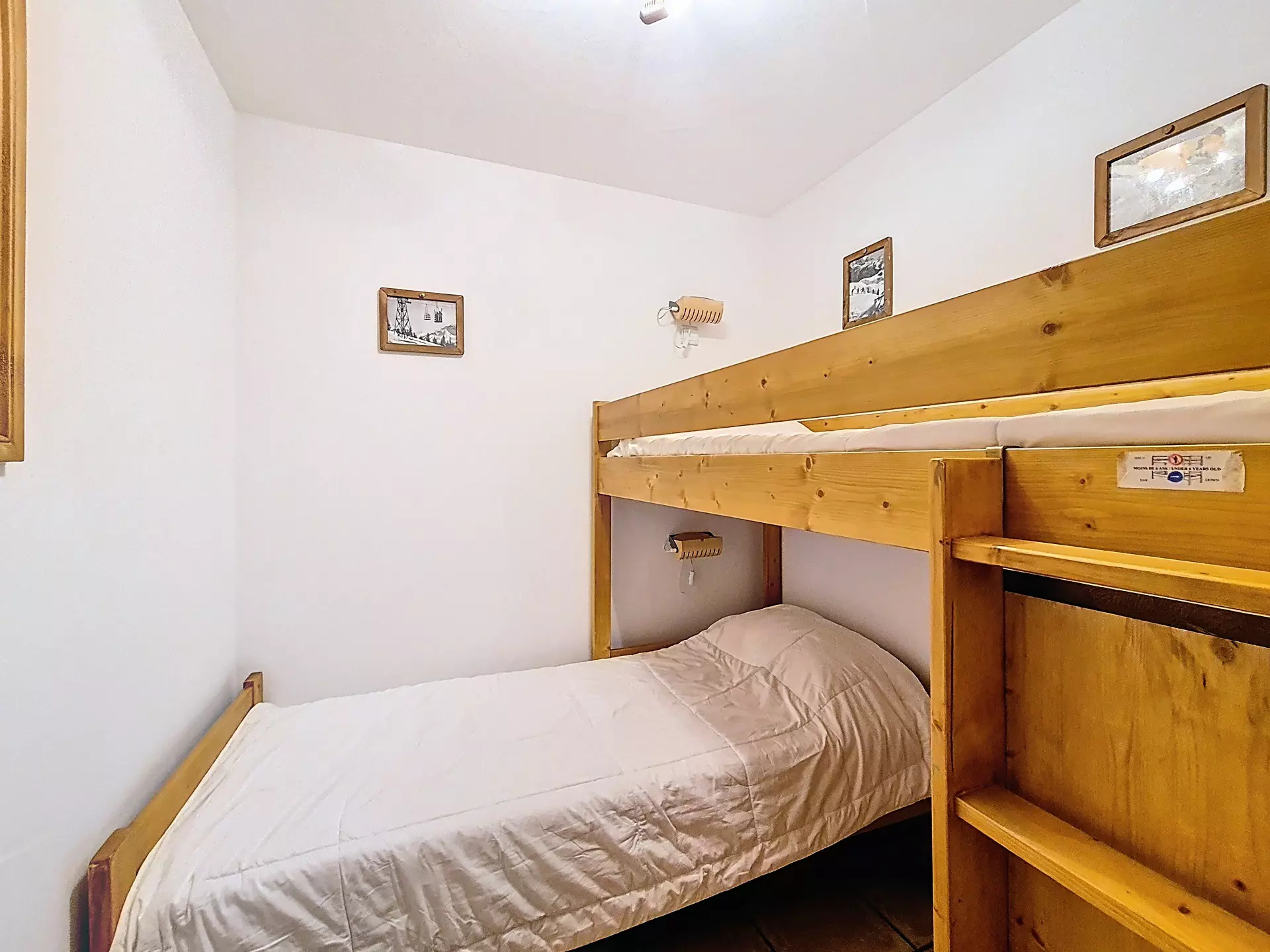 Room 1: 1 single bed and a bunk bed.