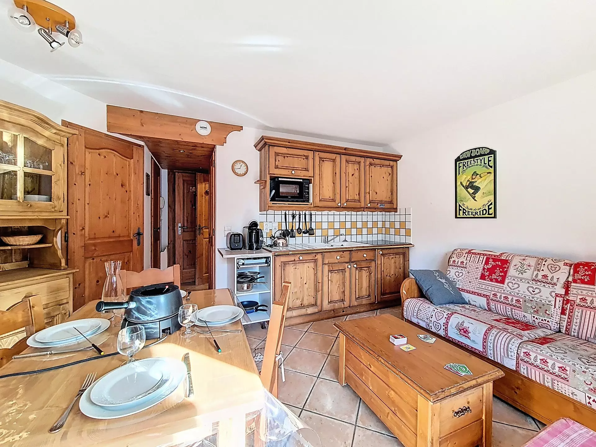 Spacious and bright three-room apartment with a surface area of 35m², for 5 people. It is located on level 0 with a southwest-facing terrace.