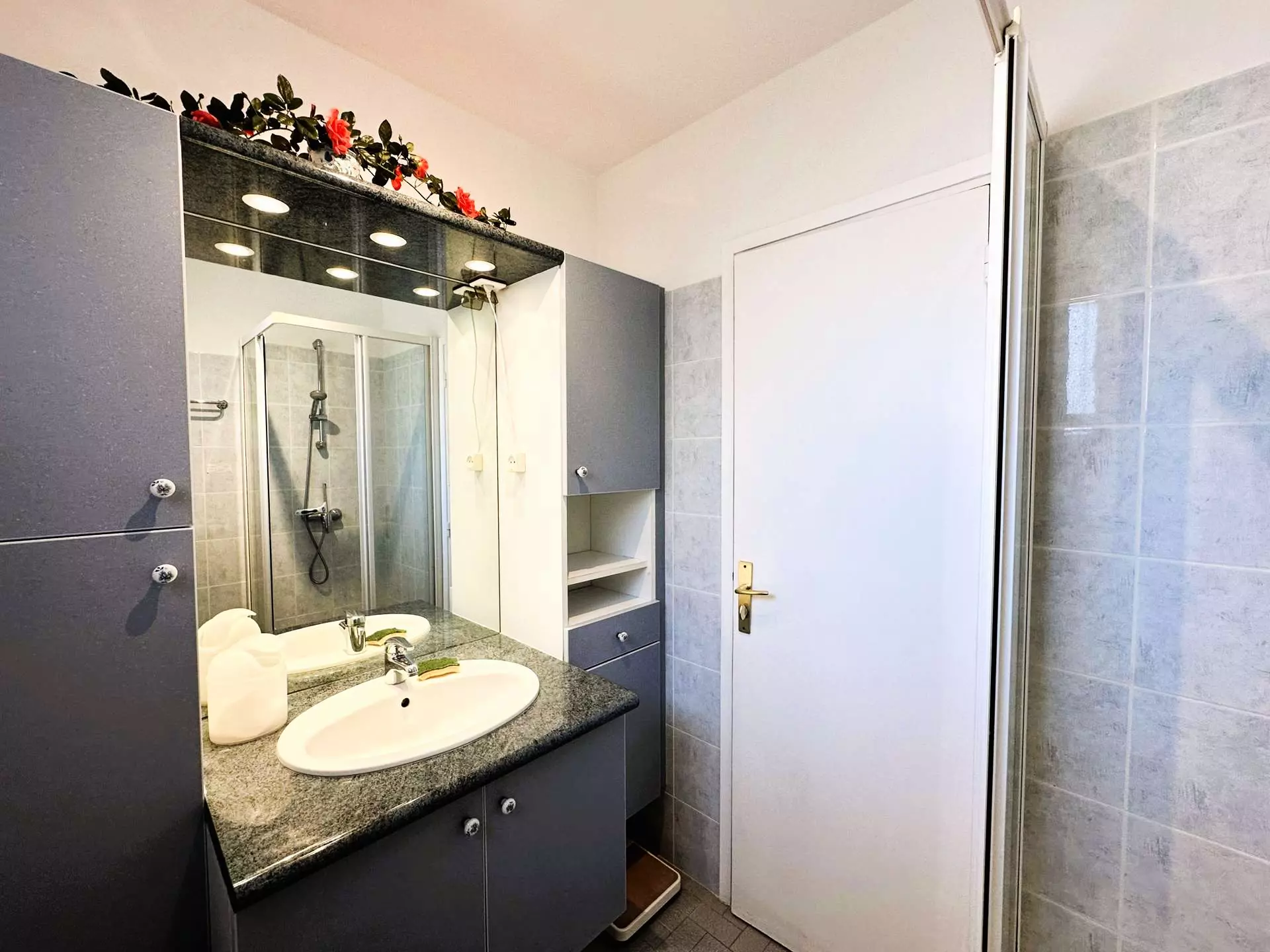 It comprises a living room, a fully equipped kitchen, two double bedrooms, one of which is located in the living room and closed off by a sliding door. A shower room and a separate toilet.