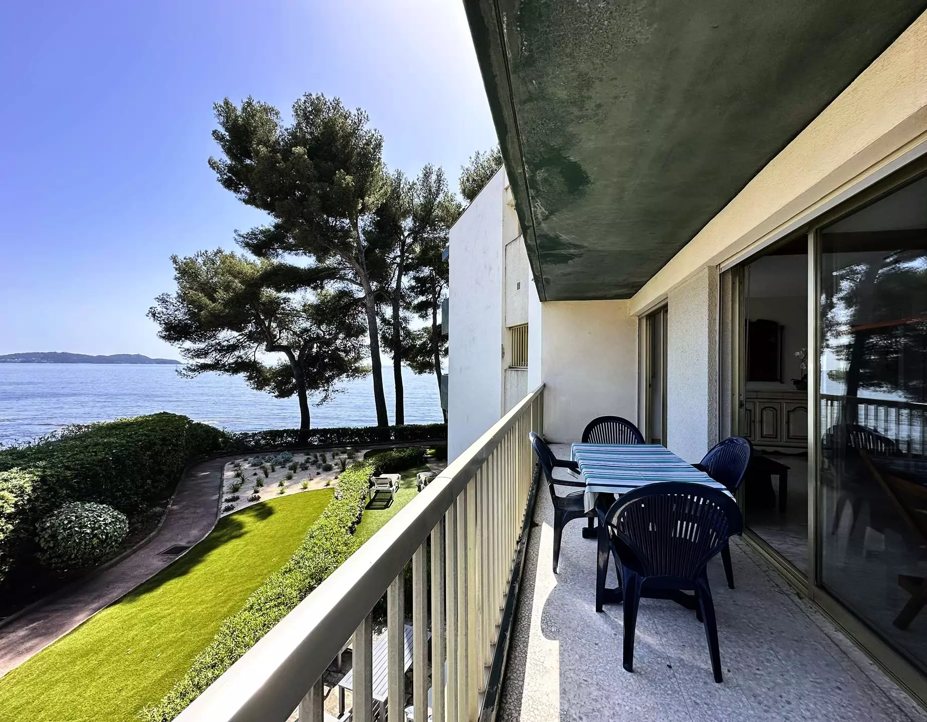 A pleasant, secure residence located in Carqueiranne, right on the waterfront just steps from the port. Peaceful and quiet, with private beach access, it's the perfect place for a relaxing holiday, surrounded by a 5000m² enclosed parkland under the pine trees.