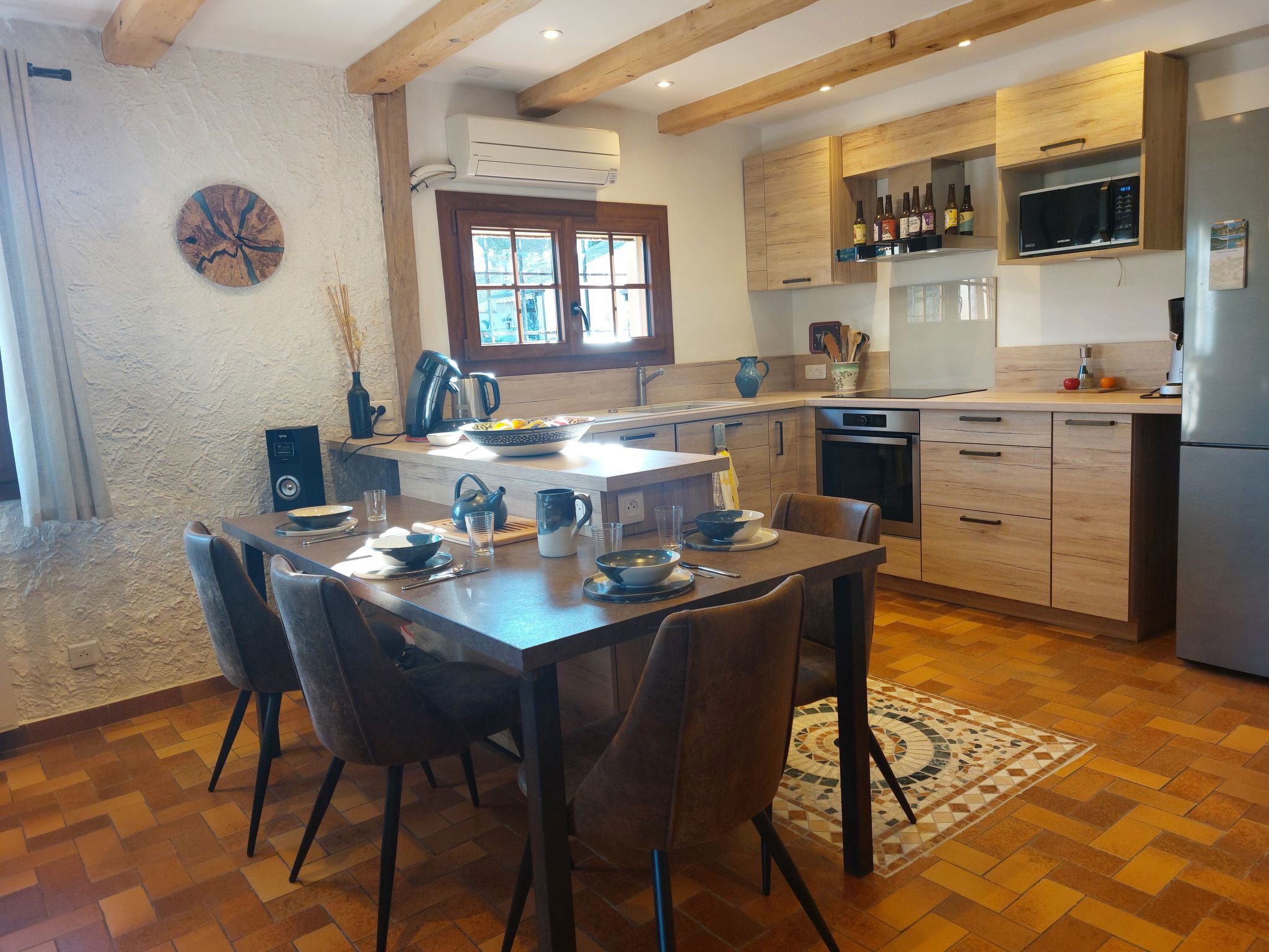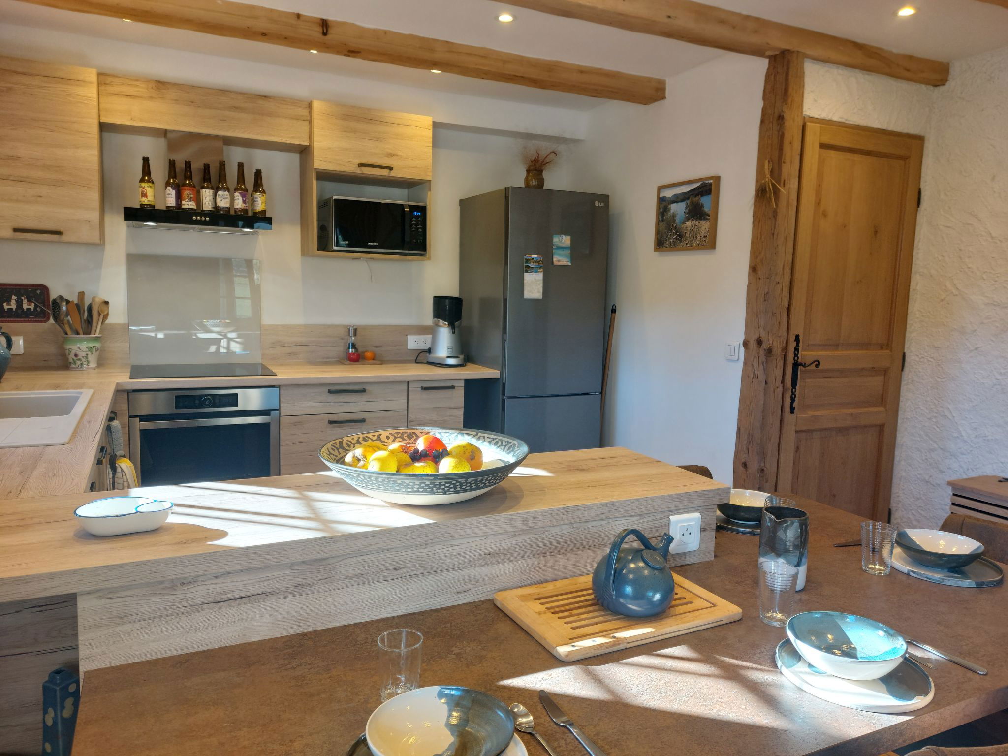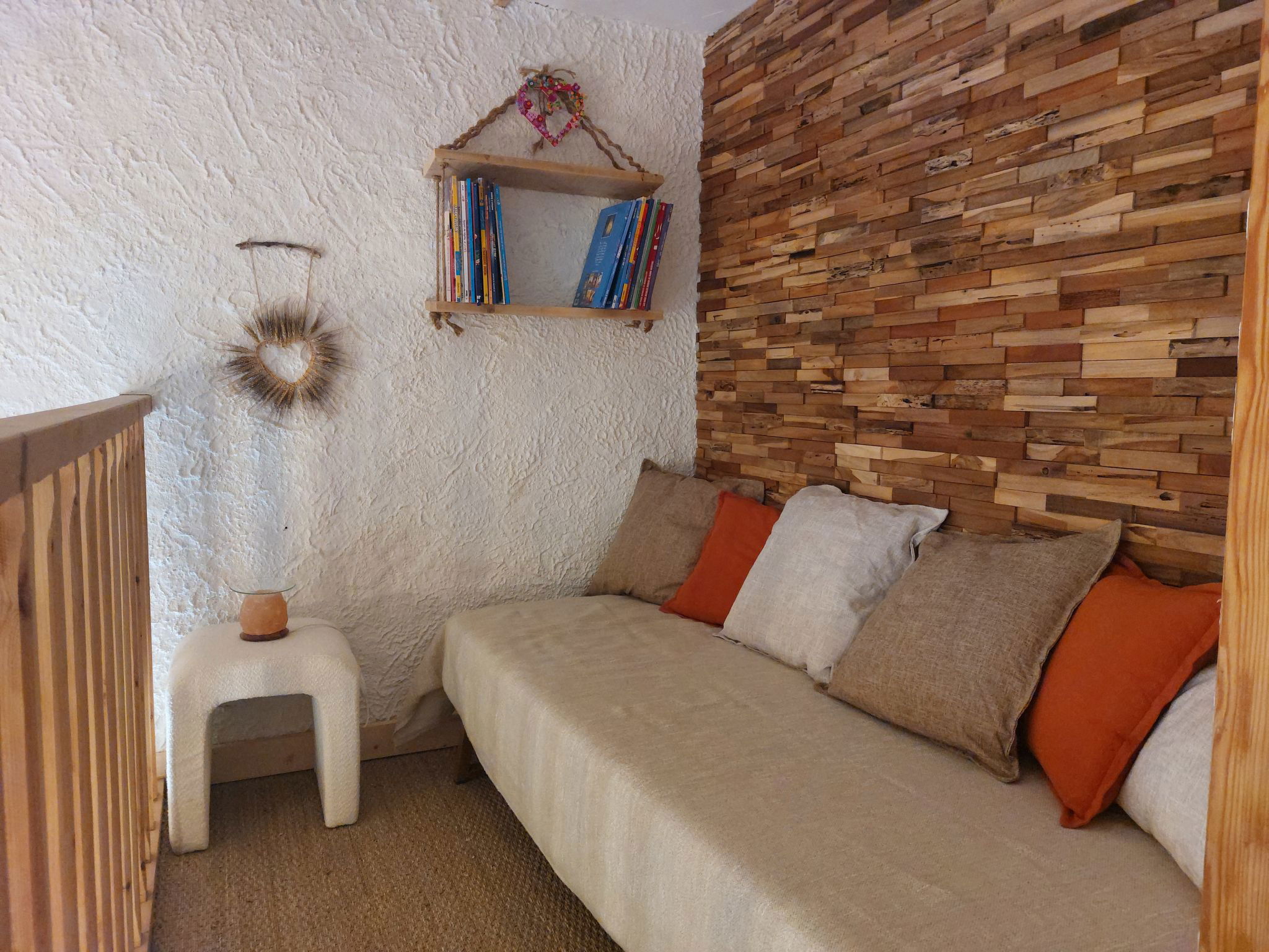 "Mon Coua", 4-room semi-detached house 90 m2 on 2 levels. Comfortable and beautiful furnishings: living room with open-hearth fireplace, dining table and TV (flat screen), air conditioning. Exit to the veranda. 1 room with 1 french bed (140 cm, length 190 cm). Open kitchen (oven, dishwasher, 3 induction hot plates, toaster, kettle, microwave, freezer, electric coffee machine). Shower, sep. WC. Upper floor: 1 room with sloping ceilings with 1 french bed (160 cm, length 200 cm). 1 room with sloping ceilings with 2 beds (80 cm, length 190 cm). Electric heating. Terrace furniture, barbecue, deck chairs (2). Facilities: washing machine, iron, baby cot for up to 3 year olds, hair dryer. Internet (WiFi, free). Please note: non-smoking house. Smoke alarm. Offer by a private individual according to Art. 155, IV of CGI.