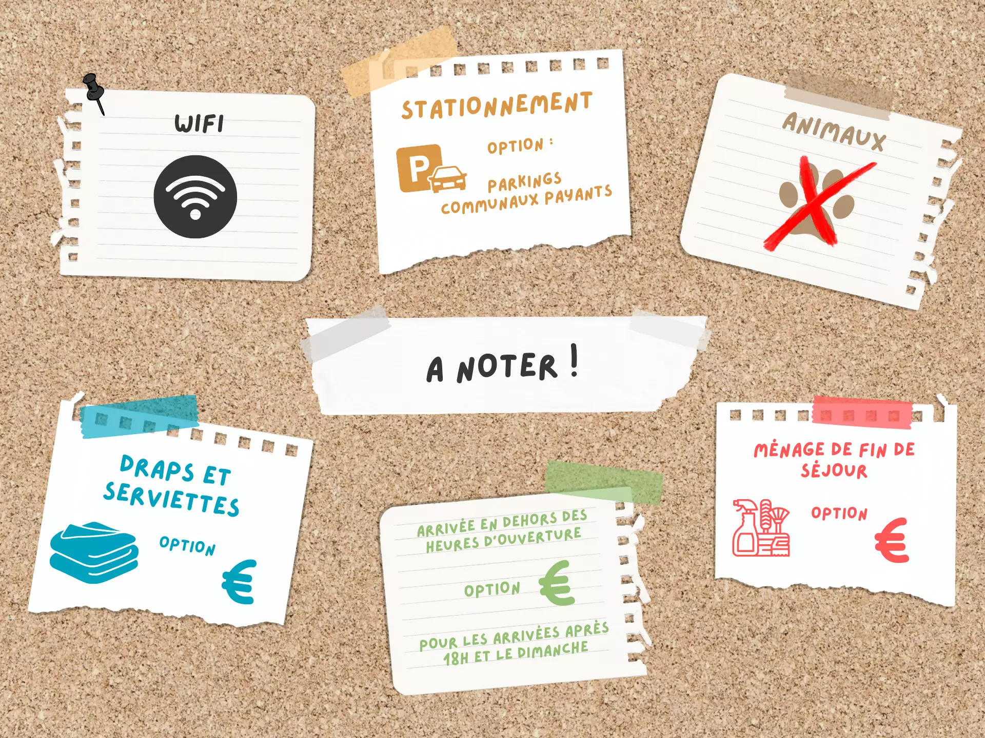 - End-of-stay cleaning, flat rate depending on the size of the accommodation (€50 to €150), to be ordered 3 days before departure.