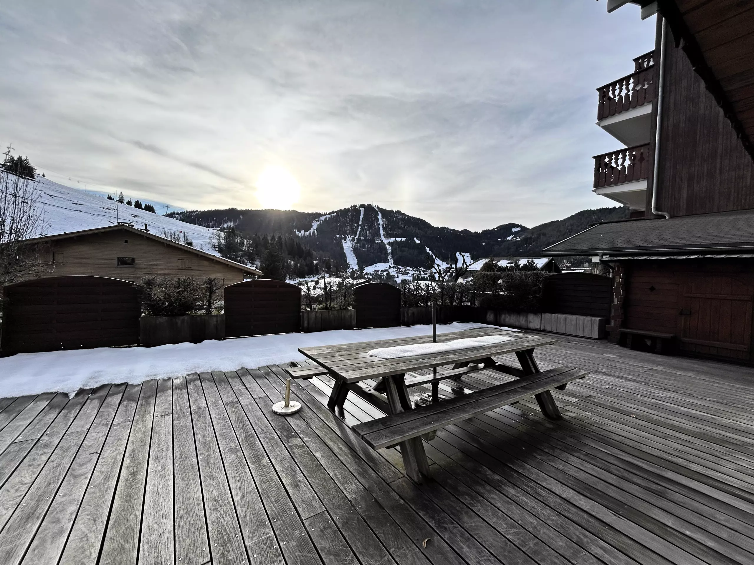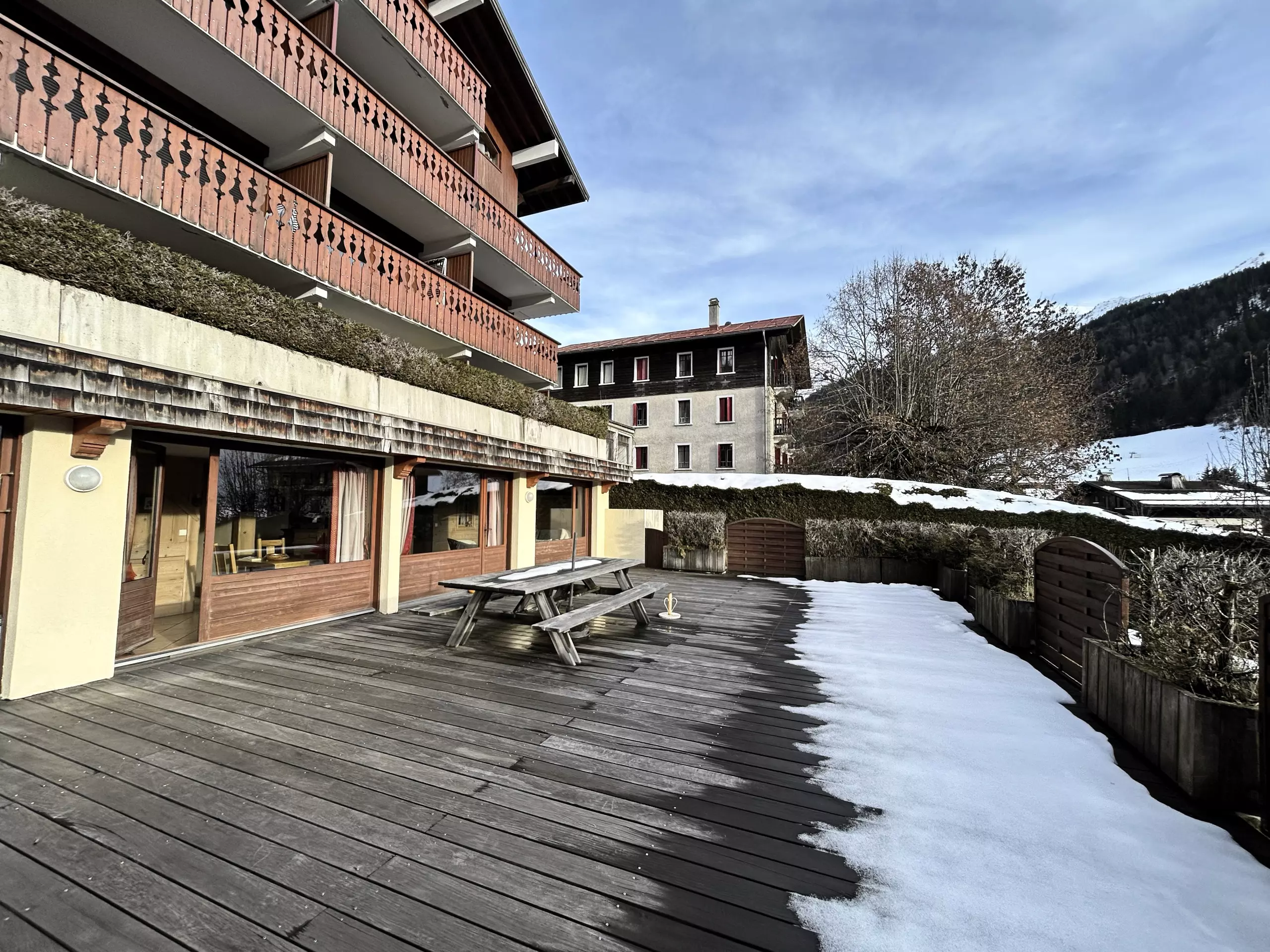 Ground floor apartment in a chalet (1988) with 15 apartments, located 250 meters from the Bossonnet chairlift and 100 meters from the town center. View of the Beauregard and Aiguille mountain ranges. Shuttle service nearby.