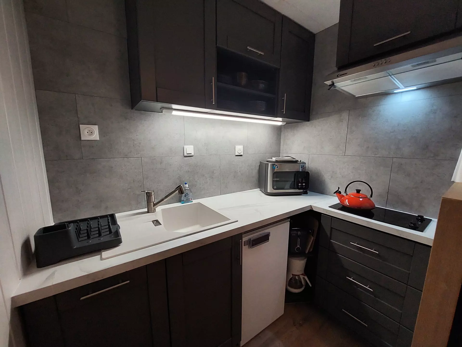 Equipment: 2 induction hobs, microwave, refrigerator, dishwasher, Nespresso coffee maker, toaster, raclette grill, fondue set.