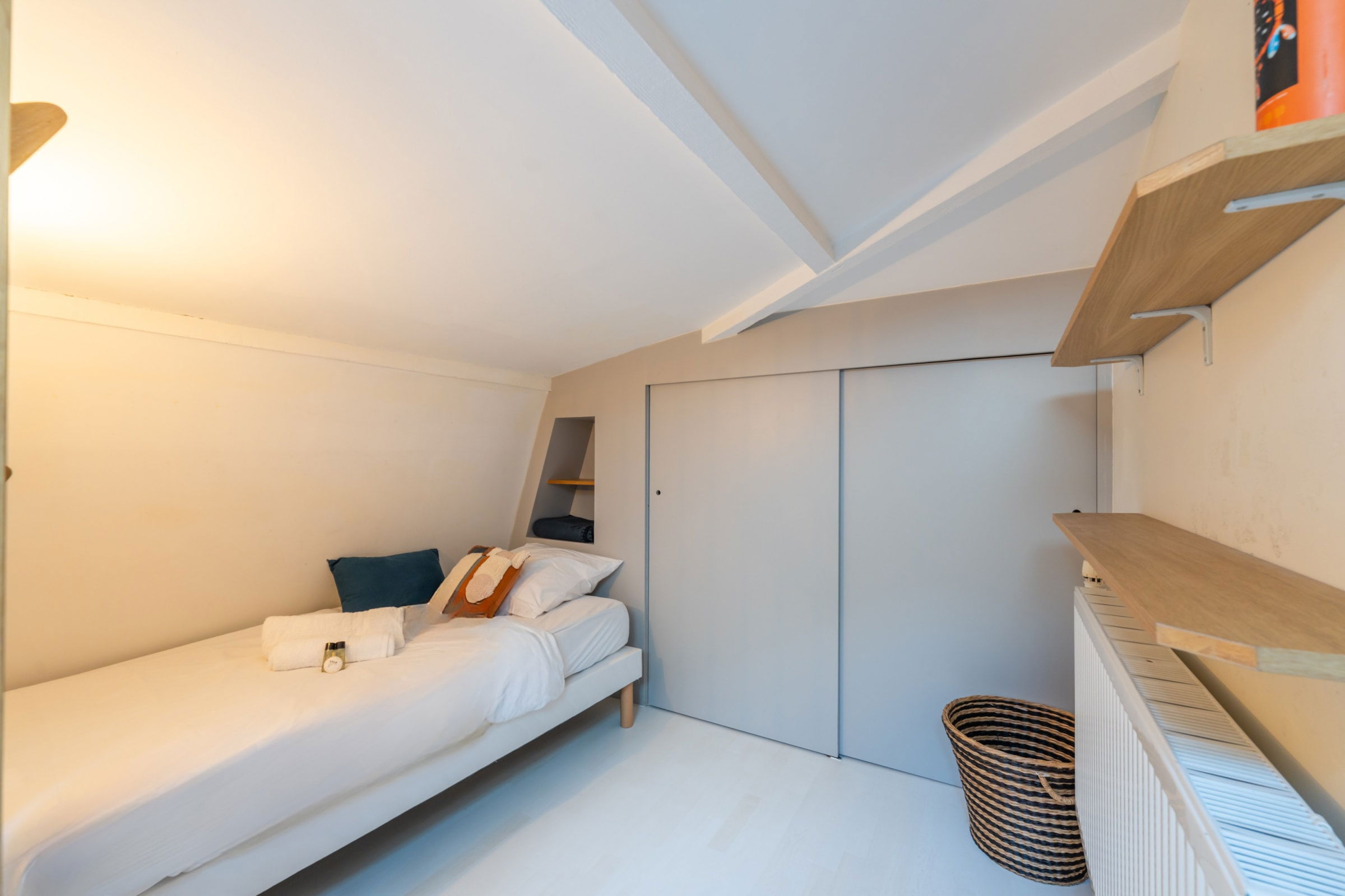 - two bright bedrooms on the second floor, one with a double bed, the other with a single.