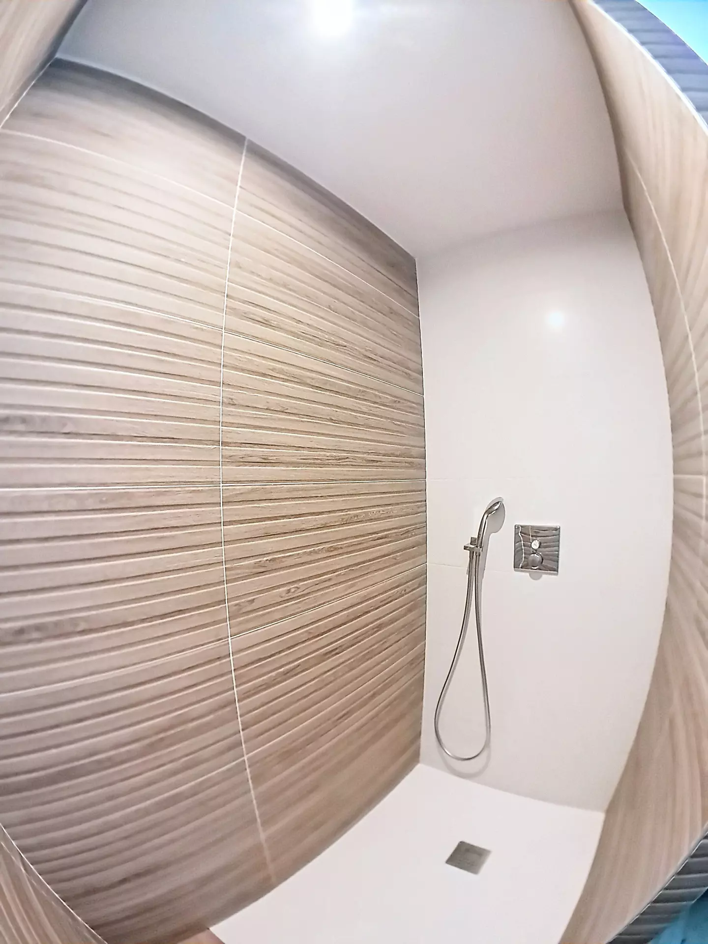 Shower room with large walk-in shower and washbasin.