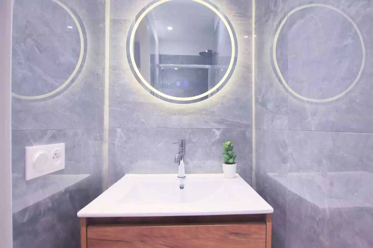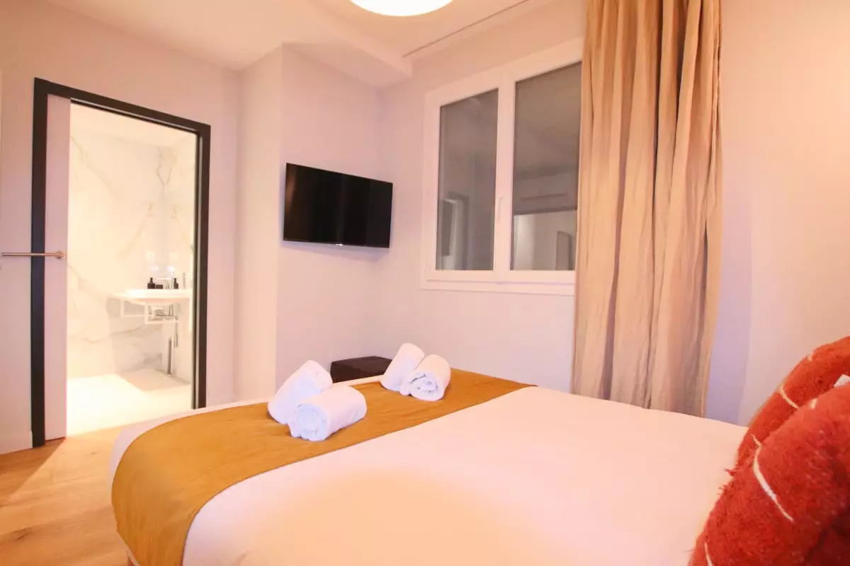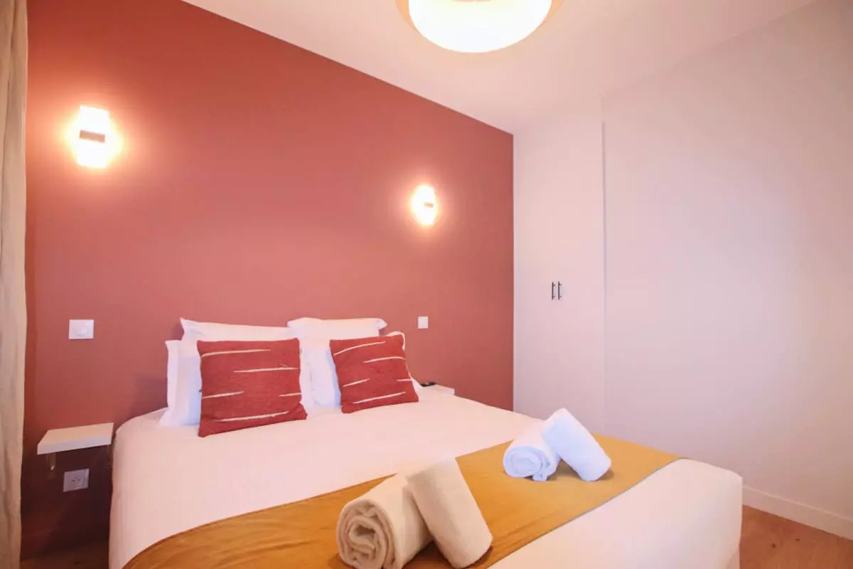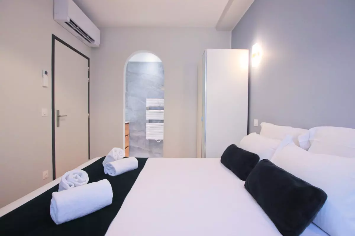 Modern 3-bedroom apartment for 6 people in the heart of Bordeaux. Three bedrooms with queen-size beds, private bathrooms, and air conditioning, one of which is wheelchair accessible. Comfortable living room with TV and Wi-Fi. Fully equipped kitchen (dishwasher, washing machine, oven, etc.). Secure building with elevator.