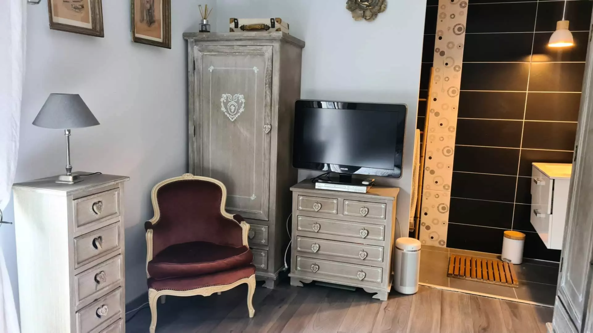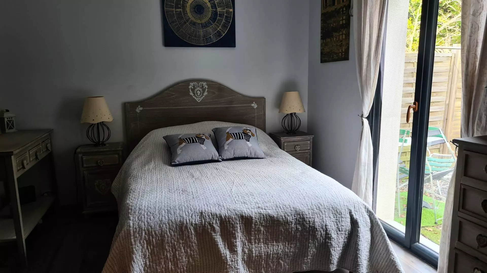 This quiet house for 6 people, with heated swimming pool, offers an entrance with closet, a living/dining room giving access to the terrace and the swimming pool, an open equipped and fitted kitchen (refrigerator, oven, microwave, toaster, coffee maker), a bedroom with a double bed of 140 and private shower room, separate WC.
