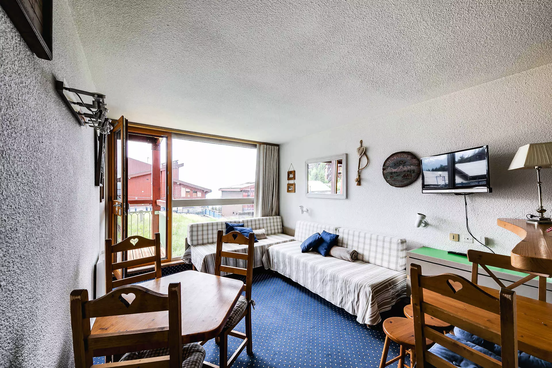 For your ski or summer holidays in Les Arcs 1800, book this 2-room apartment which benefits from a west-facing balcony with a view of the valley and the resort.
