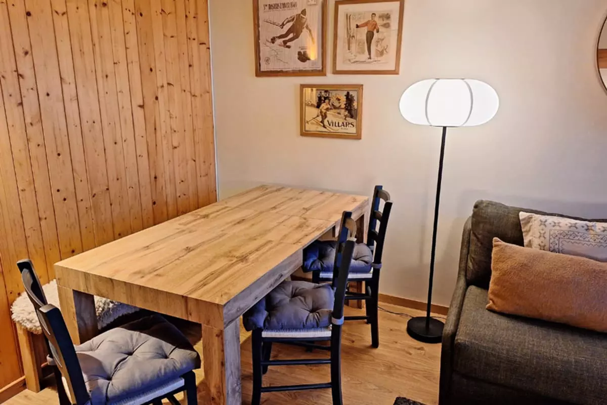 The fully equipped kitchen makes preparing meals easy: induction hob, extractor hood, oven and microwave, kettle, toaster, Nespresso coffee machine, raclette and fondue set. The dining area with a large table is perfect for sharing good times.