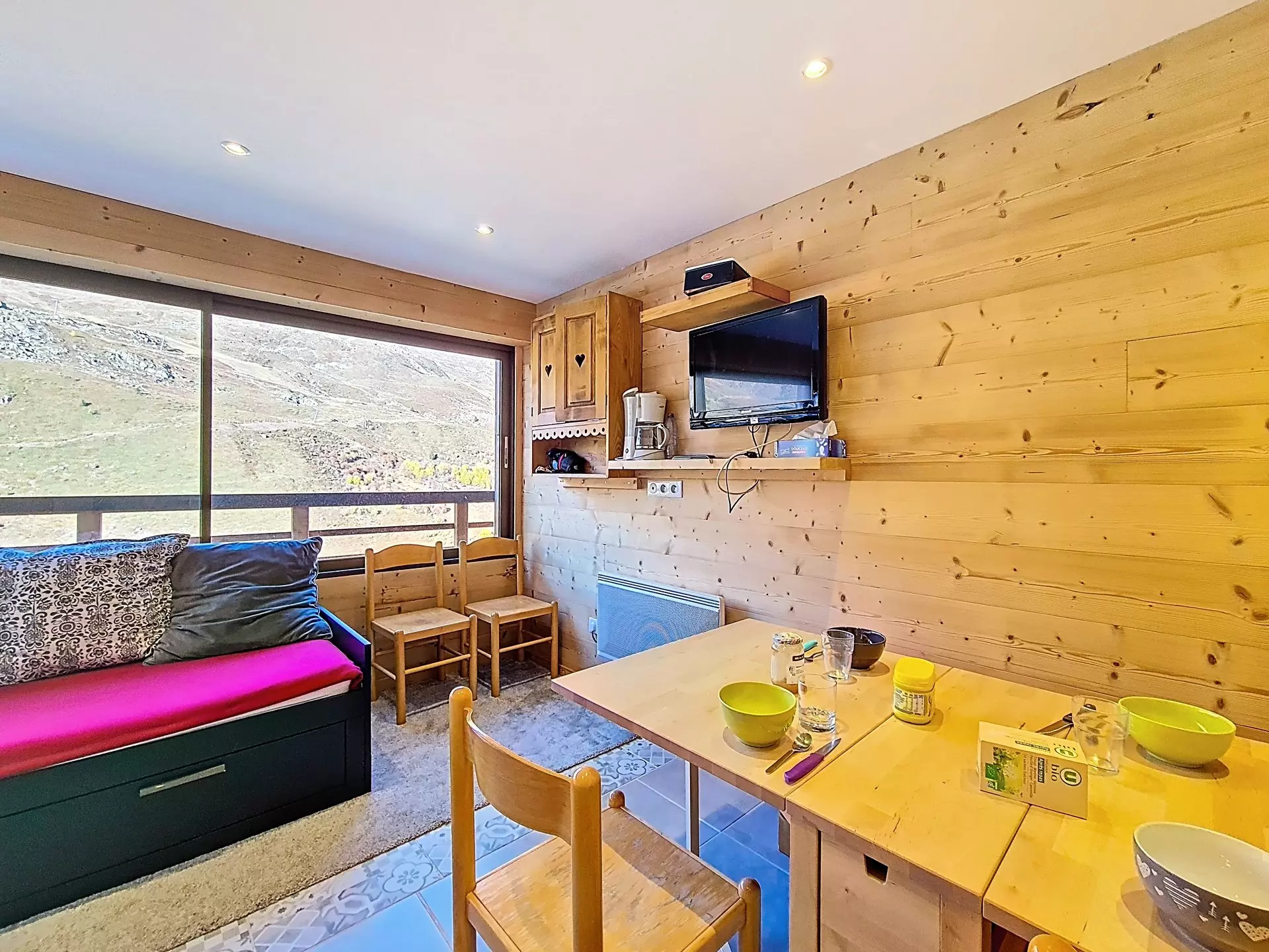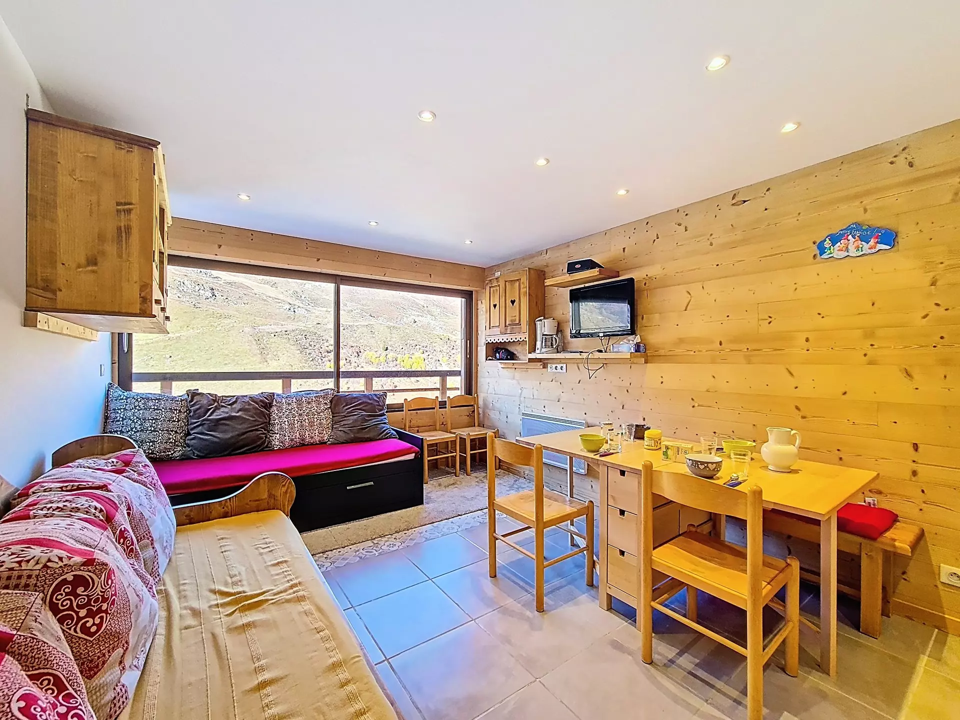Living room: 1 single sofa bed + 1 pull-out single bed. Equipped with a television.