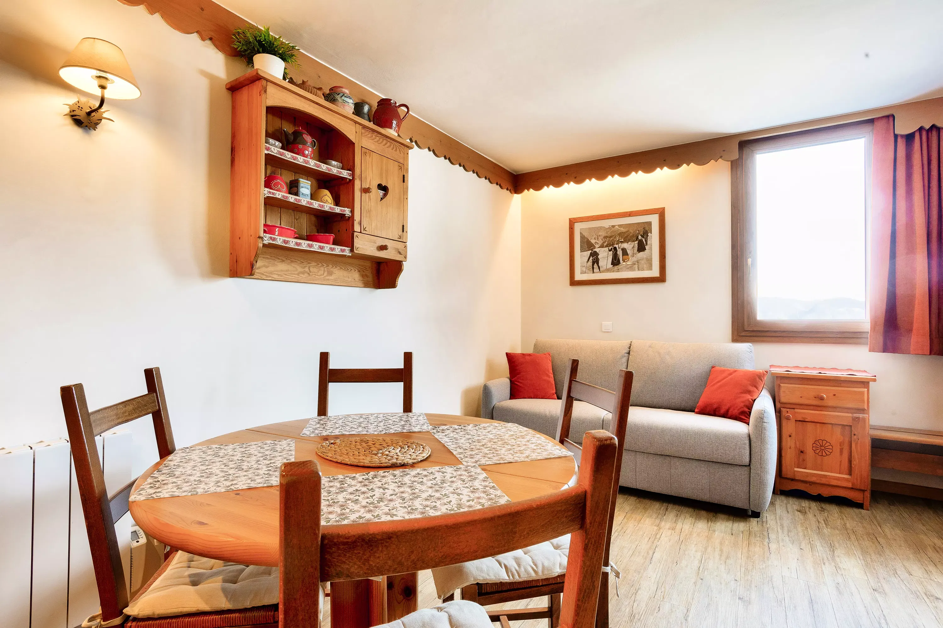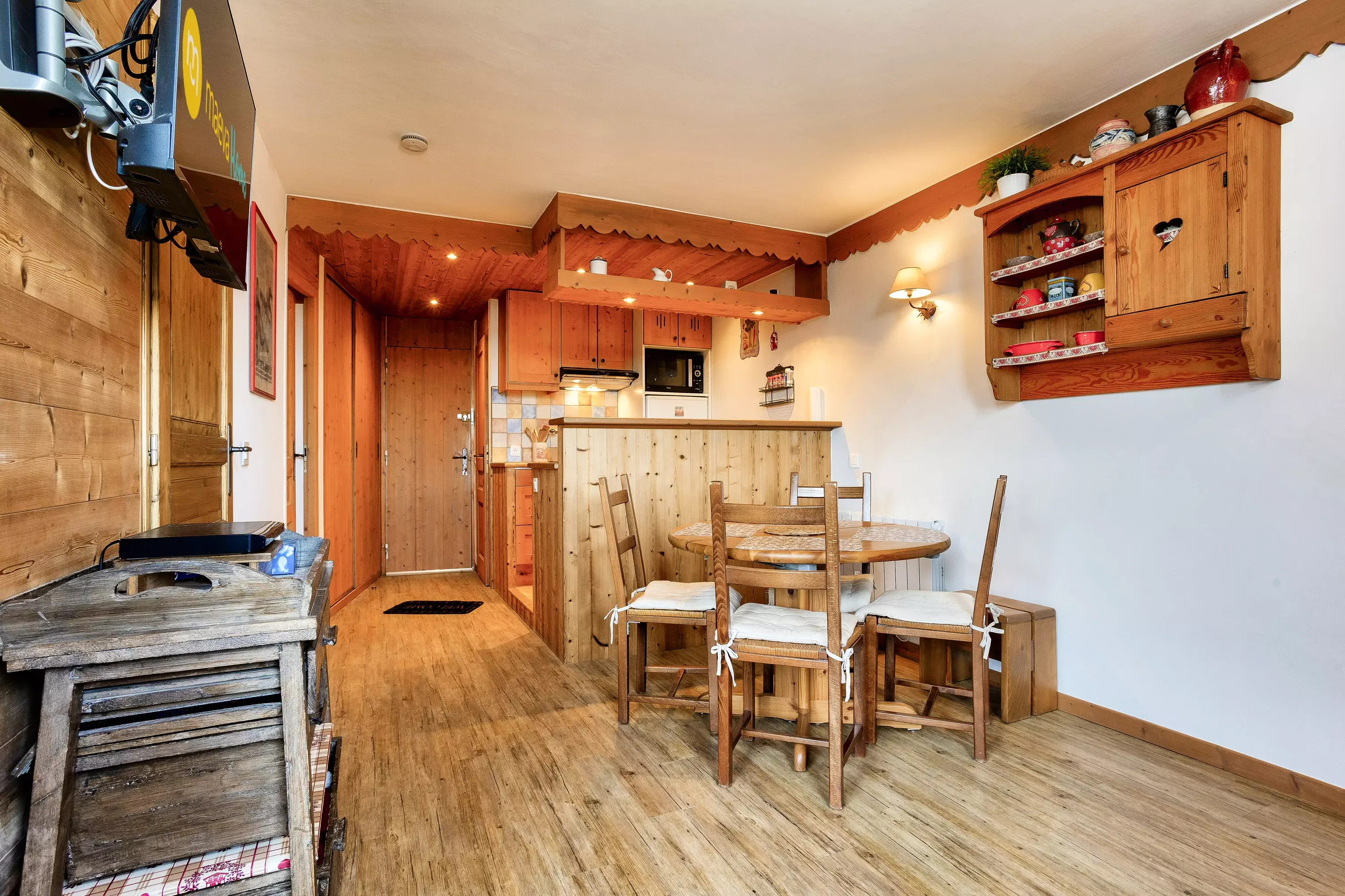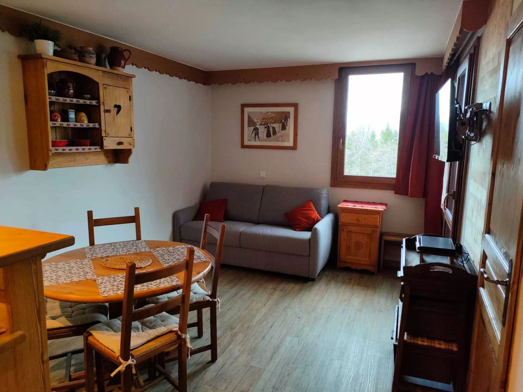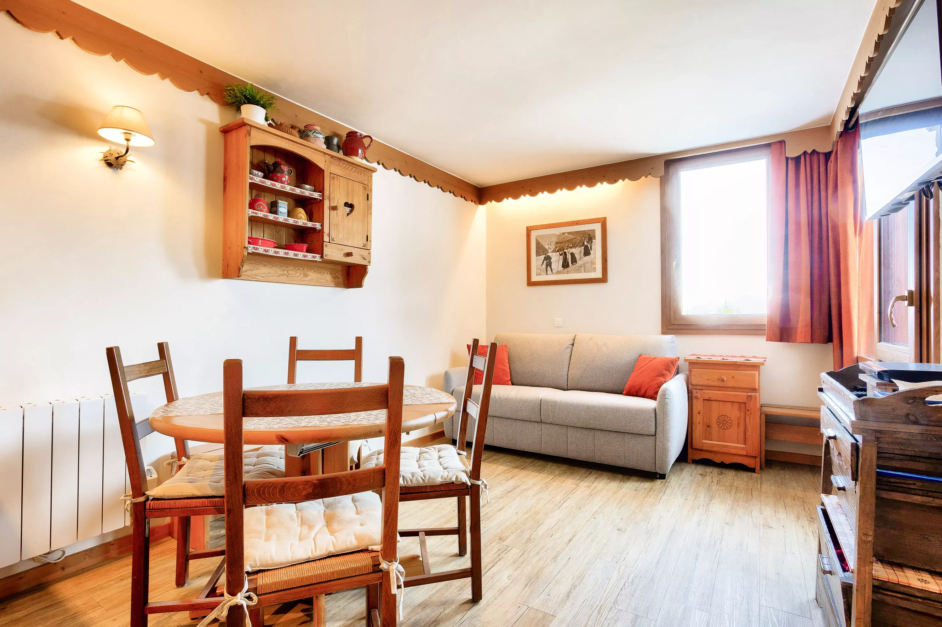 The advantages of your rental: Located on the 1st floor, this apartment boasts a north-facing balcony with mountain views. The living area includes a dining space, a sofa, and a TV with access to premium channels and video-on-demand services. The open-plan kitchen is equipped with a dishwasher for your convenience. Ideally situated, the apartment is between 100 and 500 meters from the slopes, shops, and activities, allowing you to fully enjoy the resort.