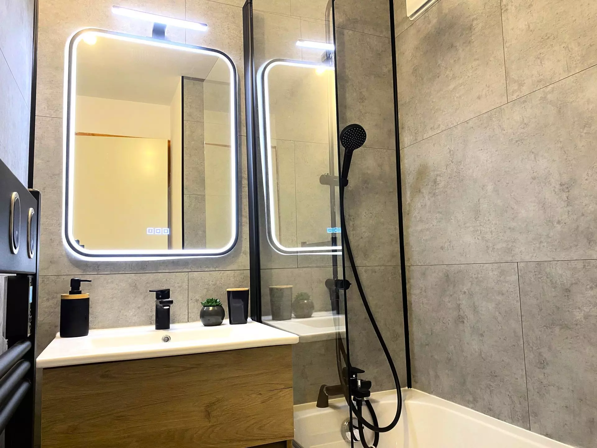 At your disposal are two fully renovated bathrooms with bathtubs, one of which is adjoining the bedroom, and a separate toilet.
