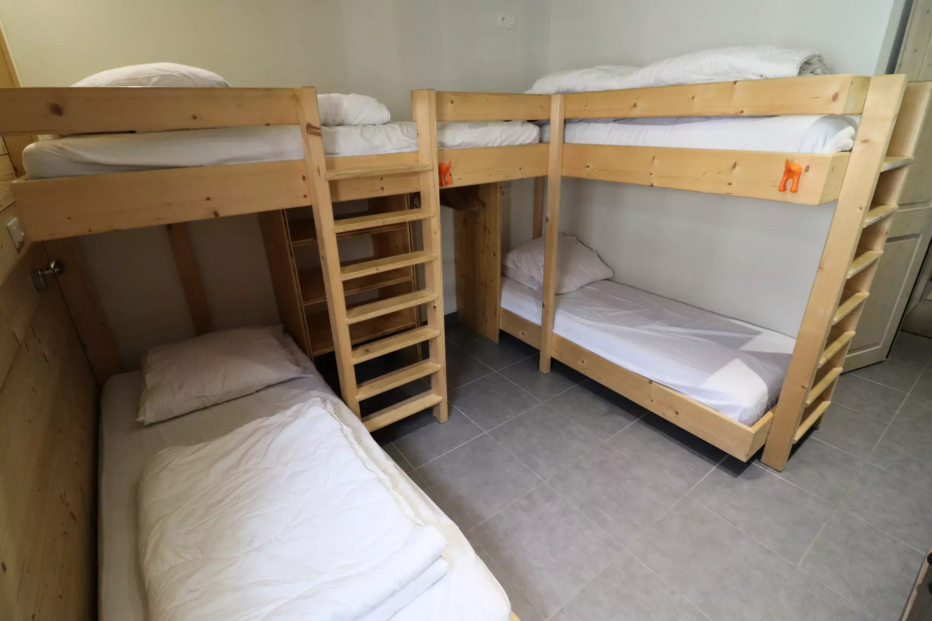 Room #2: 2 bunk beds (4 single beds) and a television