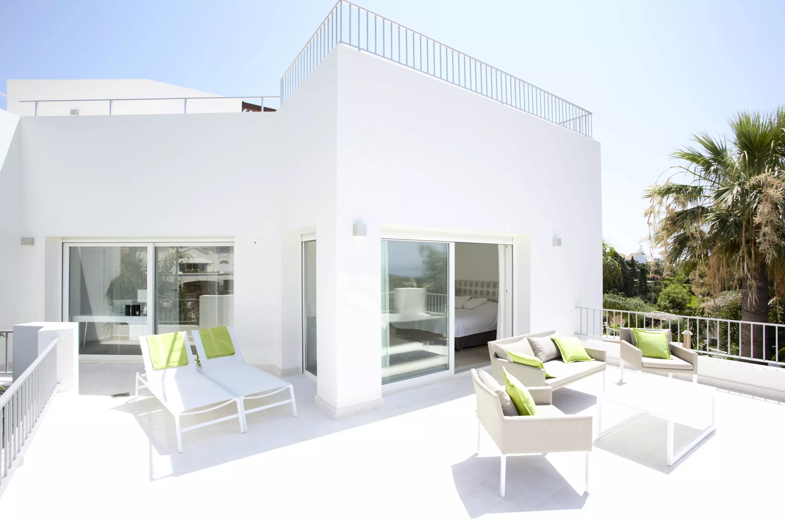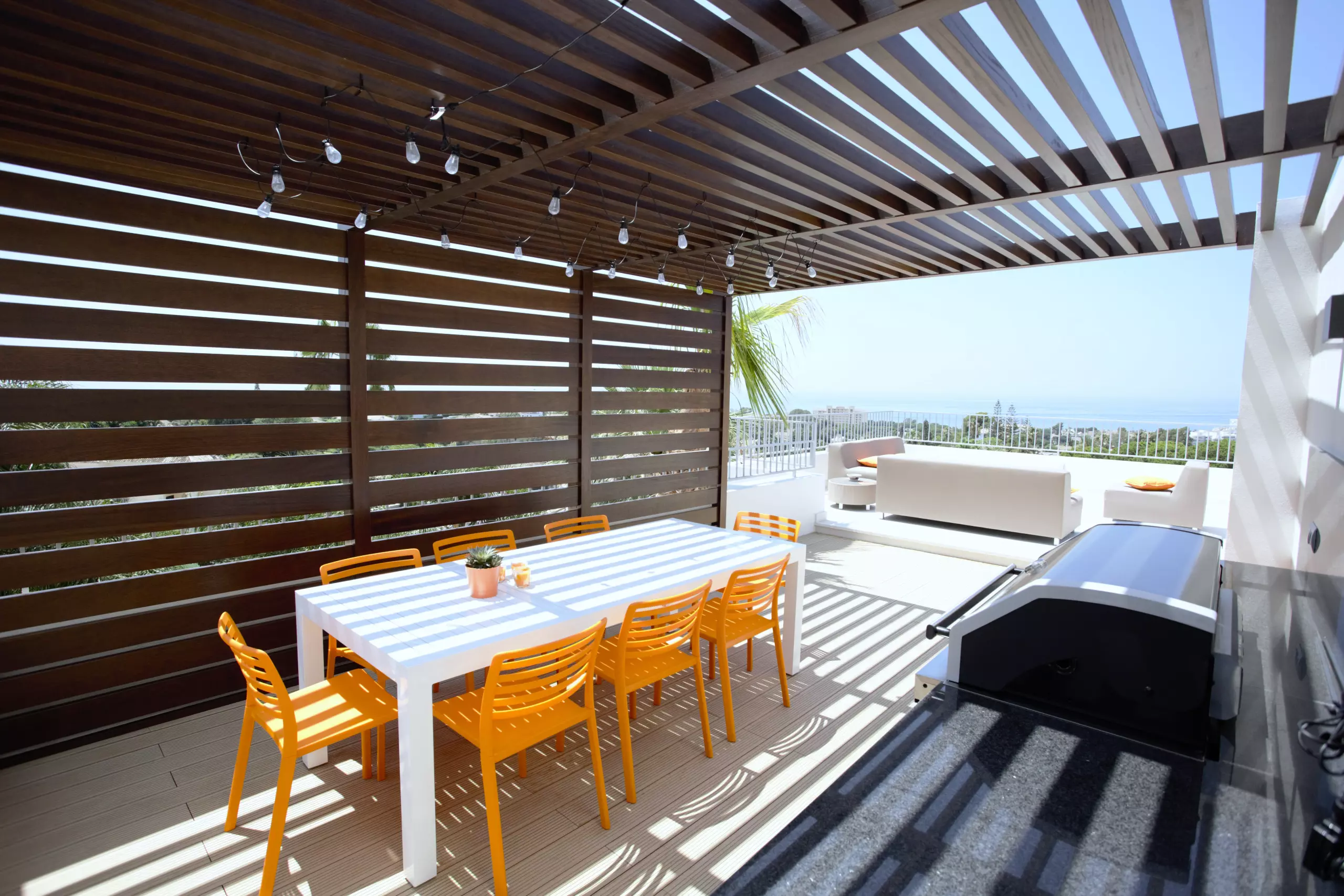 This impressive 90 m² rooftop terrace offers a covered dining area for 10 people. This area is equipped with a large gas barbecue and refrigerator. On a clear day, you can enjoy views of Marbella with its spectacular mountain range backdrop, or Gibraltar and Africa in the distance... and last but not least, a breathtaking panorama of nature and tranquility... the Mediterranean Sea.