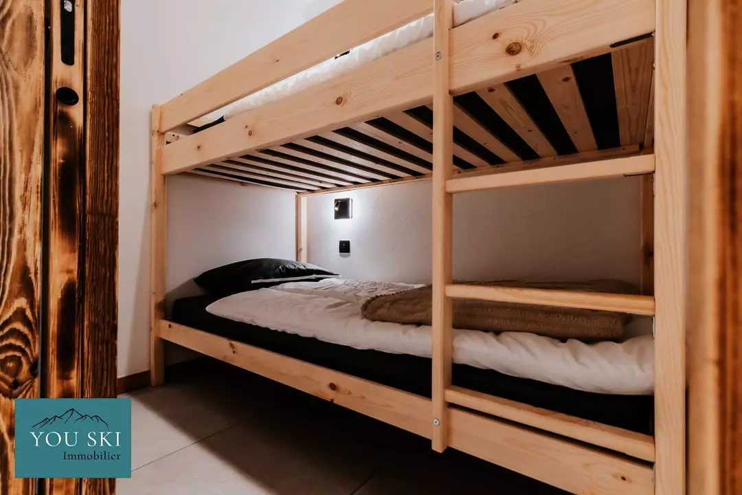 The sleeping area accommodates up to 6 people, combining comfort and privacy: two double bedrooms and one bedroom with a bunk bed for children or friends. A shower room with WC completes this practical and functional apartment, designed to make living with others easier.