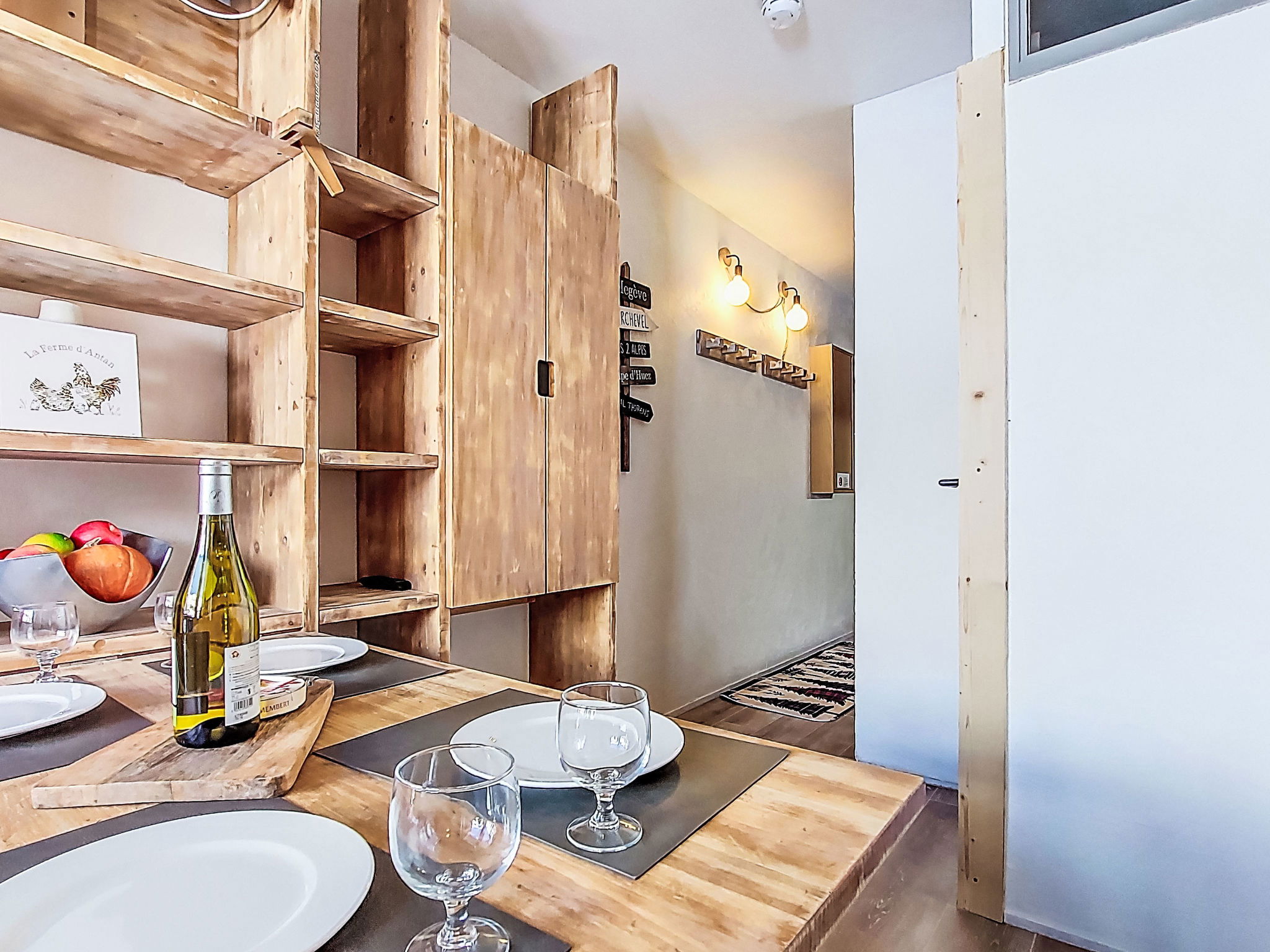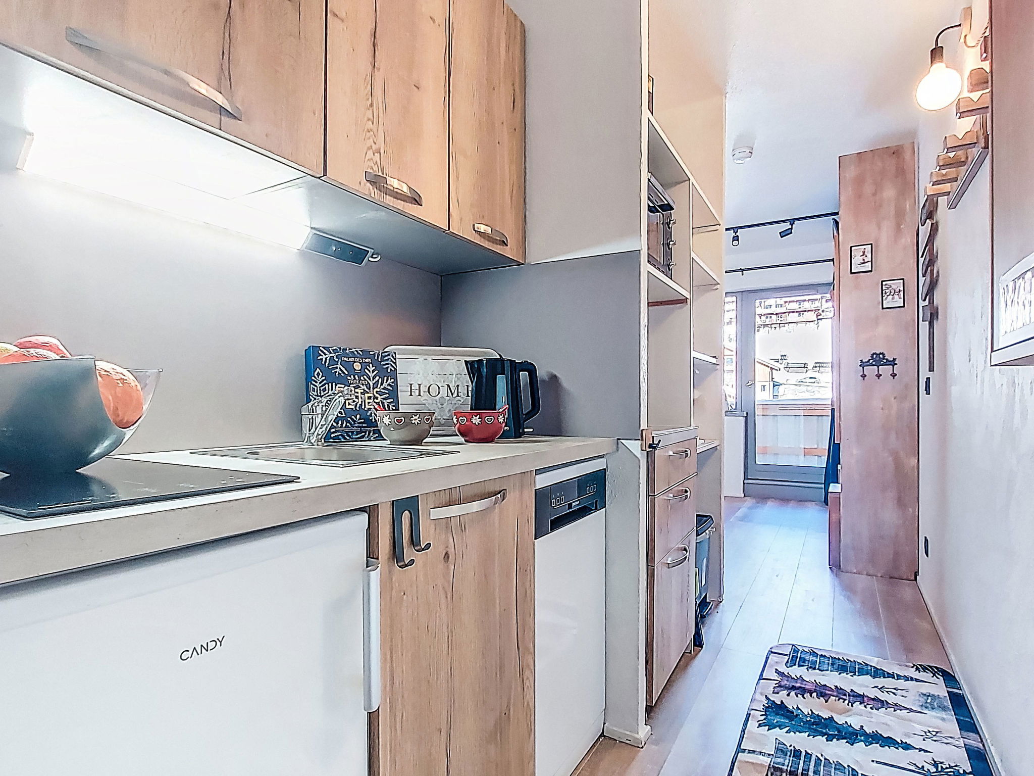 1-room studio 21 m2 on 6th floor, north facing position. Fully renovated in 2025, modern and cosy furnishings: living/dining room with 1 double sofabed (1 x 140 cm, length 190 cm), dining table and TV (flat screen), electric heating. Exit to the balcony, north facing position. Entrance hall with kitchen corner. Sleeping alcove with 1 x 2 bunk beds (80 cm, length 190 cm). Kitchenette (oven, dishwasher, 2 induction hot plates, toaster, kettle, electric coffee machine, Capsules for coffee machine (Nespresso) extra). Bath/WC. Parquet floors. Small balcony 3 m2. Beautiful view of the valley, the ski run and the resort. Facilities: safe. Internet (WiFi, free). Please note: non-smokers only. Smoke alarm. Offer by a private individual according to Art. 155, IV of CGI.