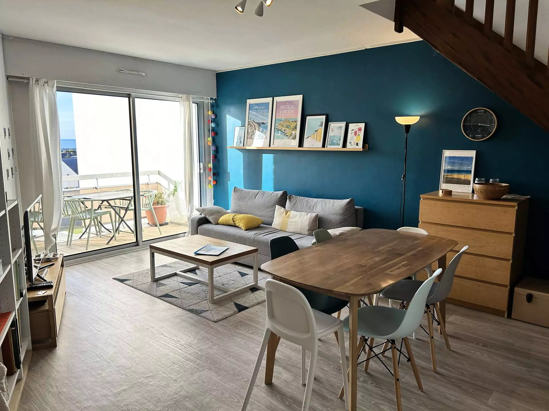 - A living room with a two-person sofa bed (140x190cm), giving access to a terrace with sea view;