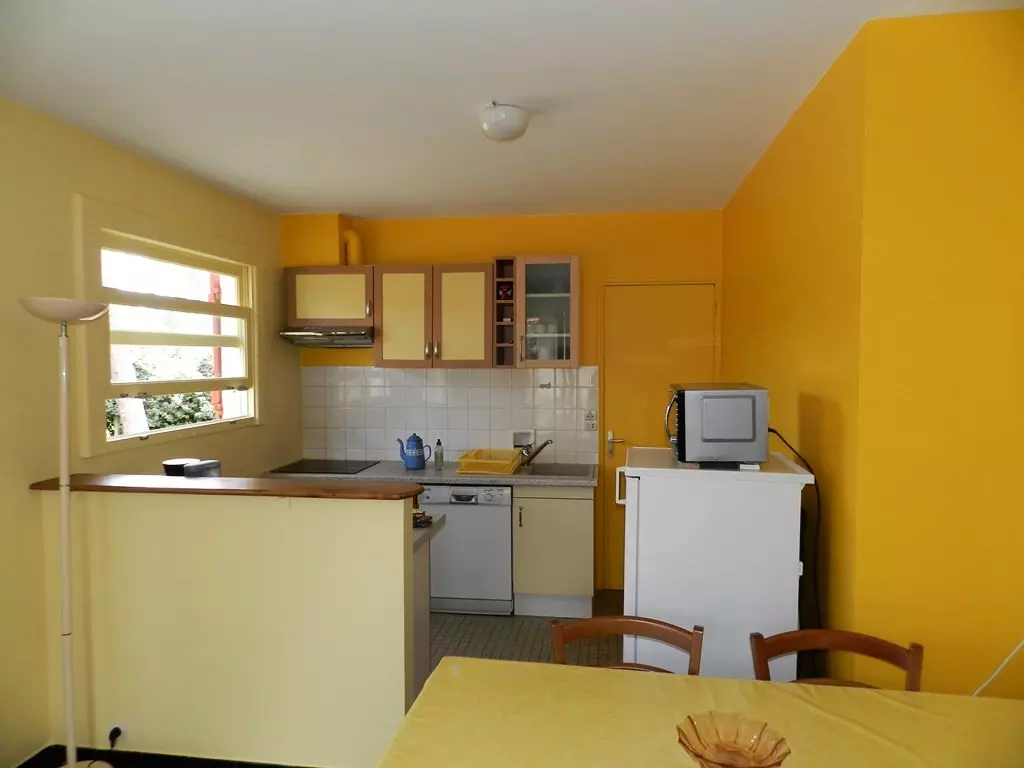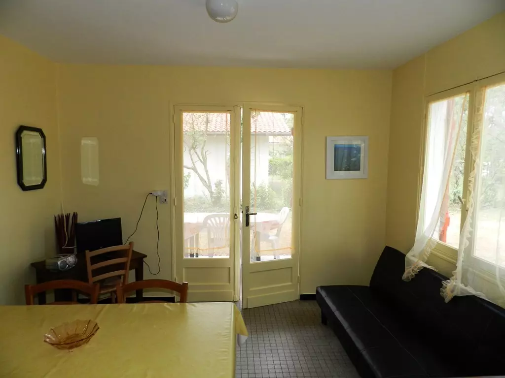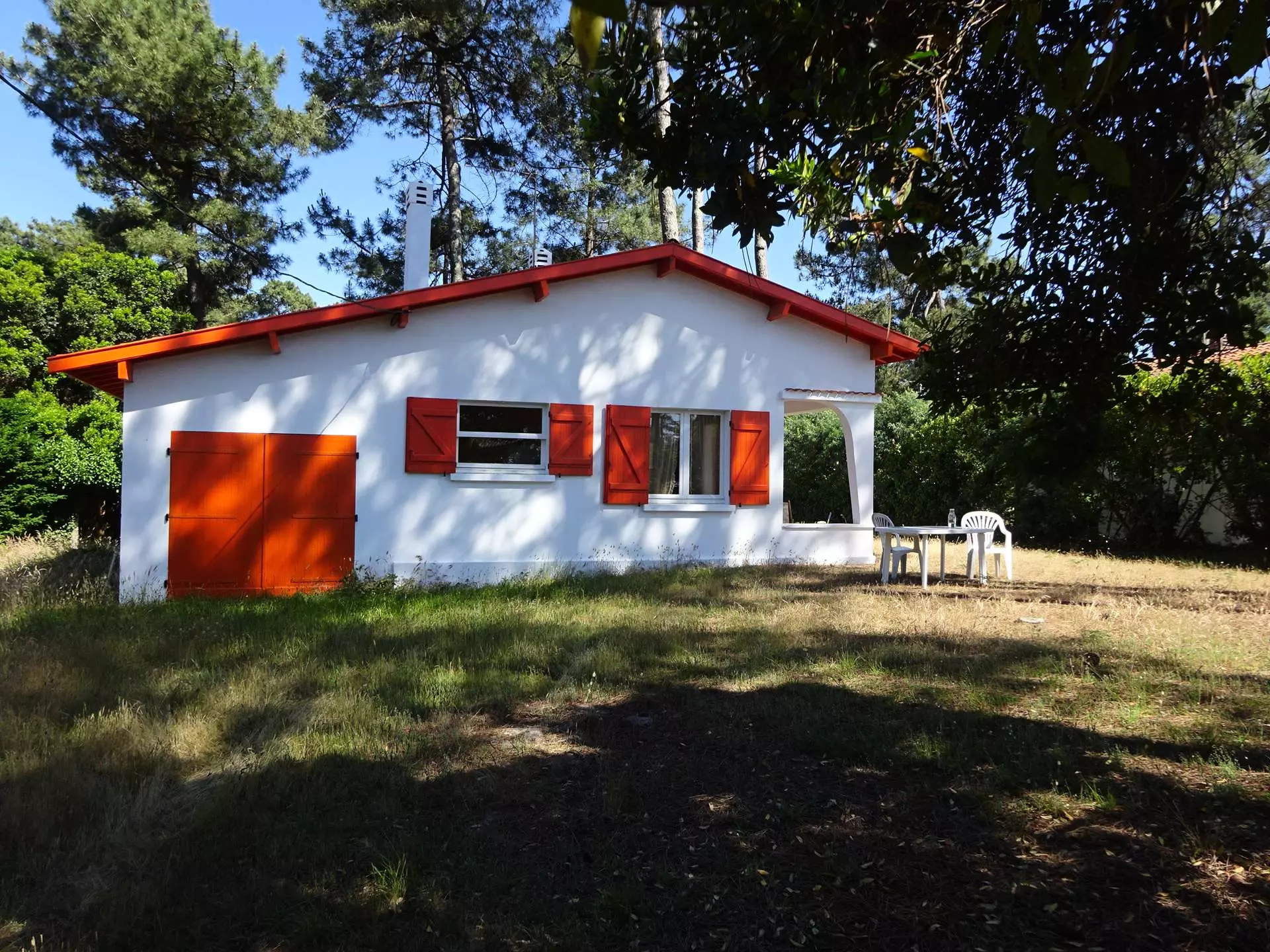 Holiday villa of 65m² for 6 people, located in a very quiet area, on a fenced and wooded plot of 875m². Covered terrace with garden furniture. Garage. 1200m from the beach and 1km from shops. Parking available on the property.