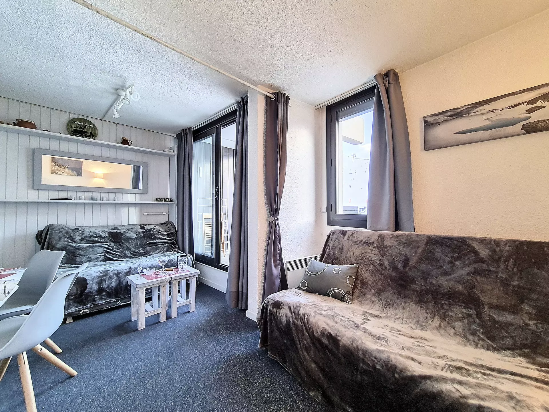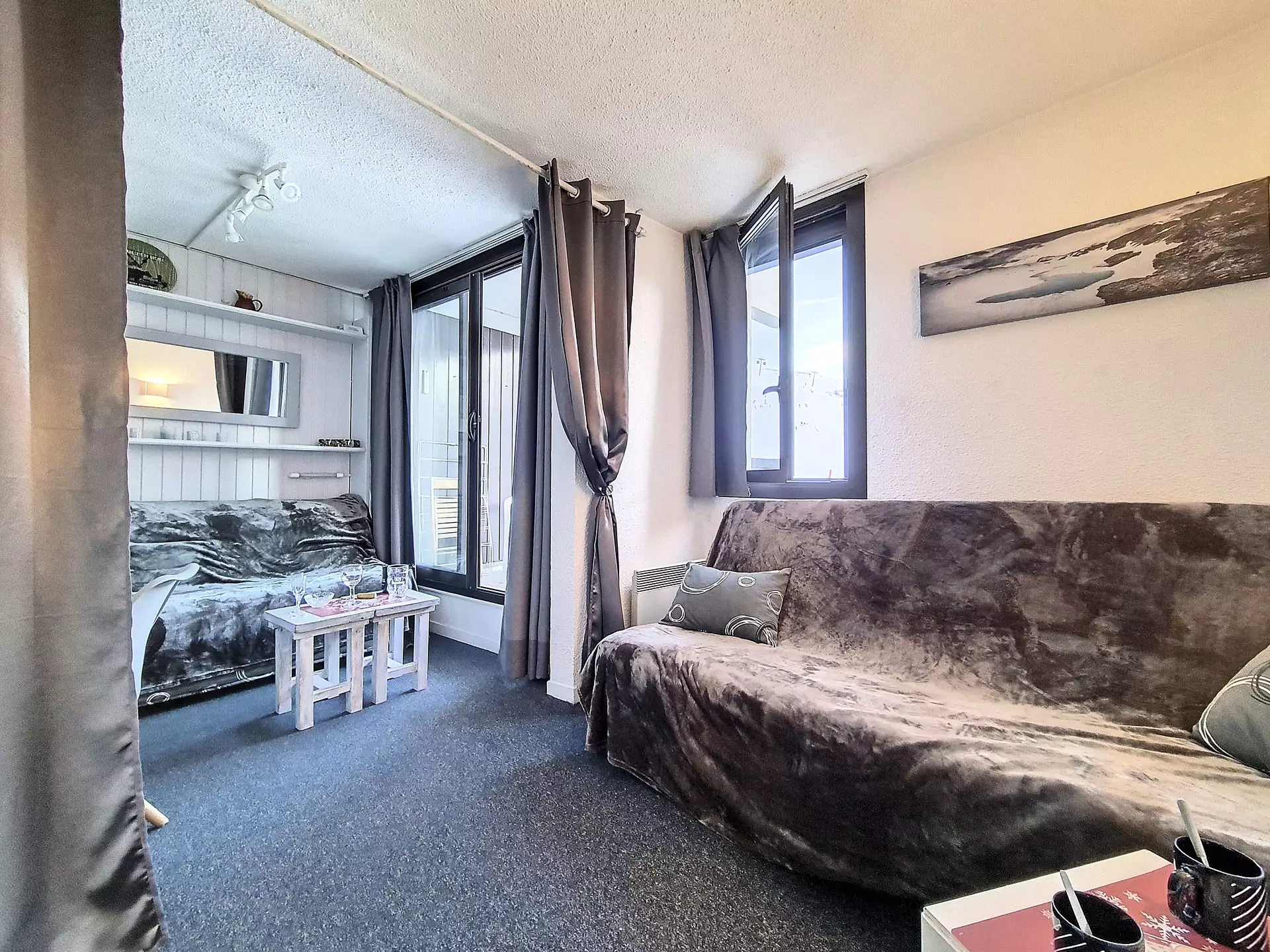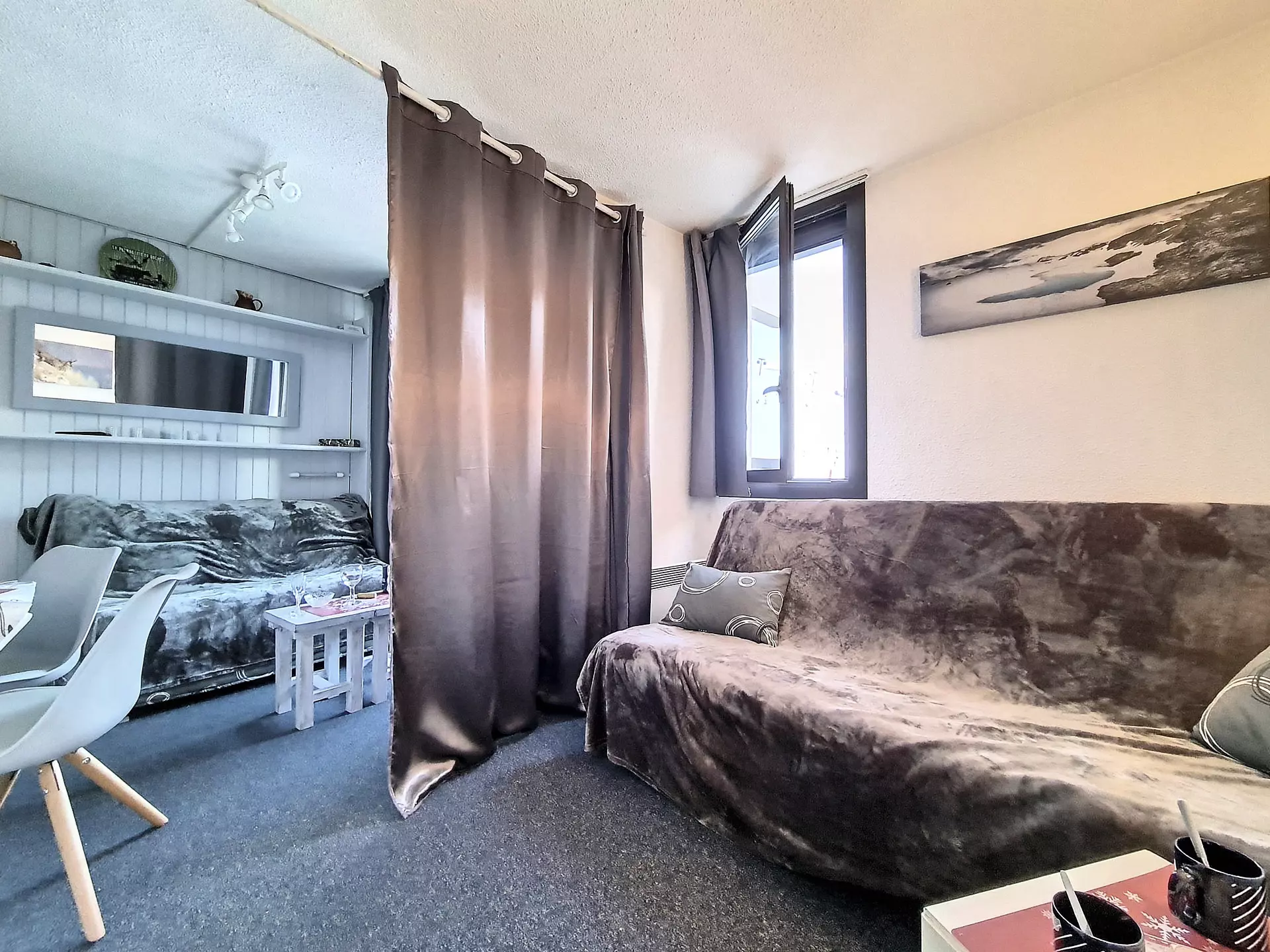 21 m² studio apartment for 3 people. It is located on the 4th floor with a south-facing balcony. Equipped with electric shutters.