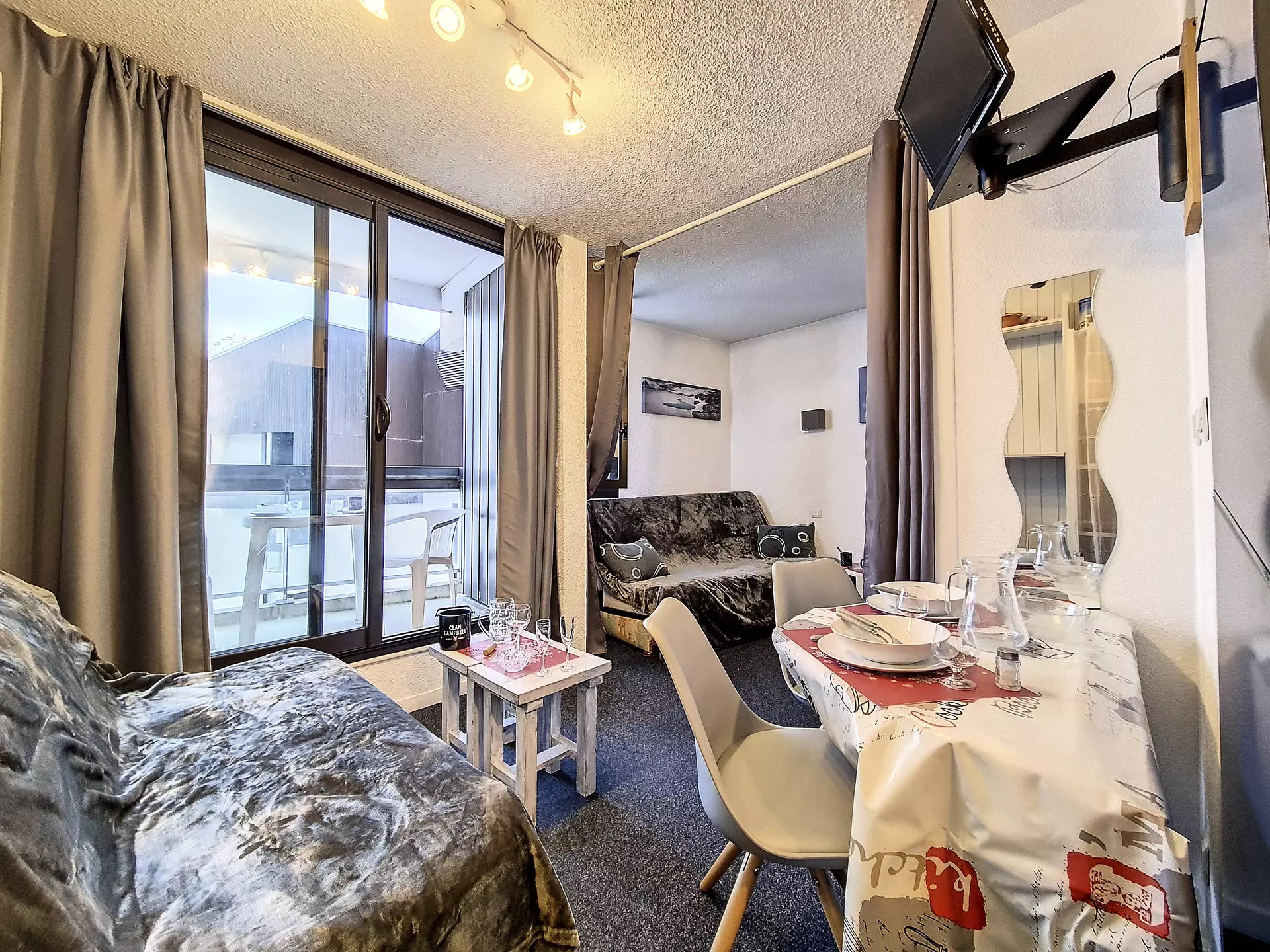 Living room: 1 double sofa bed, 1 double BZ sofa bed. Equipped with a television.
