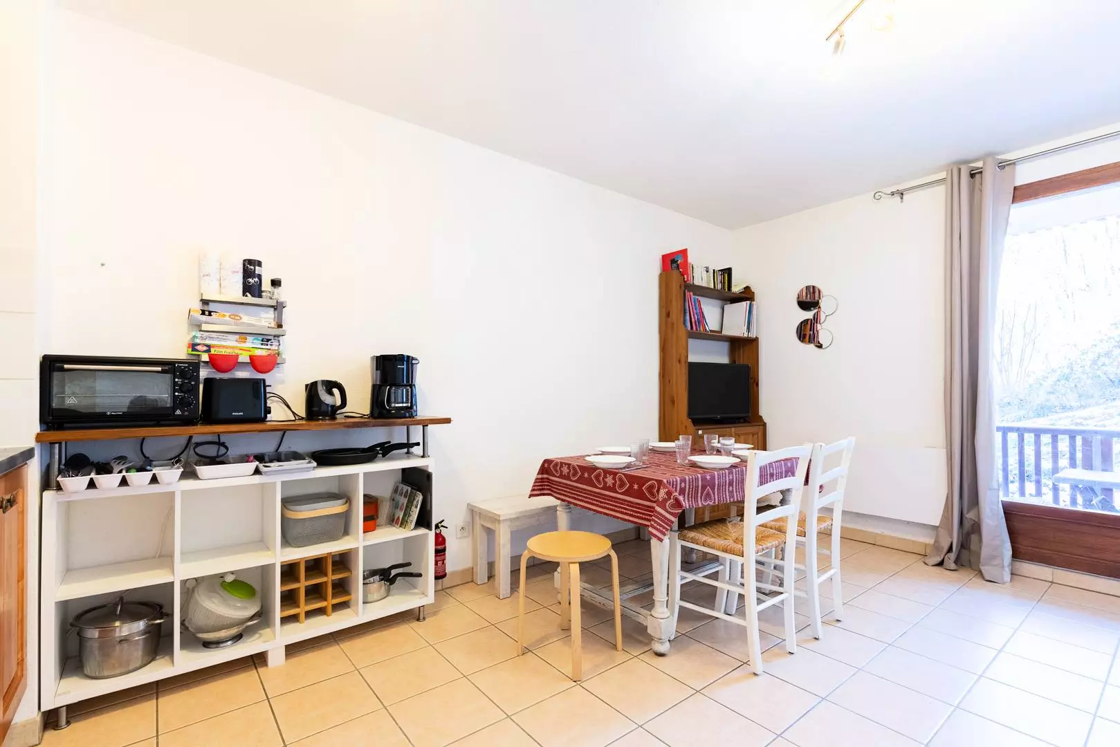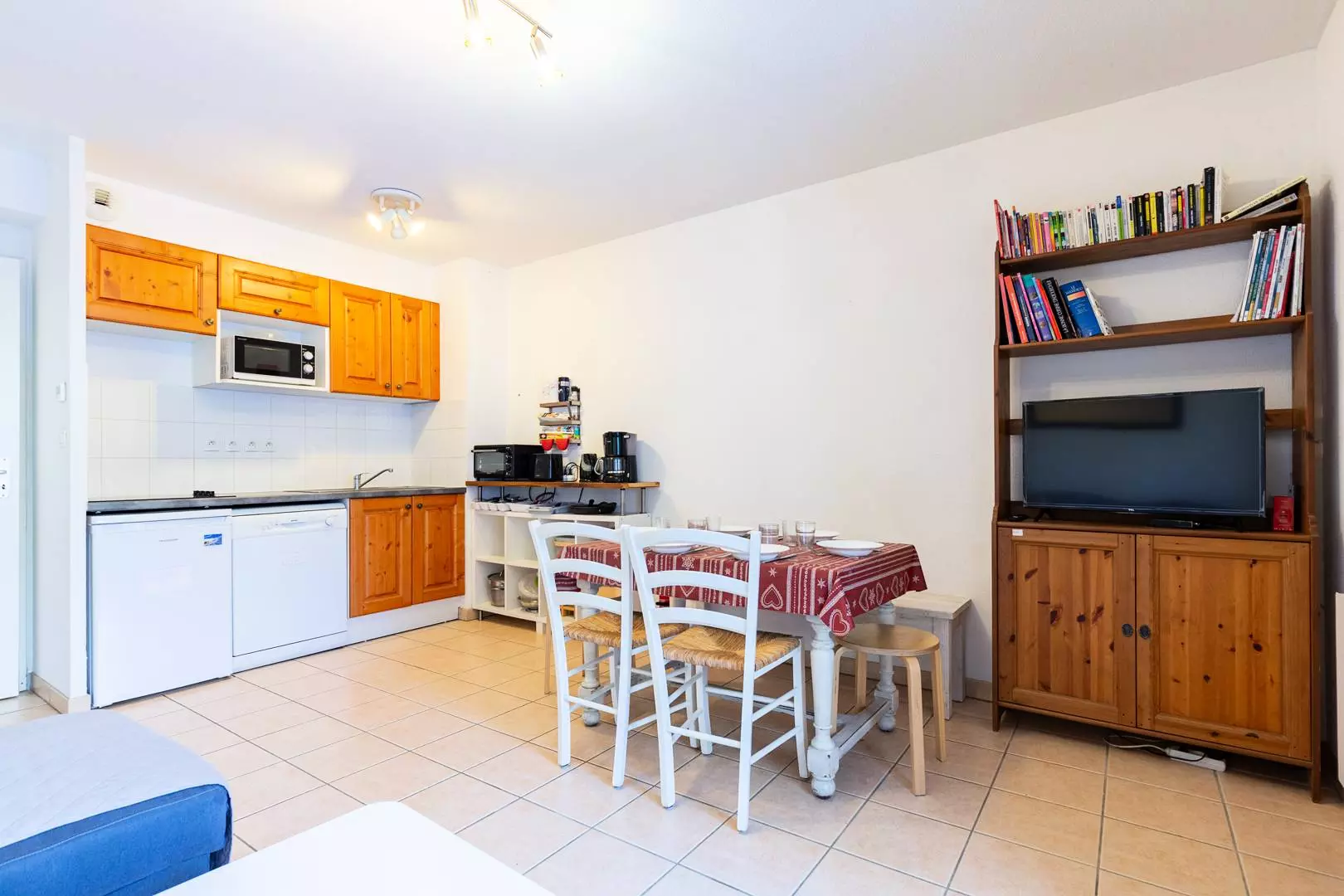 Fully equipped kitchen opening onto the living room, 2 beds available on the sofa bed