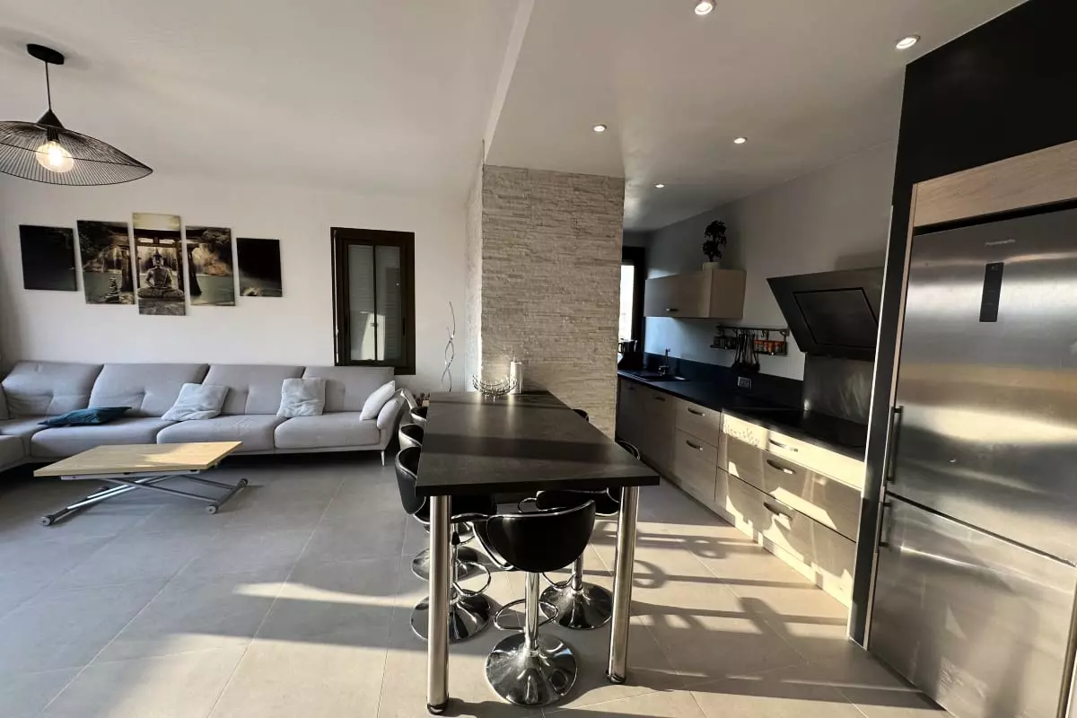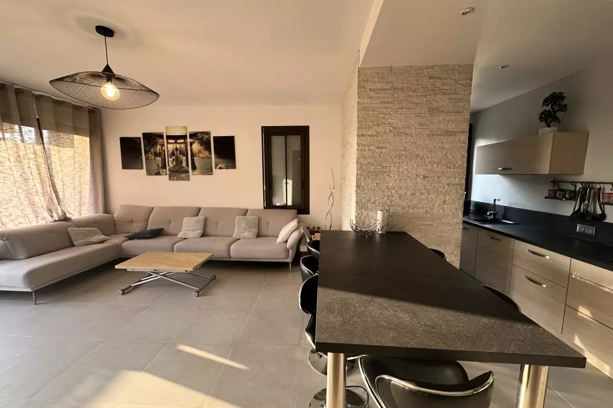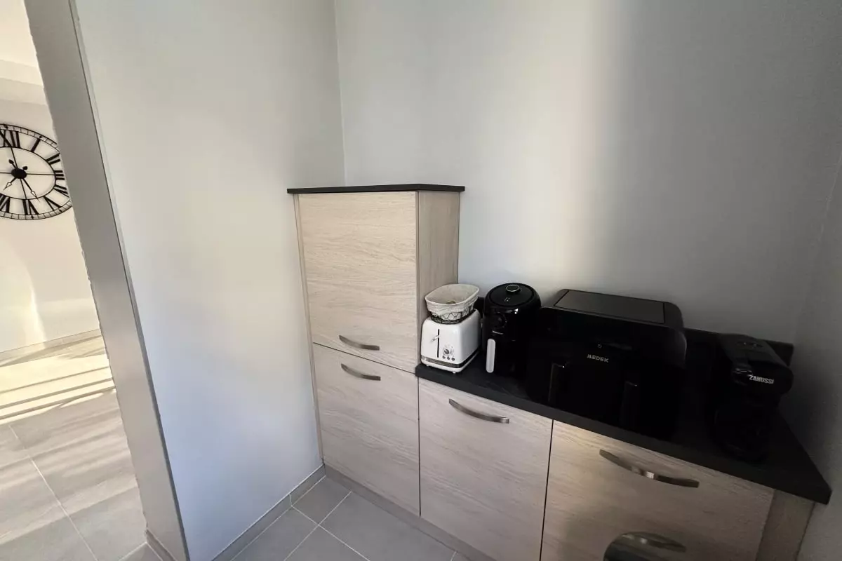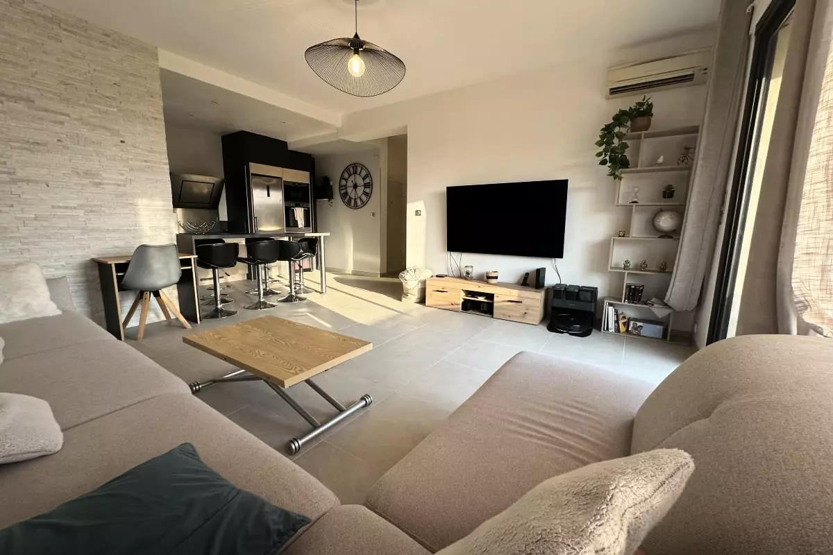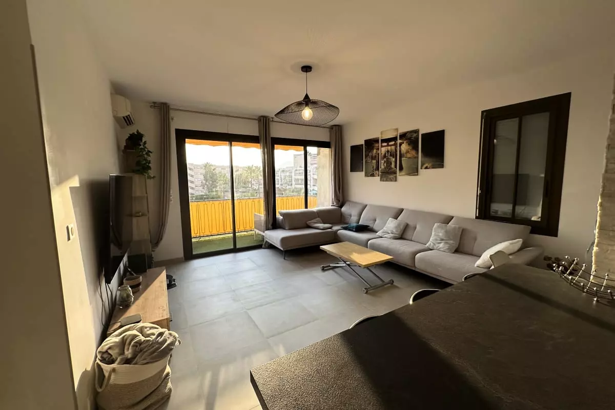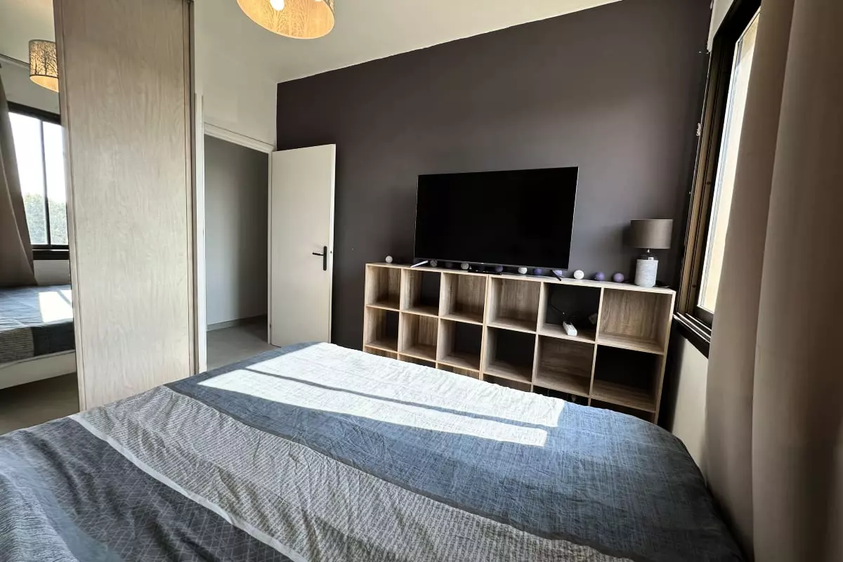 It includes a bedroom with a large double bed (2m x 2m), and a second bedroom with a double bed (140 x 190cm). The fully equipped kitchen allows you to easily prepare meals, while the functional shower room and dining area with a table and chairs add to the comfort of your stay. The spacious 37m² living room, with its 4m wide sofa, is perfect for relaxing after a day of exploring. You can also enjoy the balcony for fresh air and relaxation.