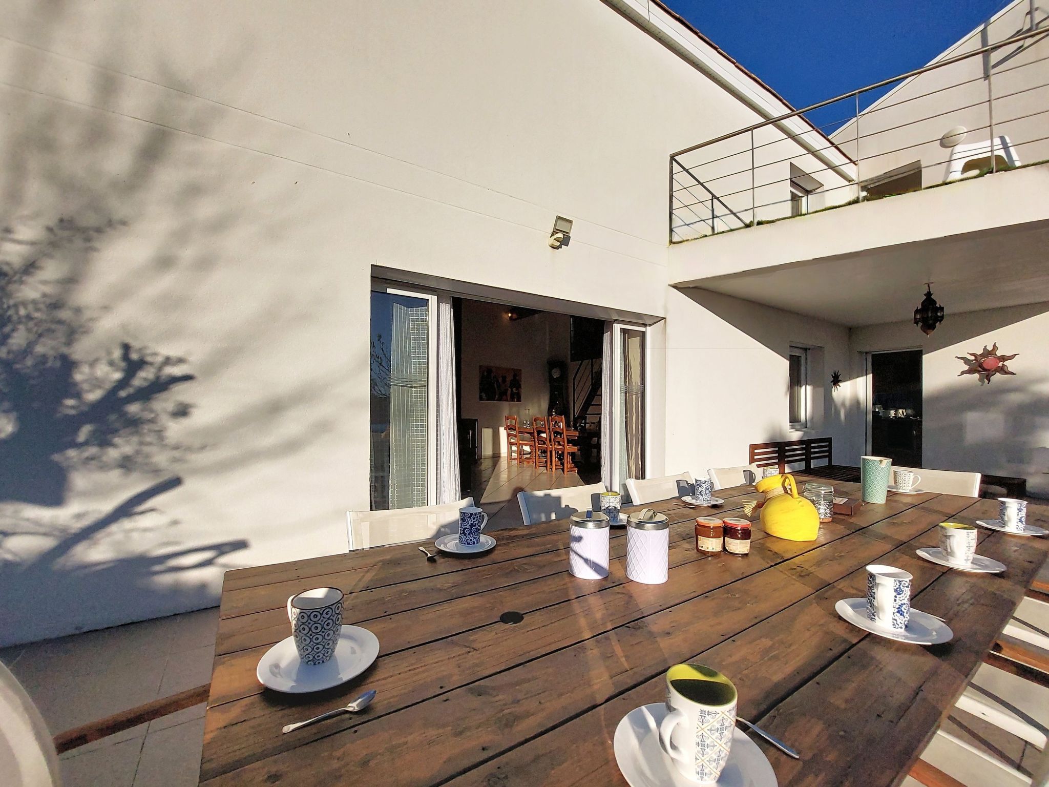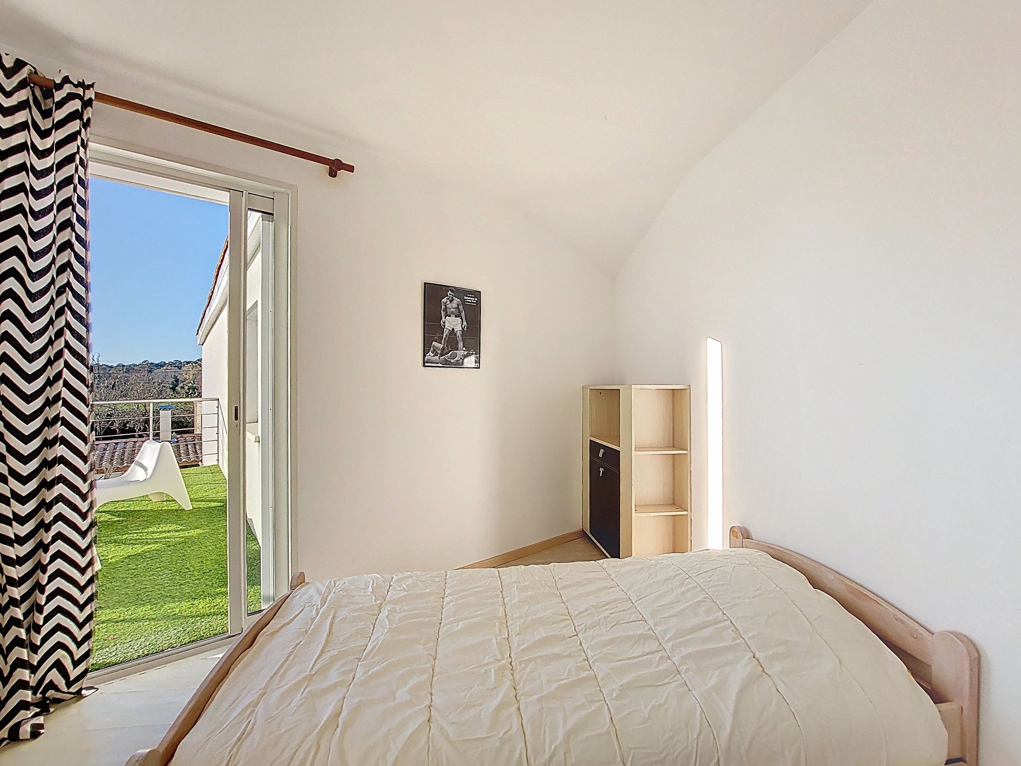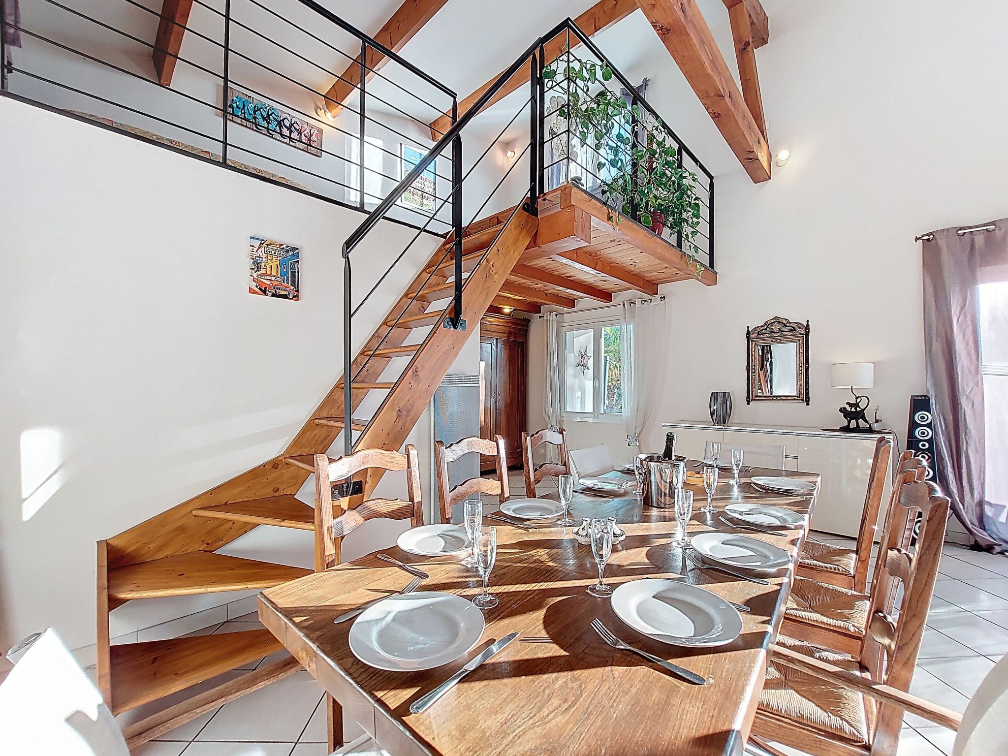 7-room villa 180 m2 on 2 levels. Spacious: large living/dining room with open-hearth fireplace and TV (flat screen). Exit to the garden, to the terrace. 1 room with 1 french bed (1 x 160 cm, length 190 cm), hand-basin and separate WC. 1 room with 1 french bed (1 x 140 cm, length 190 cm). Kitchen (4 hot plates, dishwasher, toaster, kettle, microwave, freezer, electric coffee machine). Bathroom, double hand-basin. Electric heating. Upper floor: (steep stair) gallery with 1 bed (90 cm, length 190 cm). 2 rooms, each room with 1 french bed (1 x 140 cm, length 190 cm). 1 small room with 1 bed (90 cm, length 190 cm). Exit to the balcony. Shower/WC. Large terrace 80 m2, south facing position. Terrace furniture, barbecue. Facilities: washing machine, dryer, iron, children's high chair, baby cot. Internet (WiFi, free). Parking (3 cars). Please note: smoke alarm. Offer by a private individual according to Art. 155, IV of CGI.