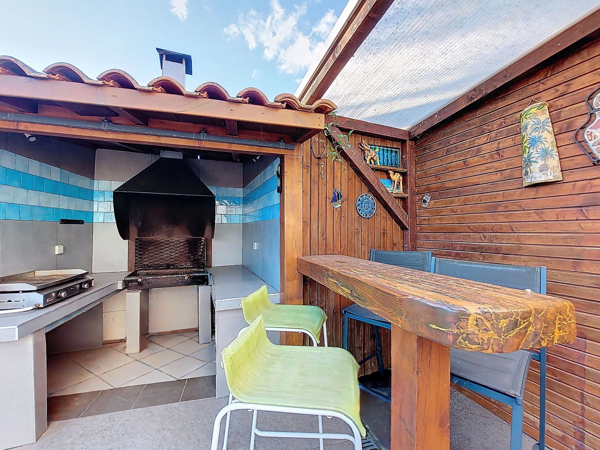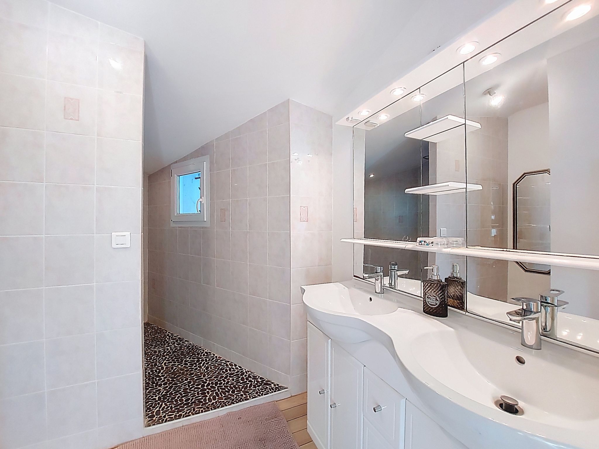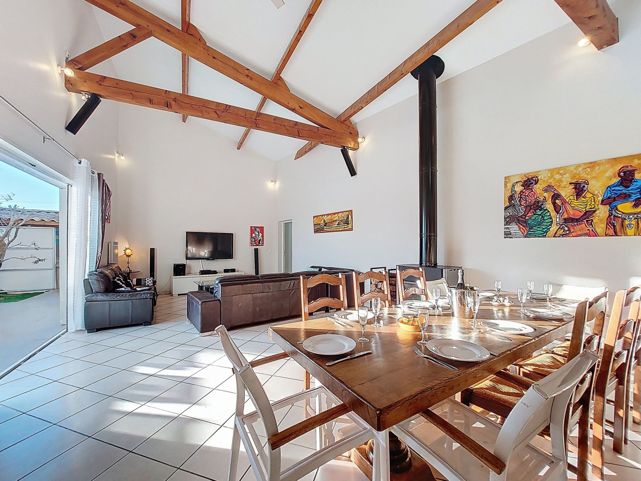 7-room villa 180 m2 on 2 levels. Spacious: large living/dining room with open-hearth fireplace and TV (flat screen). Exit to the garden, to the terrace. 1 room with 1 french bed (1 x 160 cm, length 190 cm), hand-basin and separate WC. 1 room with 1 french bed (1 x 140 cm, length 190 cm). Kitchen (4 hot plates, dishwasher, toaster, kettle, microwave, freezer, electric coffee machine). Bathroom, double hand-basin. Electric heating. Upper floor: (steep stair) gallery with 1 bed (90 cm, length 190 cm). 2 rooms, each room with 1 french bed (1 x 140 cm, length 190 cm). 1 small room with 1 bed (90 cm, length 190 cm). Exit to the balcony. Shower/WC. Large terrace 80 m2, south facing position. Terrace furniture, barbecue. Facilities: washing machine, dryer, iron, children's high chair, baby cot. Internet (WiFi, free). Parking (3 cars). Please note: smoke alarm. Offer by a private individual according to Art. 155, IV of CGI.