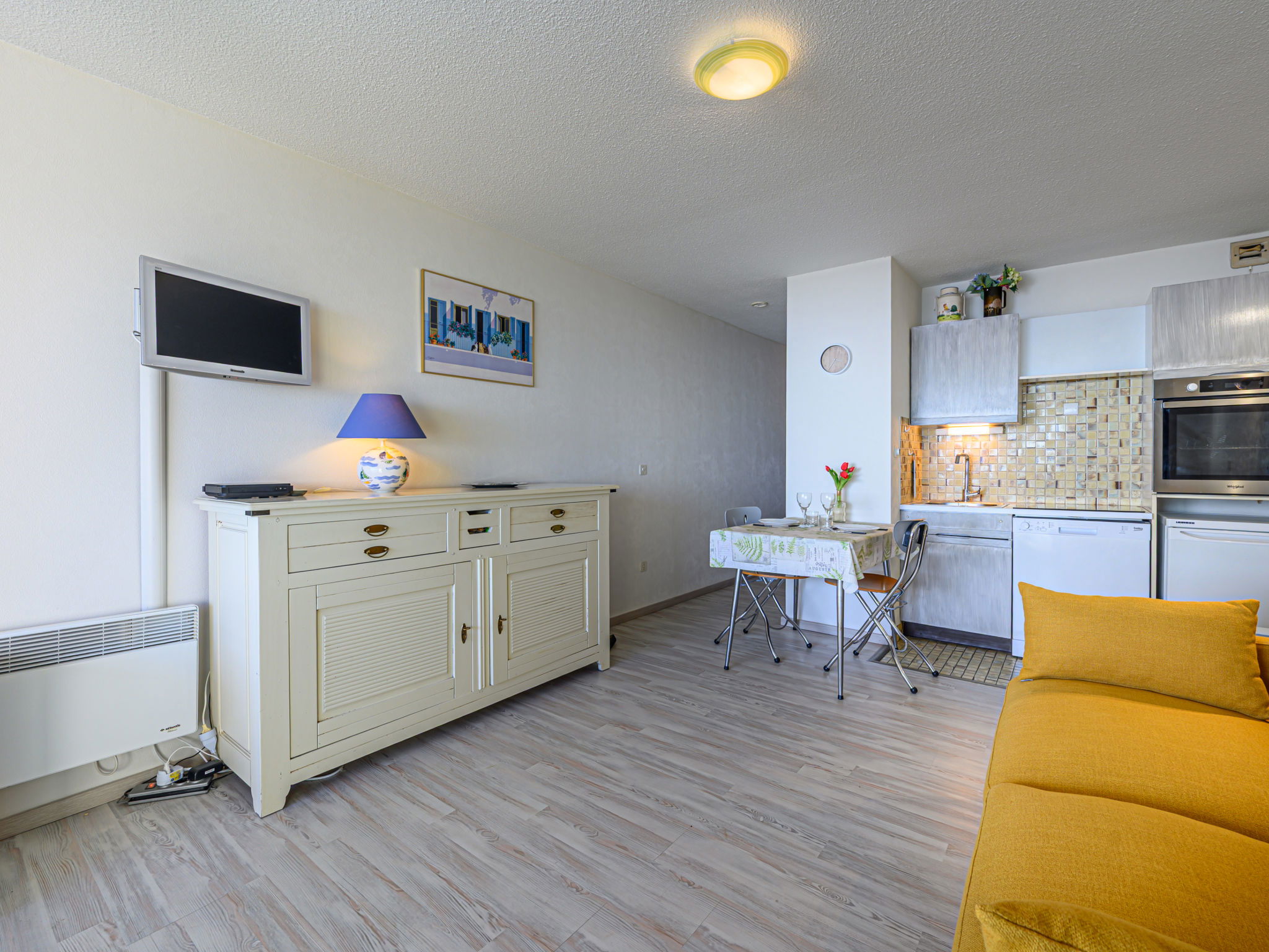 1-room studio 25 m2. Comfortable furnishings: living/dining room with 1 double sofabed (1 x 140 cm, length 190 cm), TV (flat screen). Exit to the balcony. Open kitchen (oven, dishwasher, 3 induction hot plates, toaster, kettle, electric coffee machine). Shower/bidet/WC. Balcony 5 m2, south facing position. Balcony furniture. Very beautiful view of the sea. Facilities: hair dryer. Internet (WiFi, free). Parking space n 404. Please note: non-smokers only. Smoke alarm. Offer by a private individual according to Art. 155, IV of CGI.